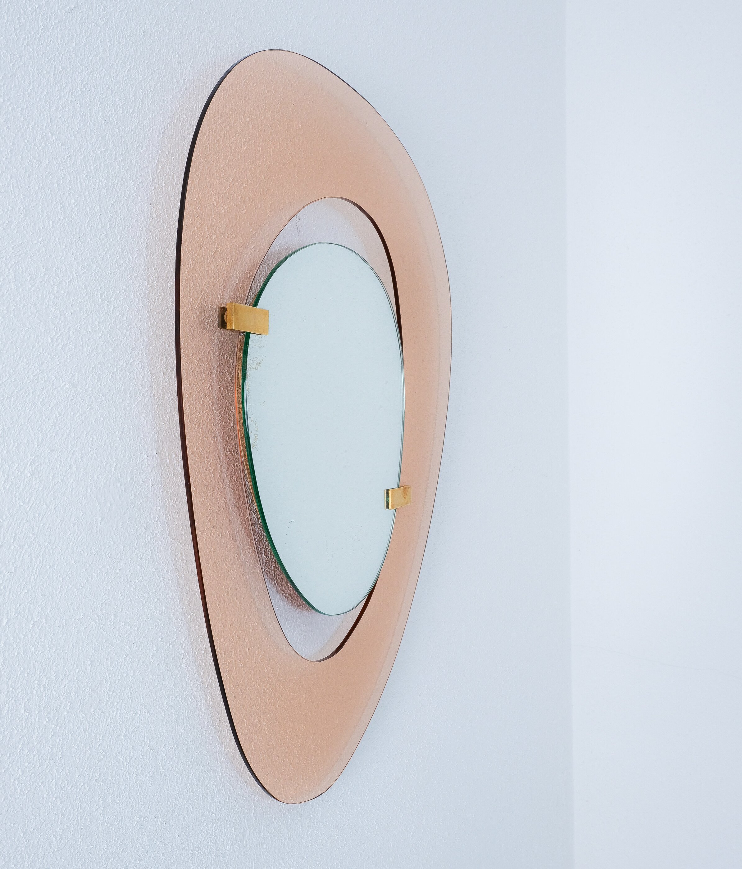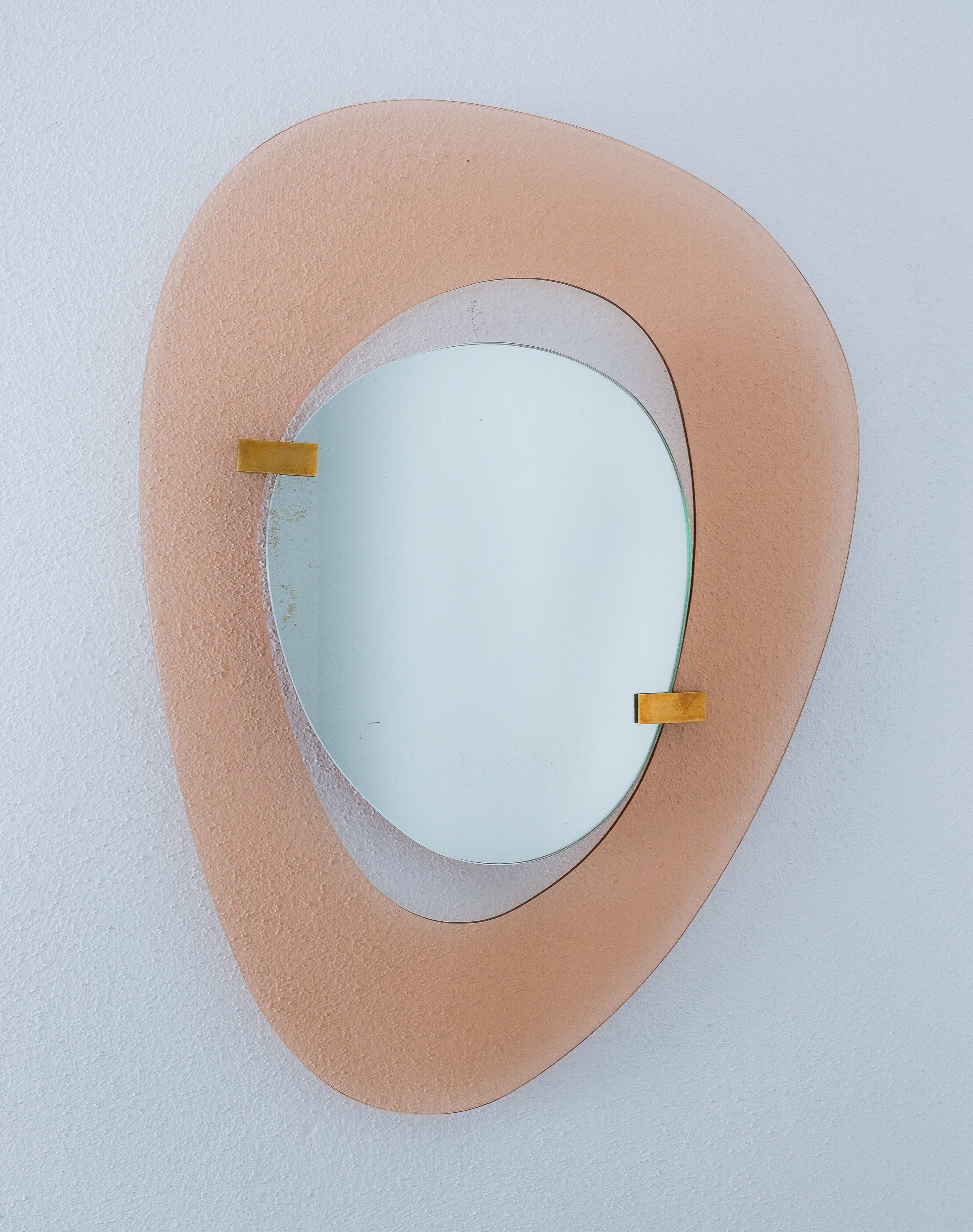 Triangular Bronze Tinted Mirrors, Brass Frame