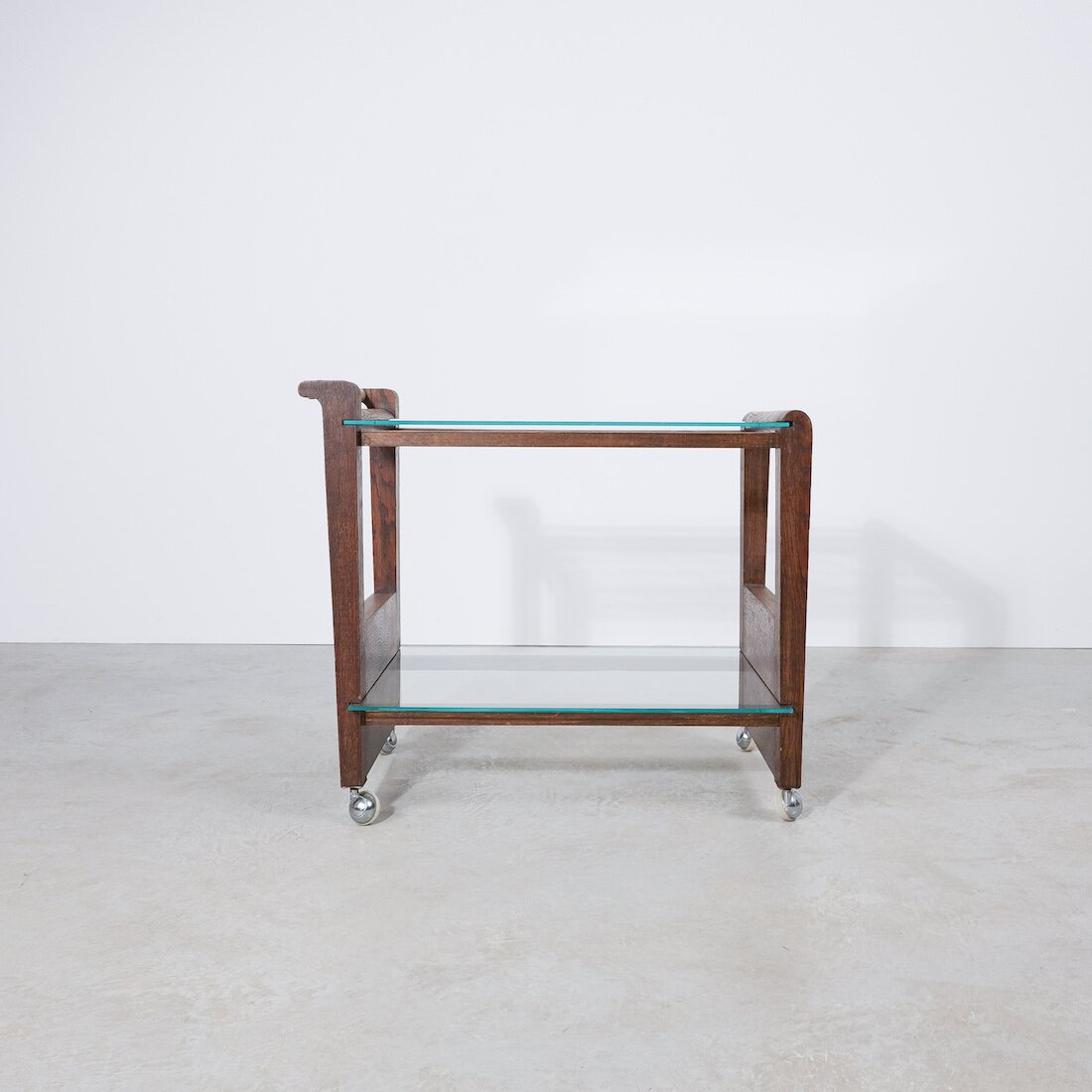 Brutalist Artisan Oak Cabinet or Sideboard With Carved Details, 1940 France
