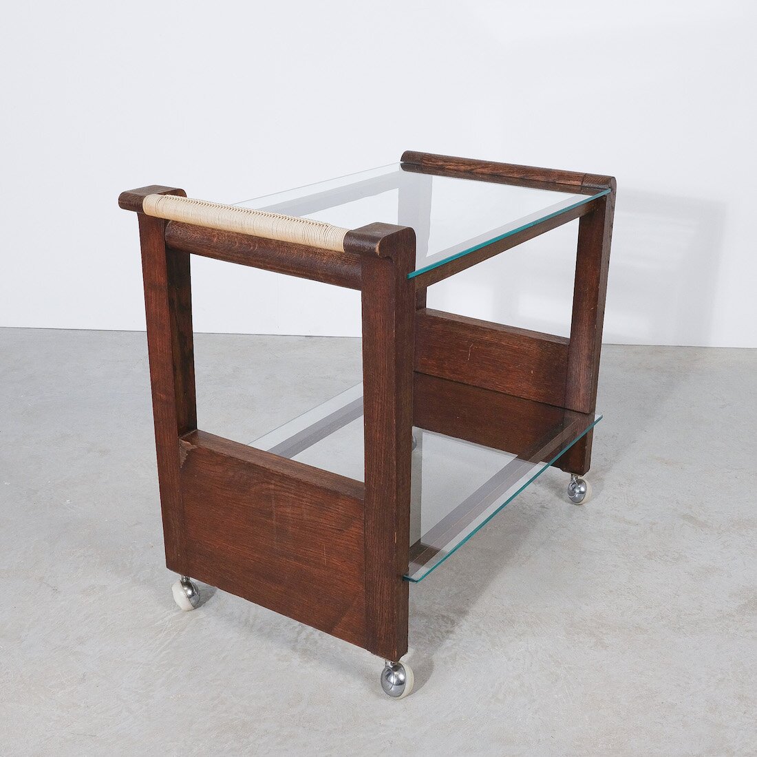 Guillerme et Chambron Side Magazine Table Oak Wood With Tiles, circa 1960