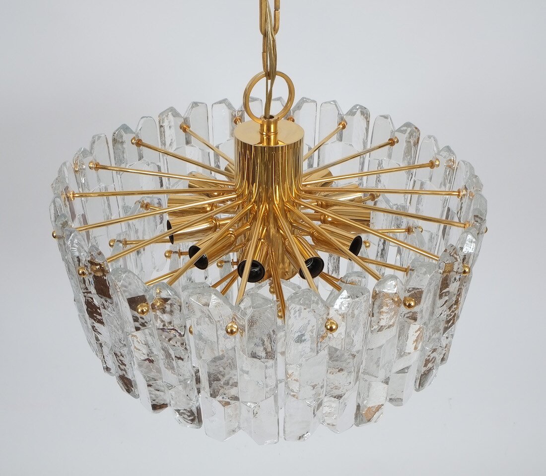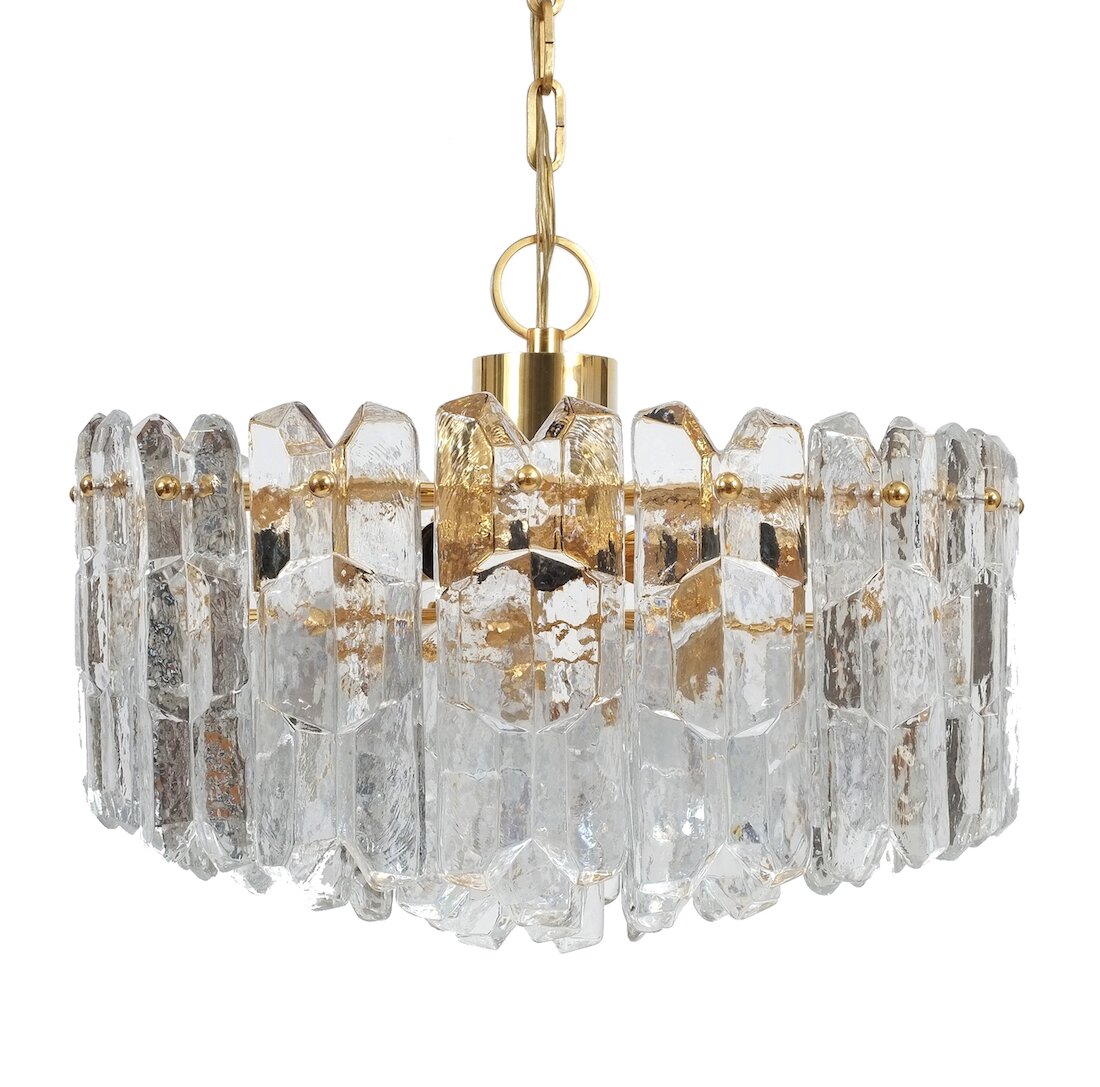 J.T. Kalmar Palazzo Chandelier Gold Brass Glass Lamp, Austria 1960