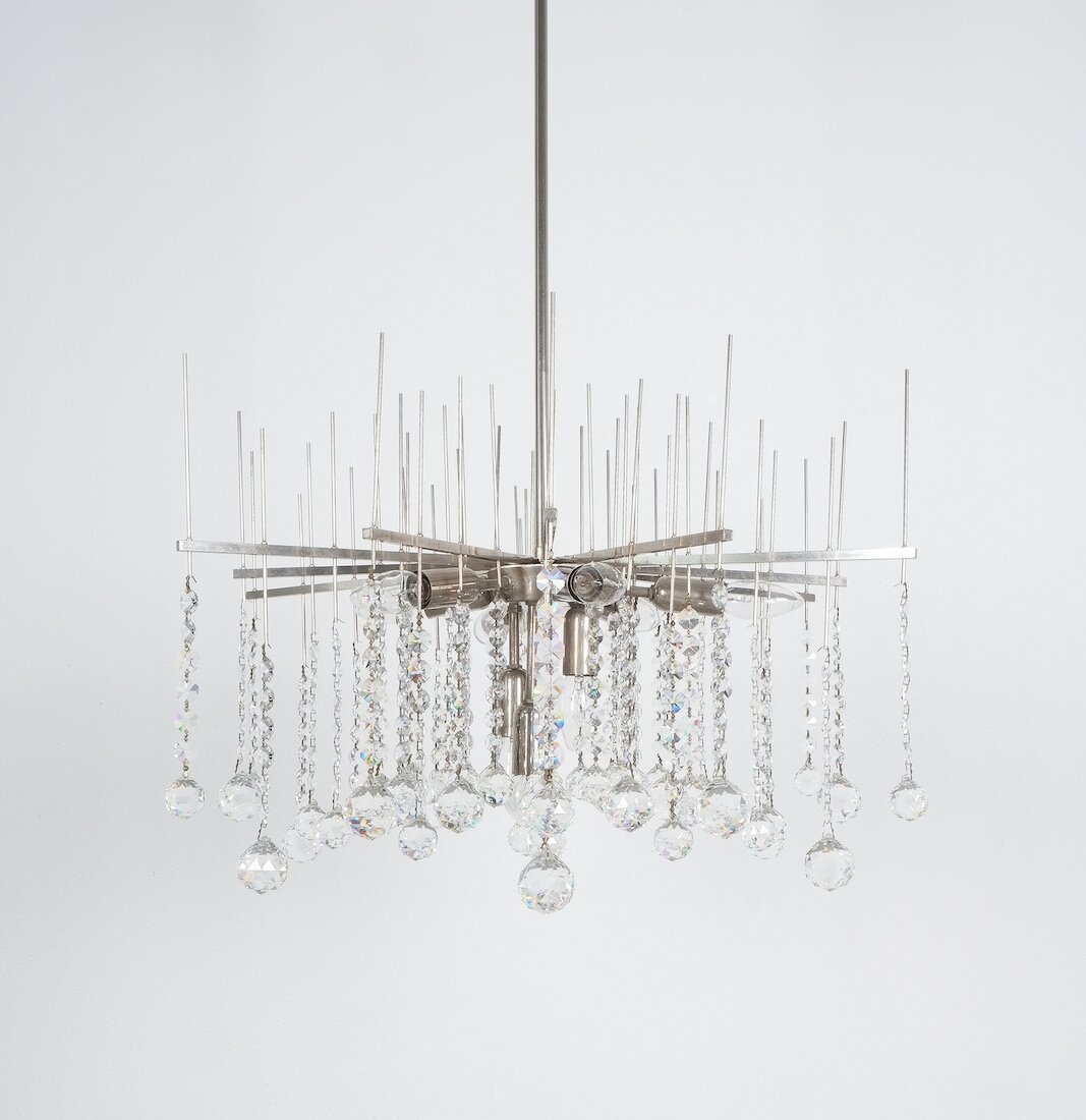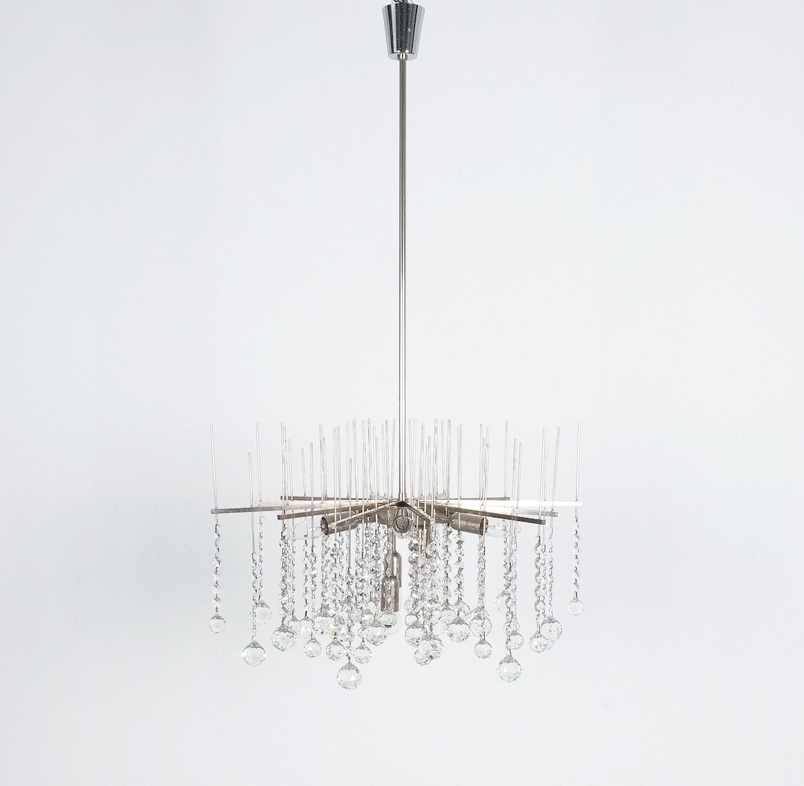 J.T. Kalmar Waterfall Chandelier Crystal Glass and Nickel Brass, Austria 1960