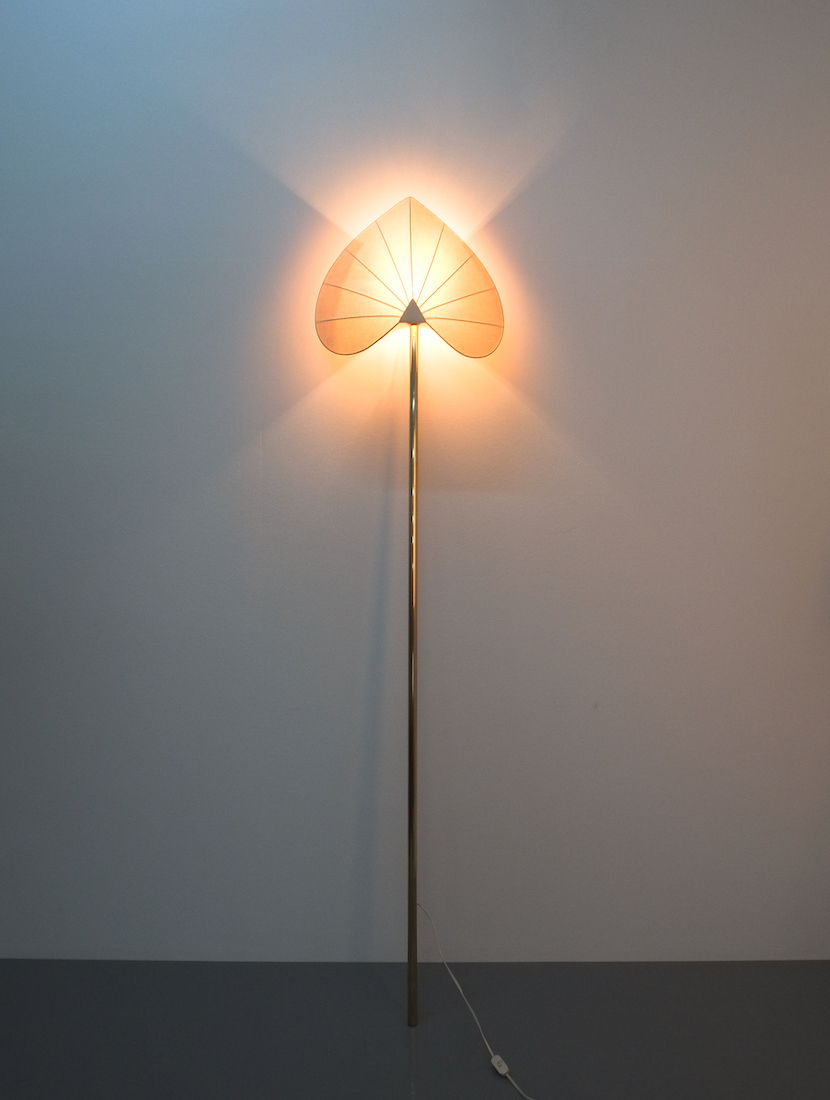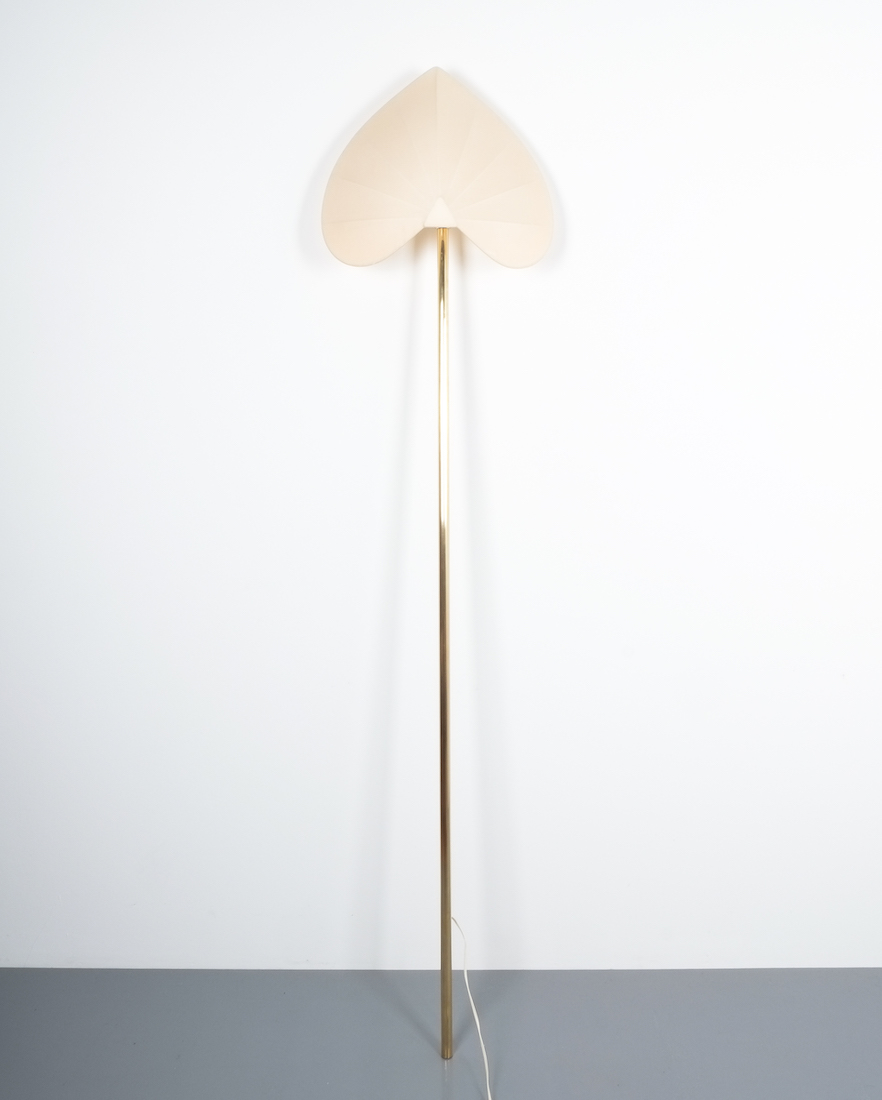 Antonio Pavia set of three Floor Lamps Brass, Italy Circa 1970. Rare set of three brass rod lights with identical silk-cotton screens. The condition is good to very good, one screen shows some staining. We can offer customized screens in any color, please inquire. heights for all 3 pieces (from heigh to low): 84.25"/ 61.81"/38.58".