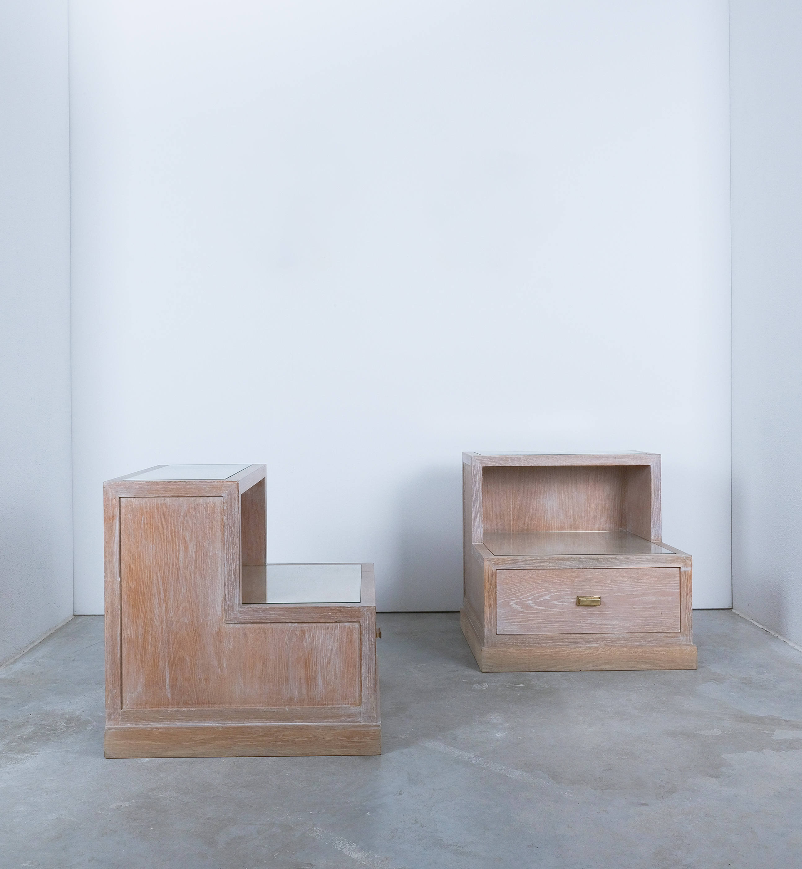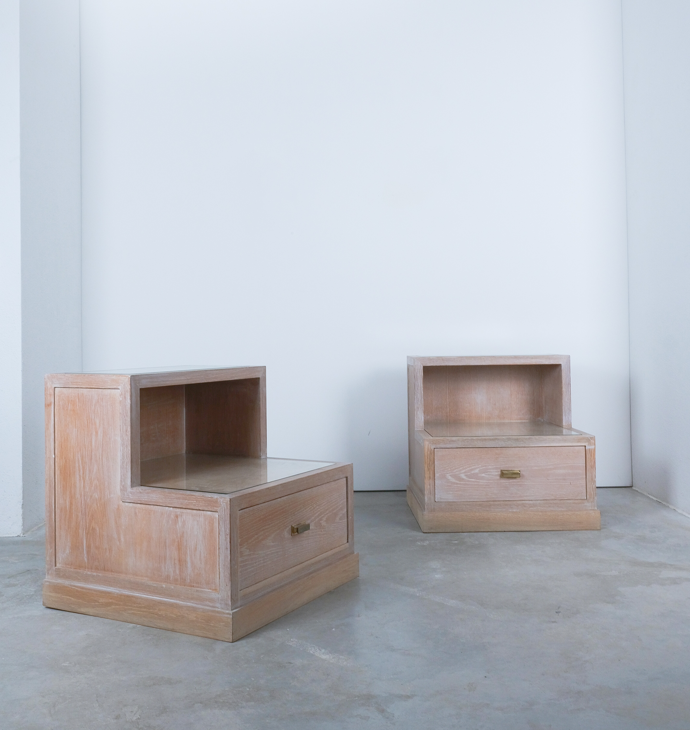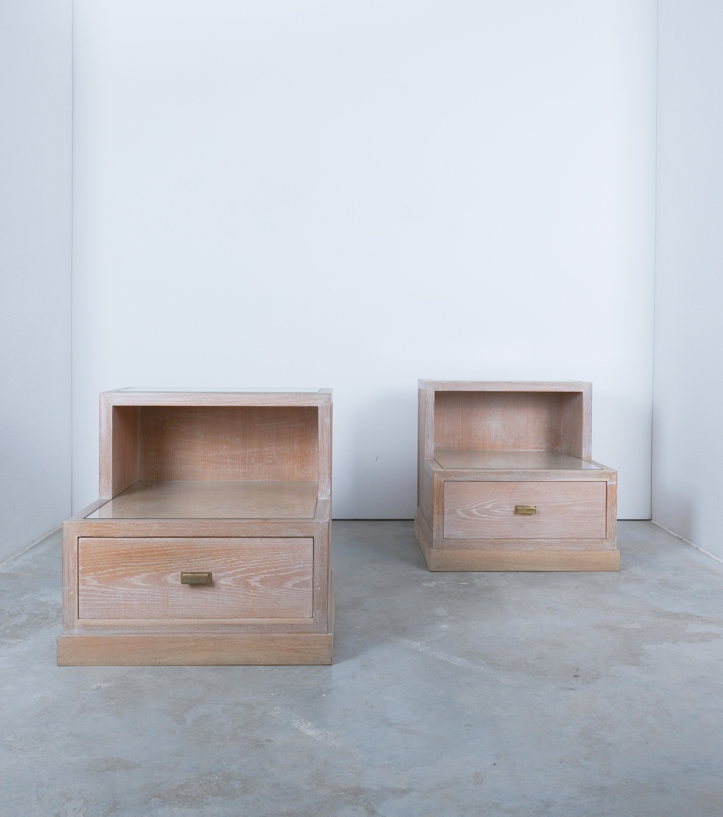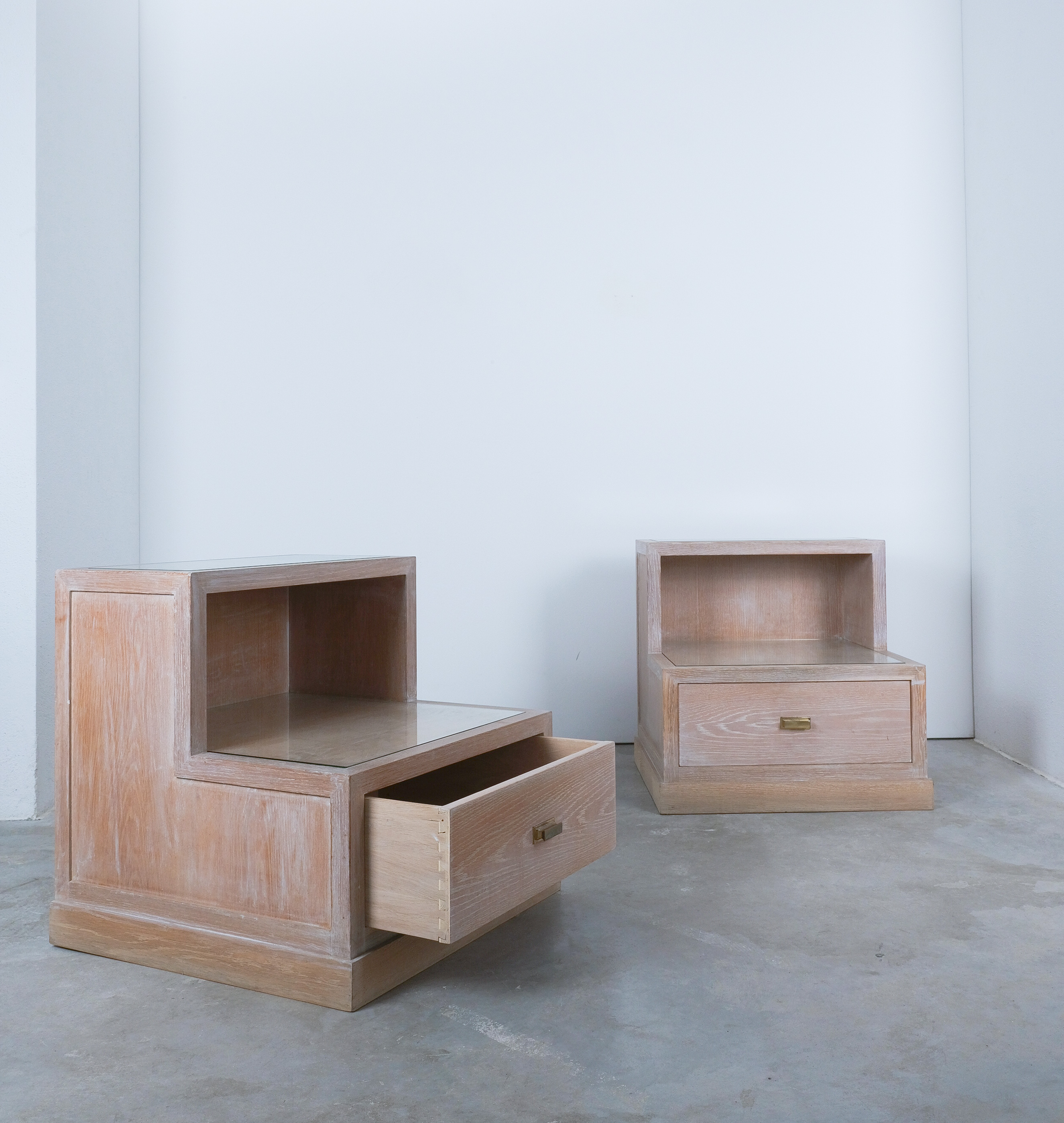 Bedside Tables Ceruse Oak Wood Glass, 1970