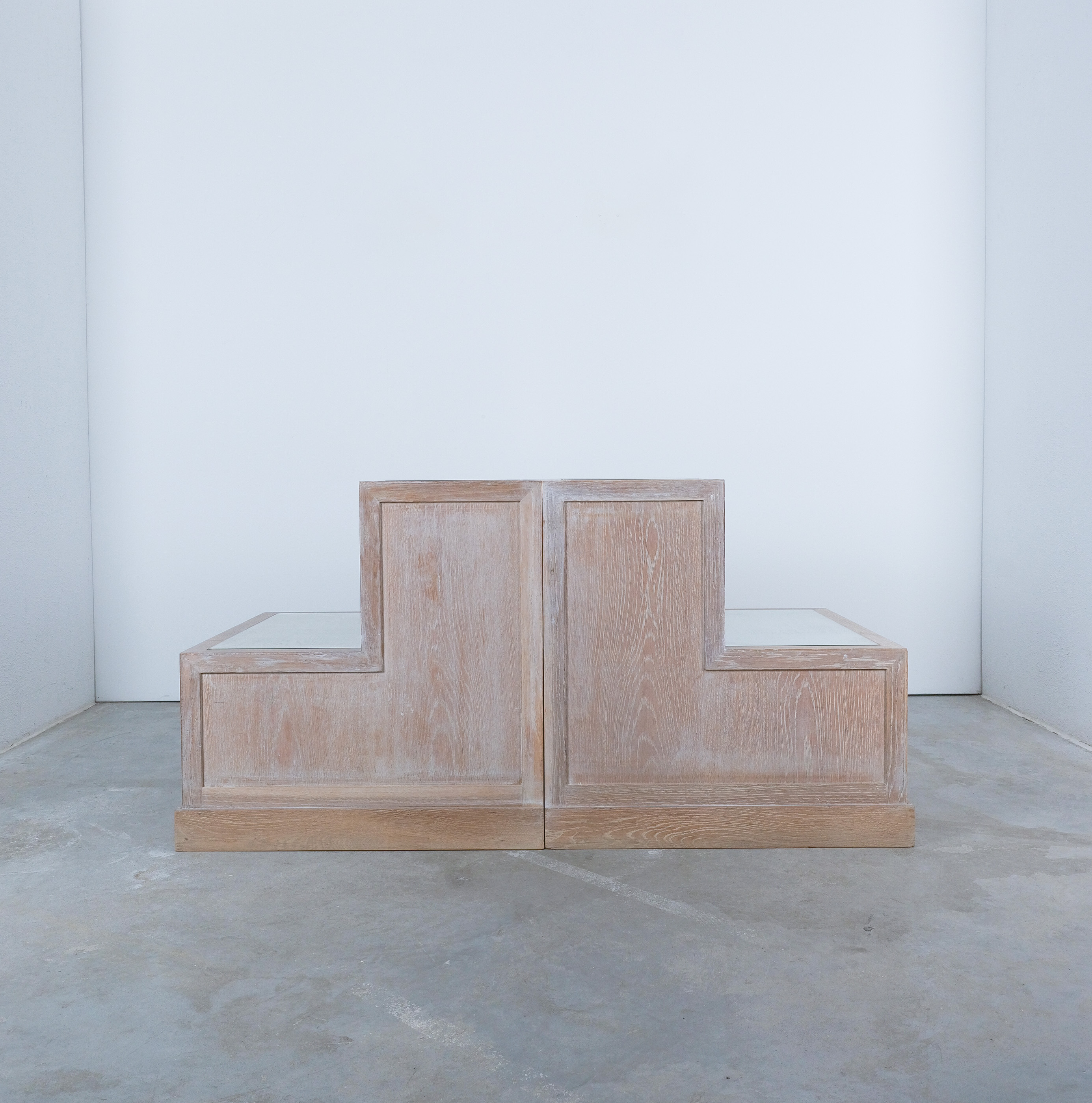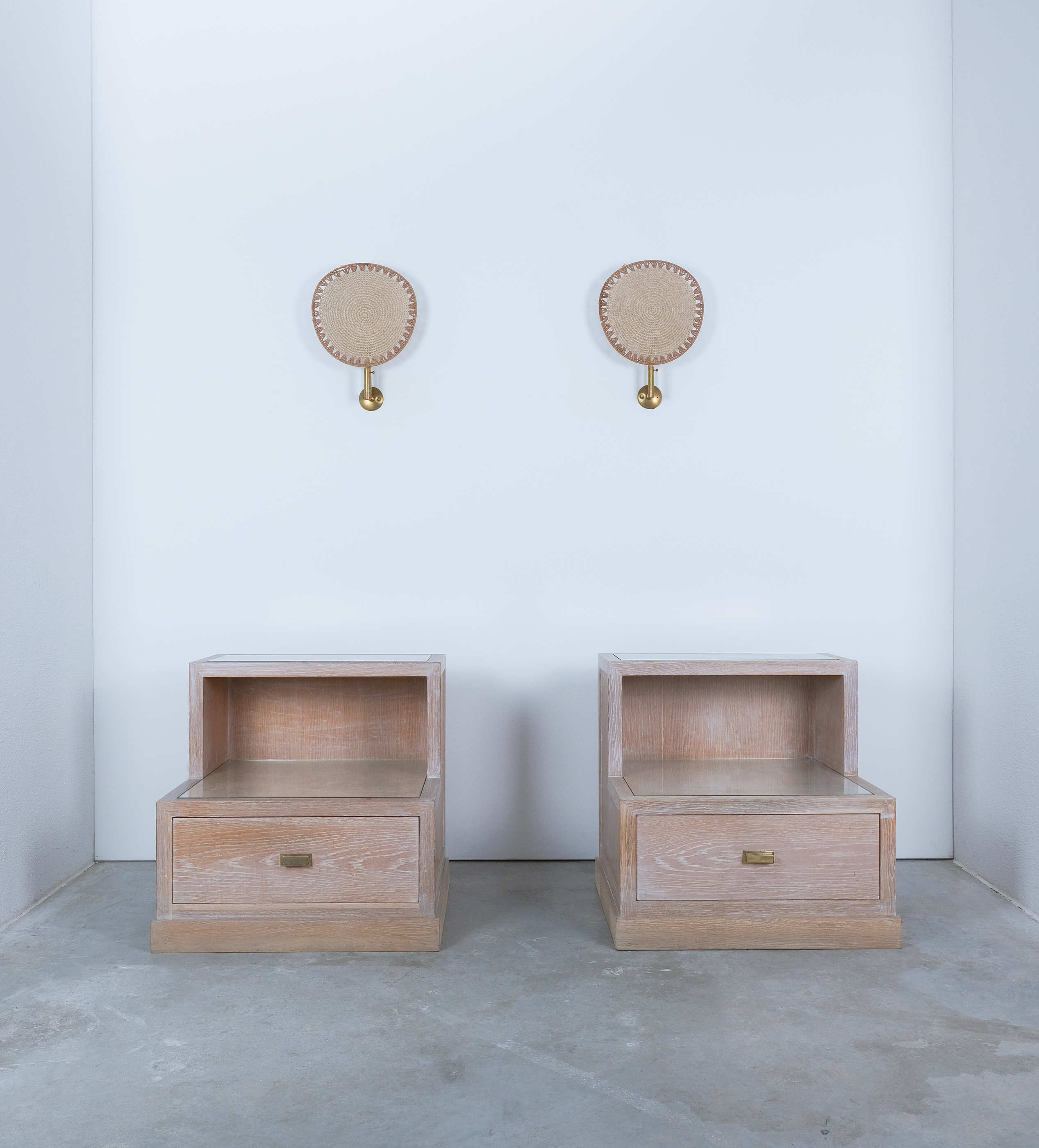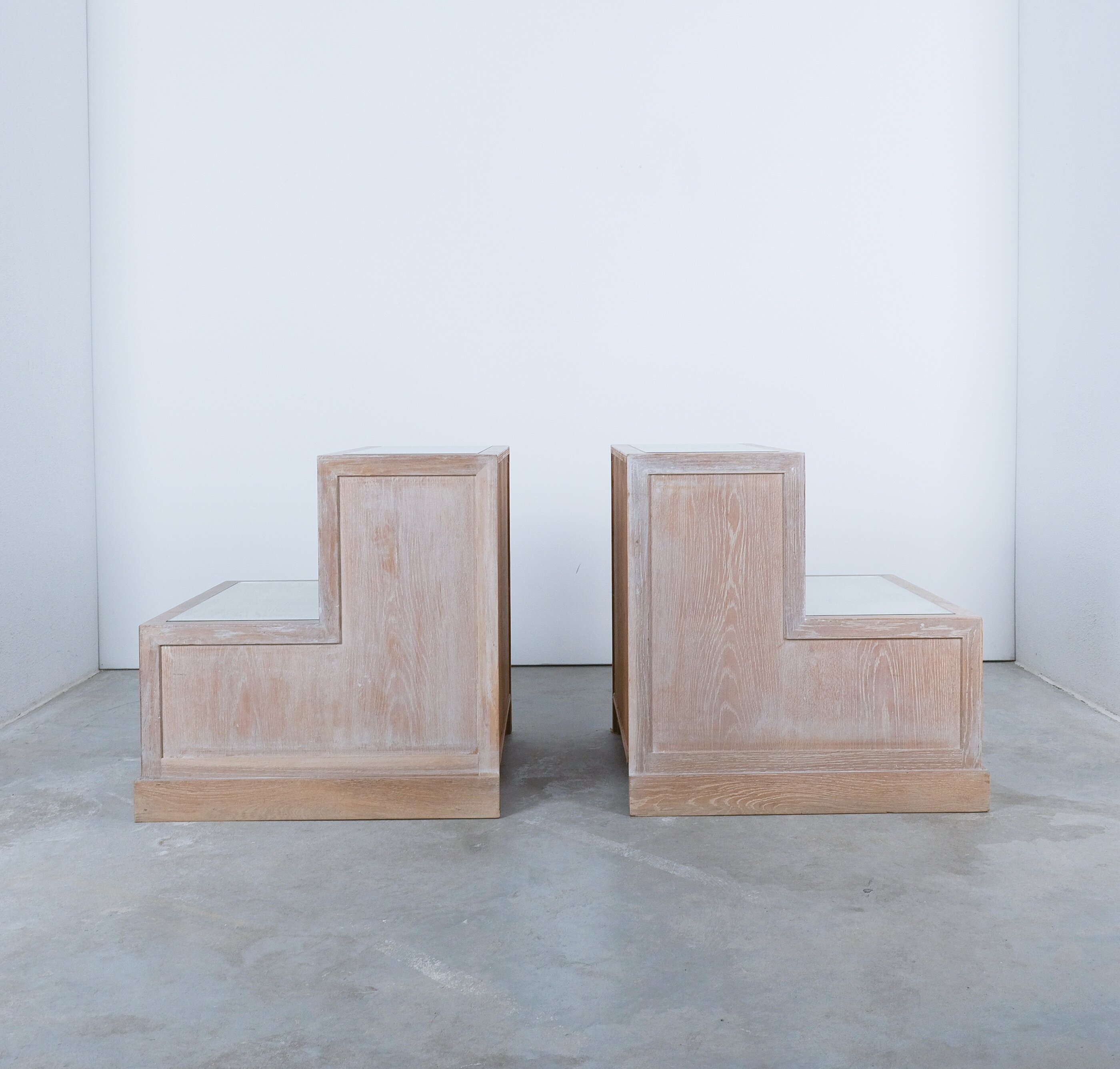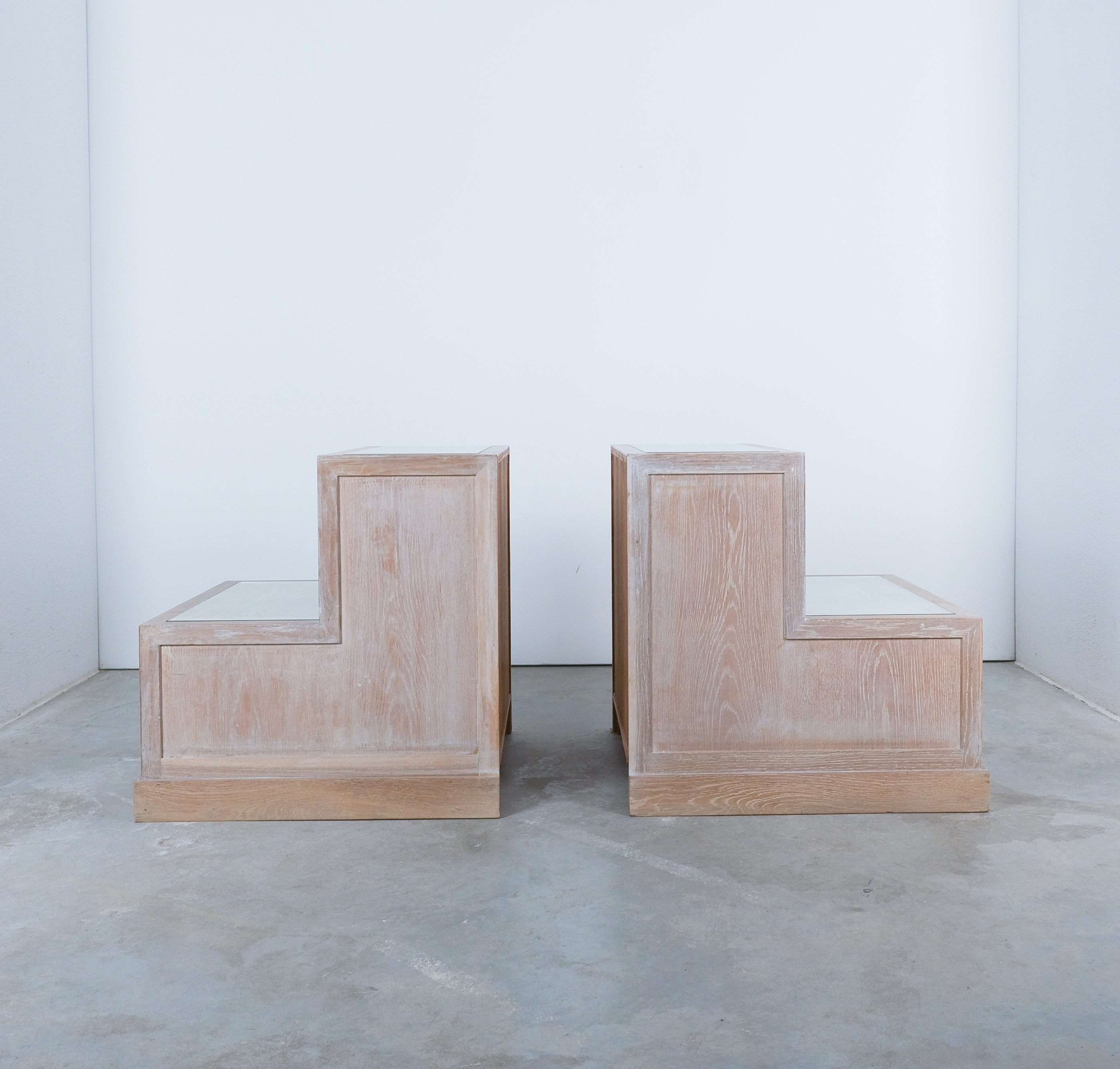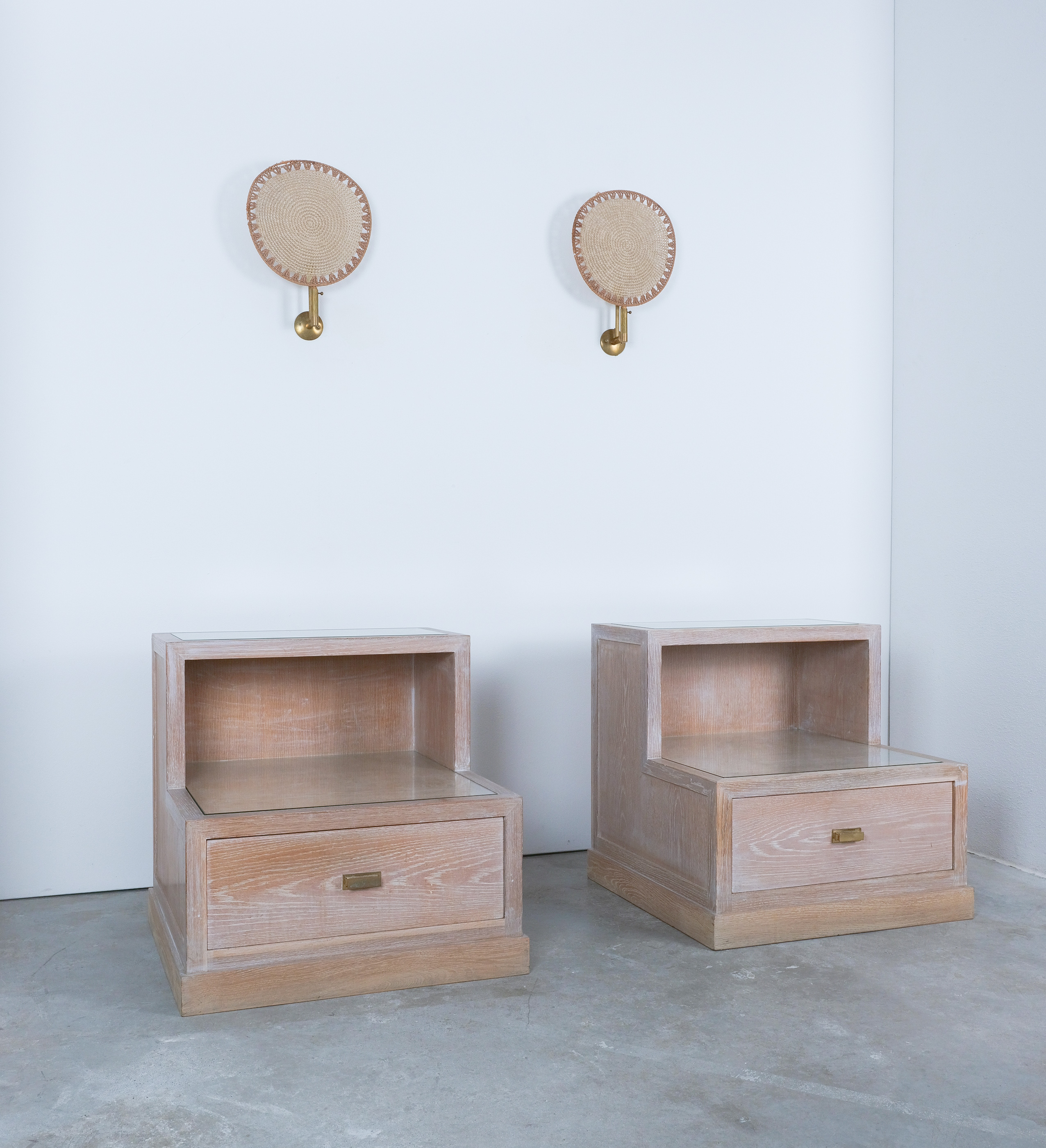 Bedside Tables Ceruse Oak Wood Glass, 1970