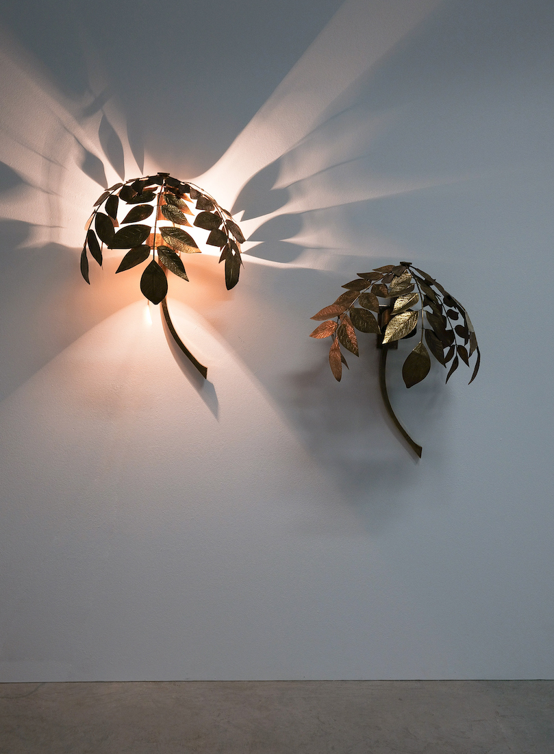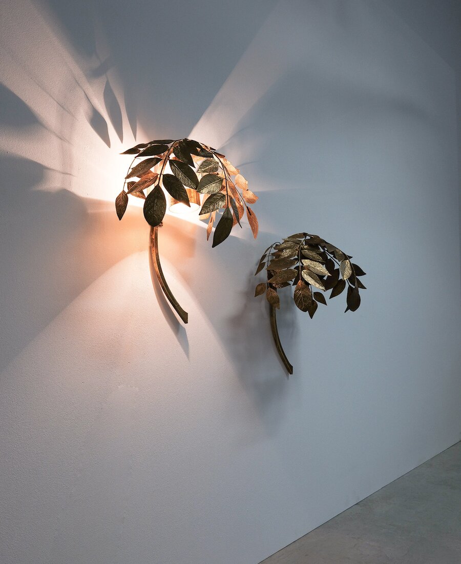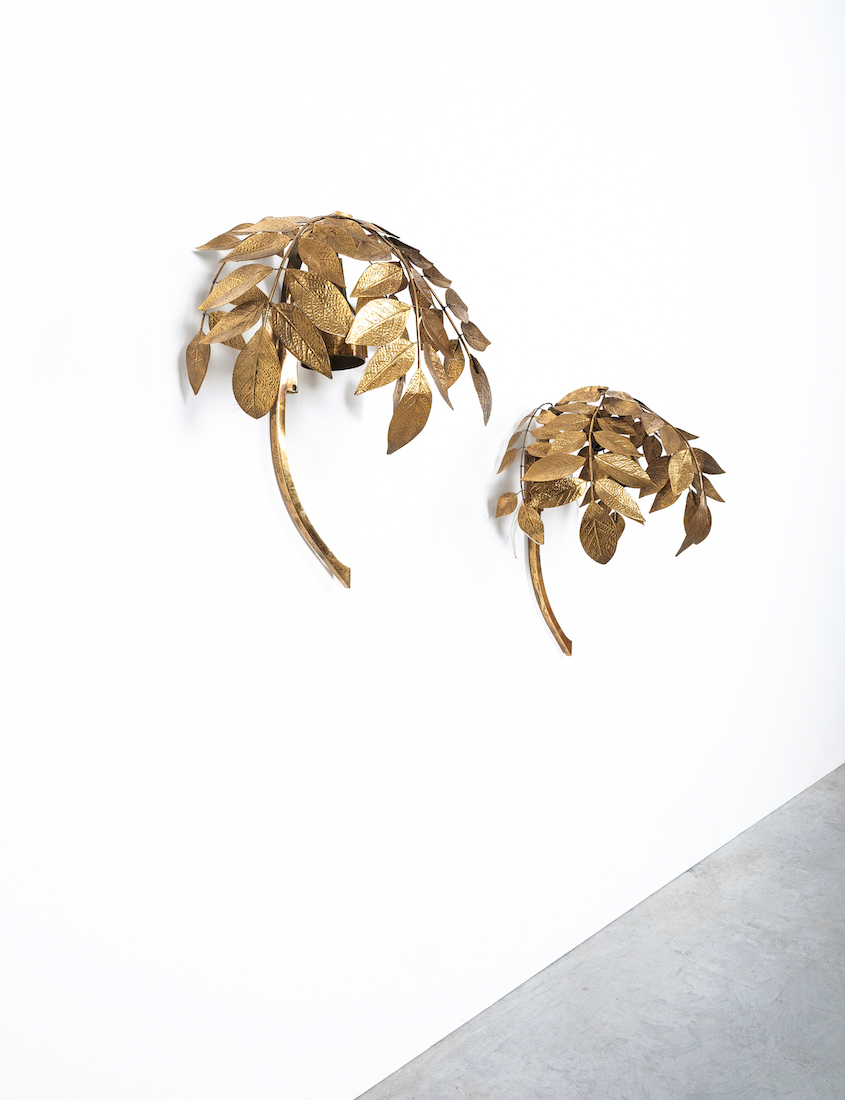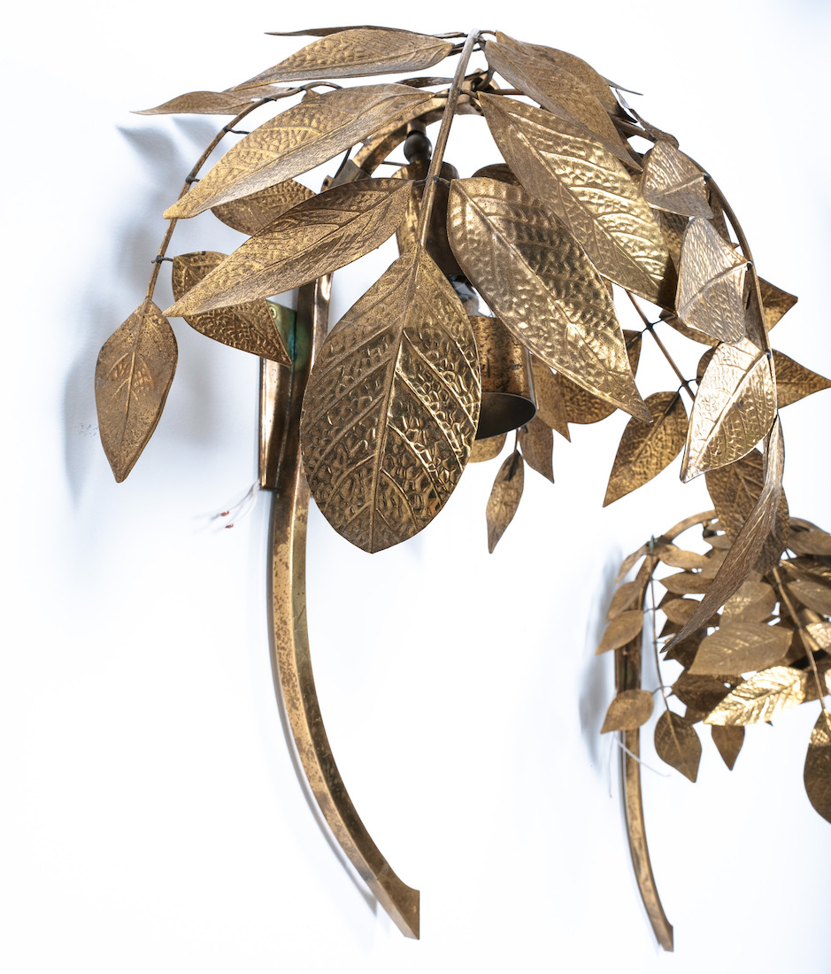 Rare wall lamps featuring some handmade branches with leaves all made from brass.
