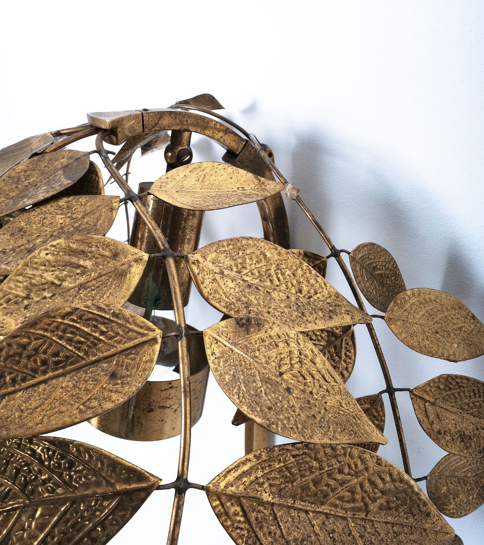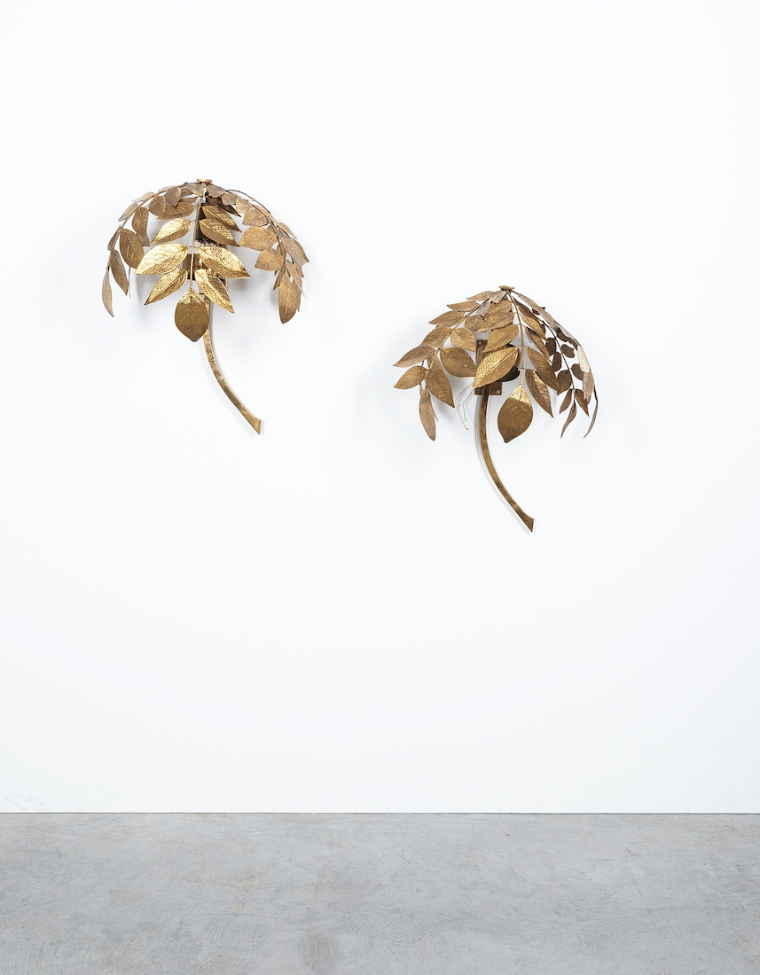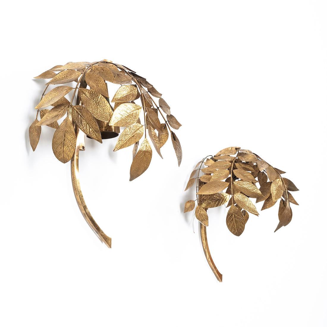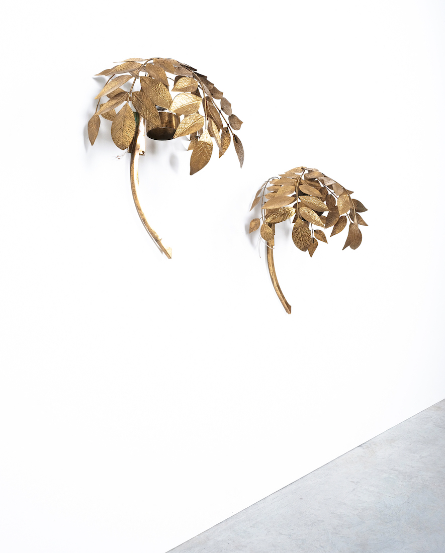 Rare wall lamps featuring some handmade branches with leaves all made from brass.