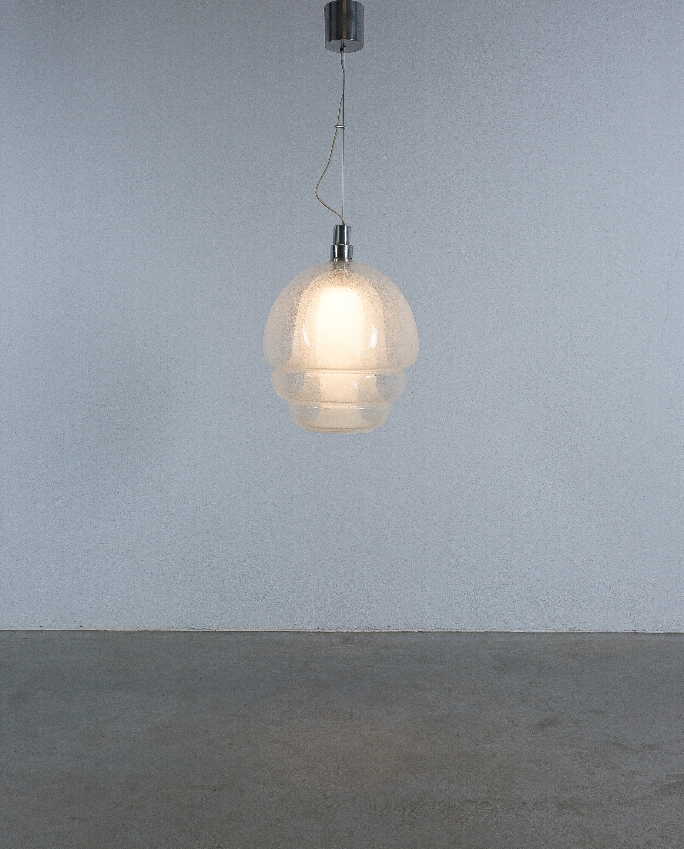 Born into a family of Venetian glassmakers, Nason began designing at a young age, with his early works, including vases, entering the Corning Museum’s collection in 1959. His collaboration with Mazzega allowed him to push creative boundaries, resulting in iconic designs like the Medusa lamp, which seamlessly blends traditional glassblowing techniques with modernist aesthetics. "Soffiature" refers to the process of creating multiple layers of glass, each meticulously hand-blown to achieve the desired thickness and texture. In the Medusa lamp, these four layers produce a captivating interplay of light and form, making it a highly collectible design object.