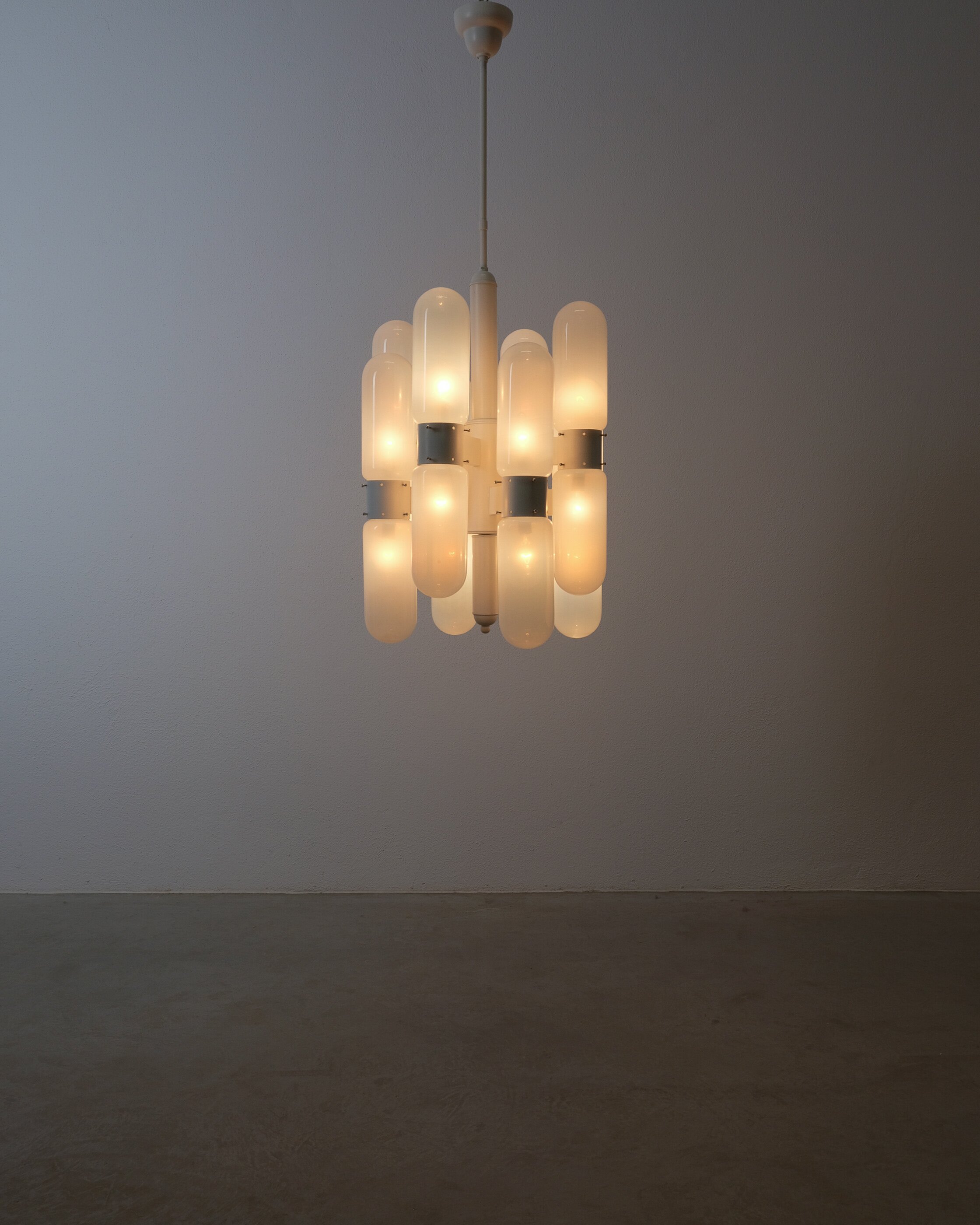 Carlo Nason Torpedo Glass Chandelier Mazzega, Italy, 1960