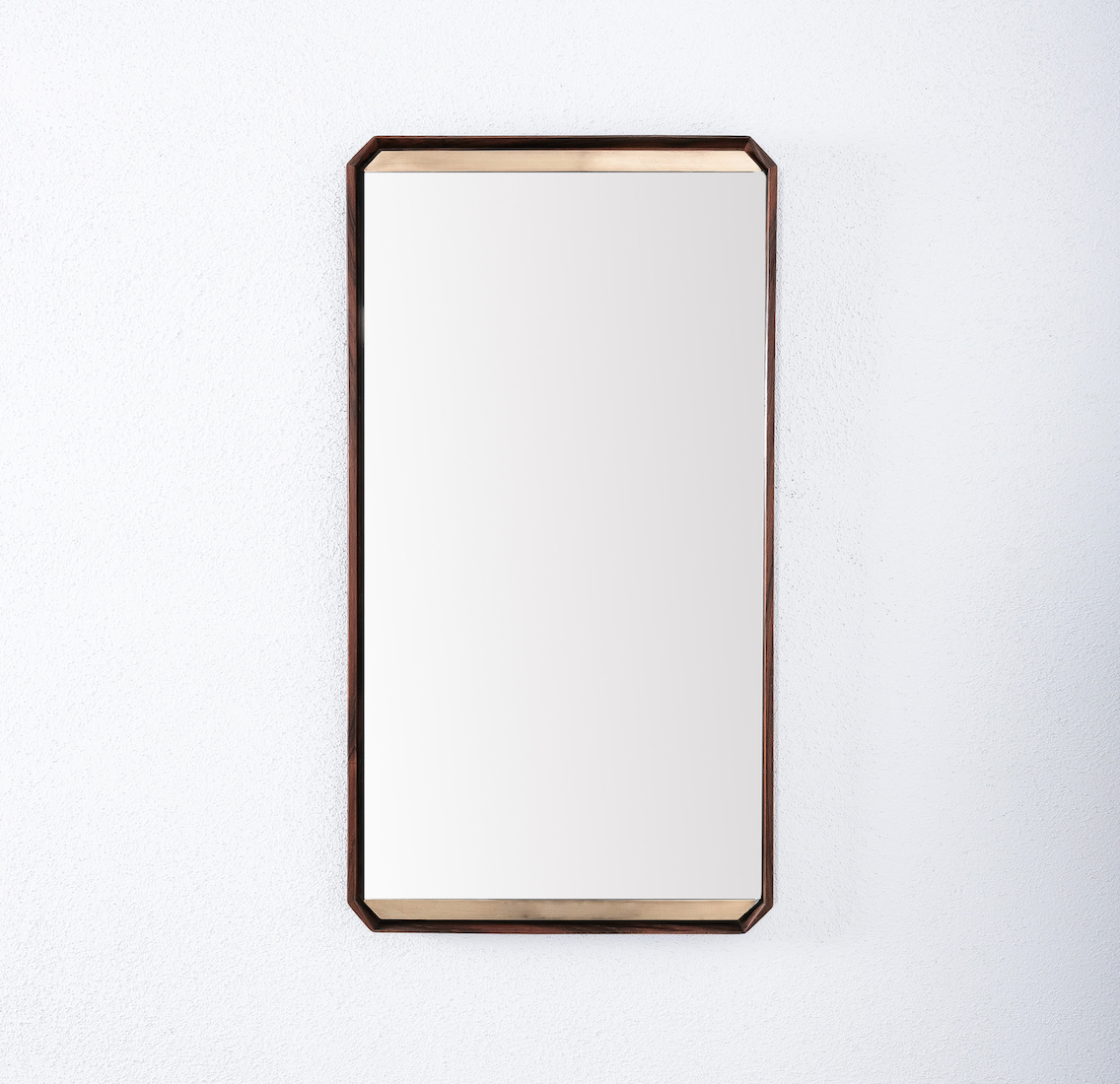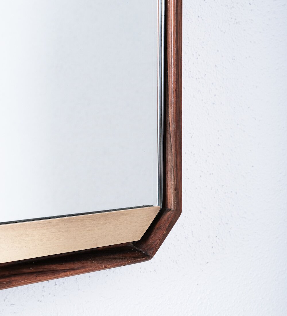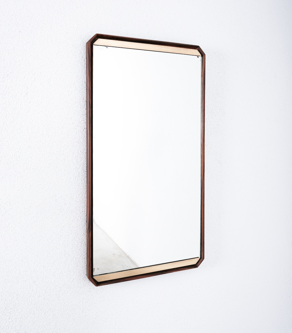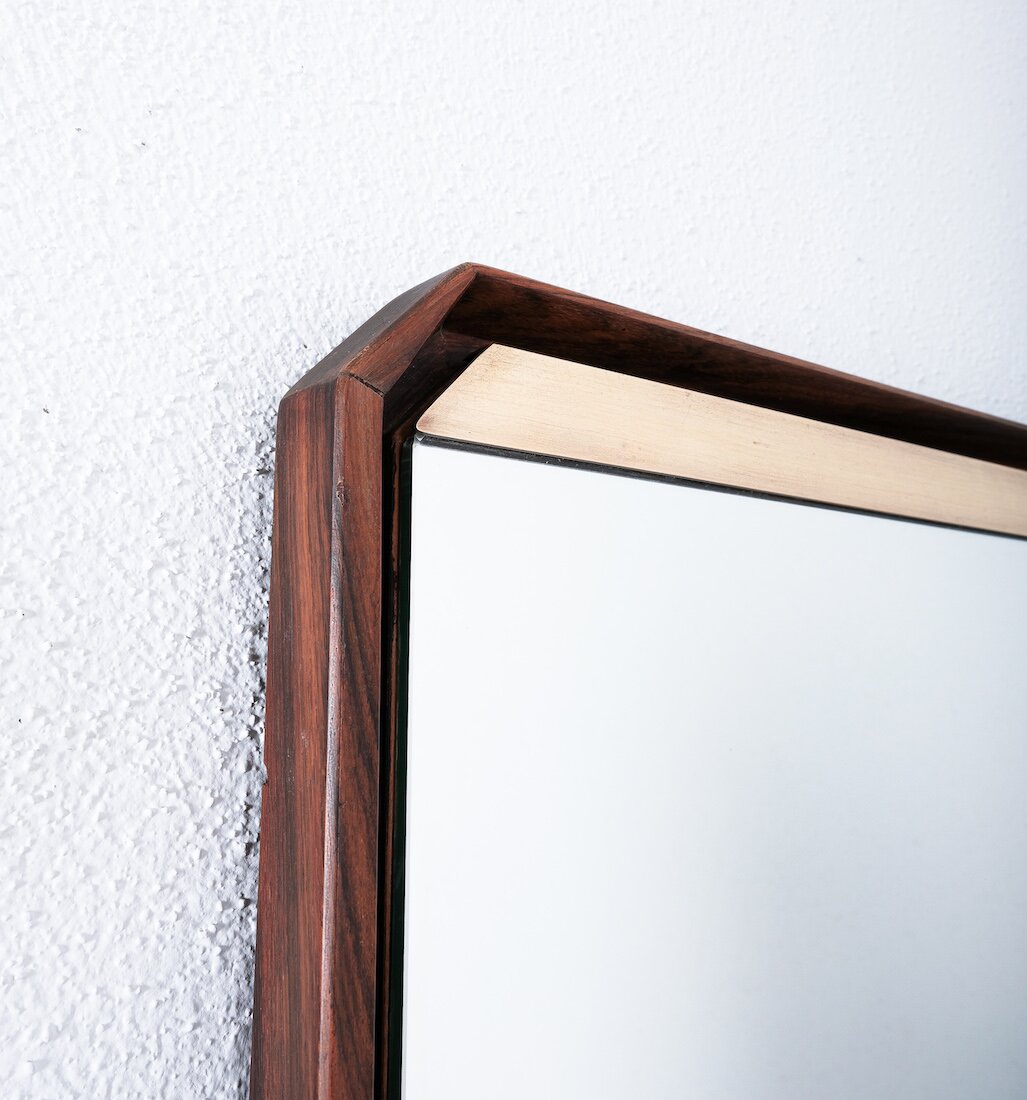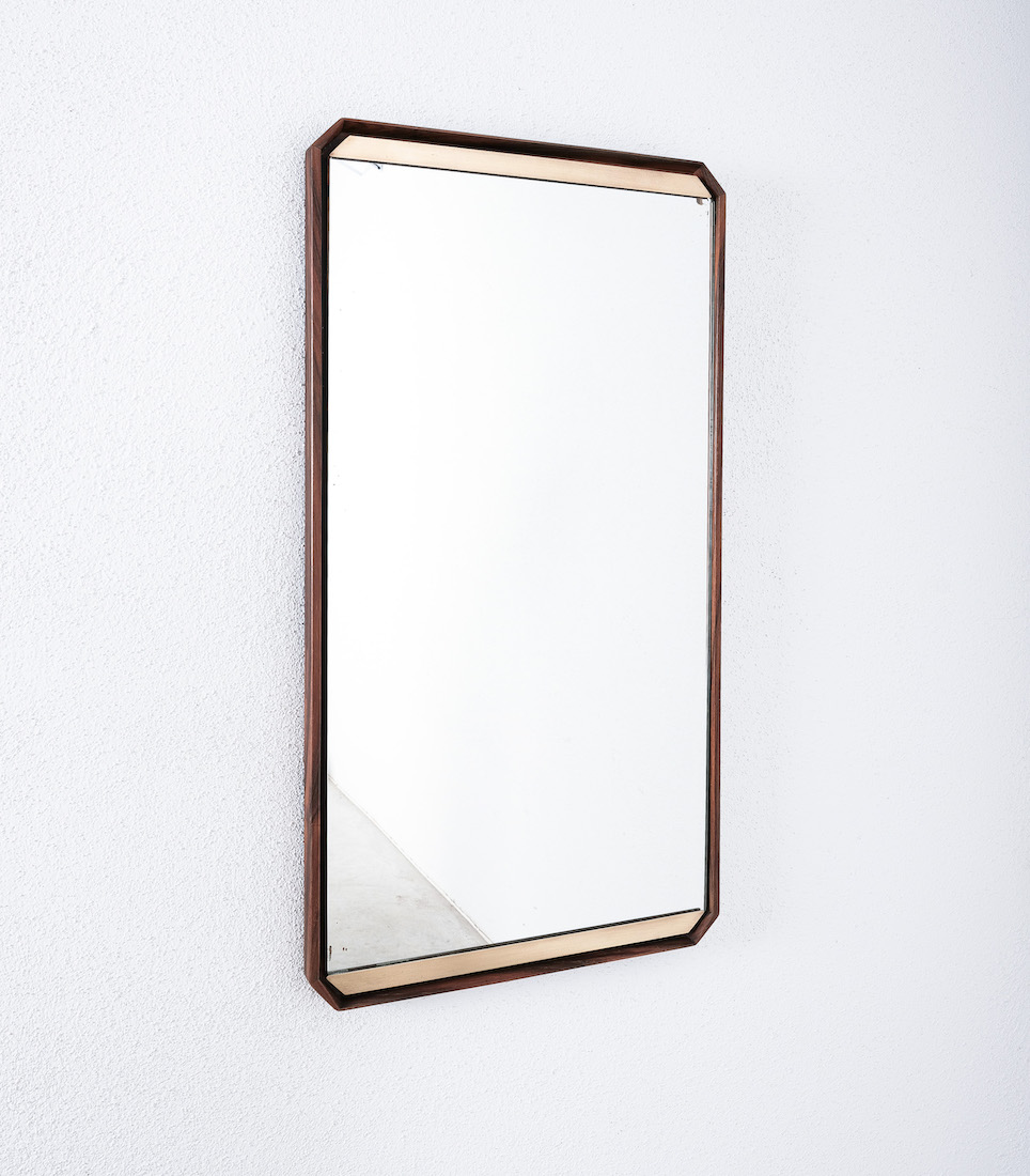Dino Cavalli Walnut Brass Mirrors (2), Mid-Century Modern, Italy
