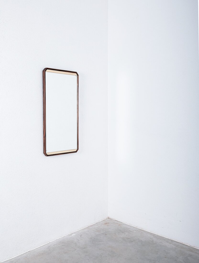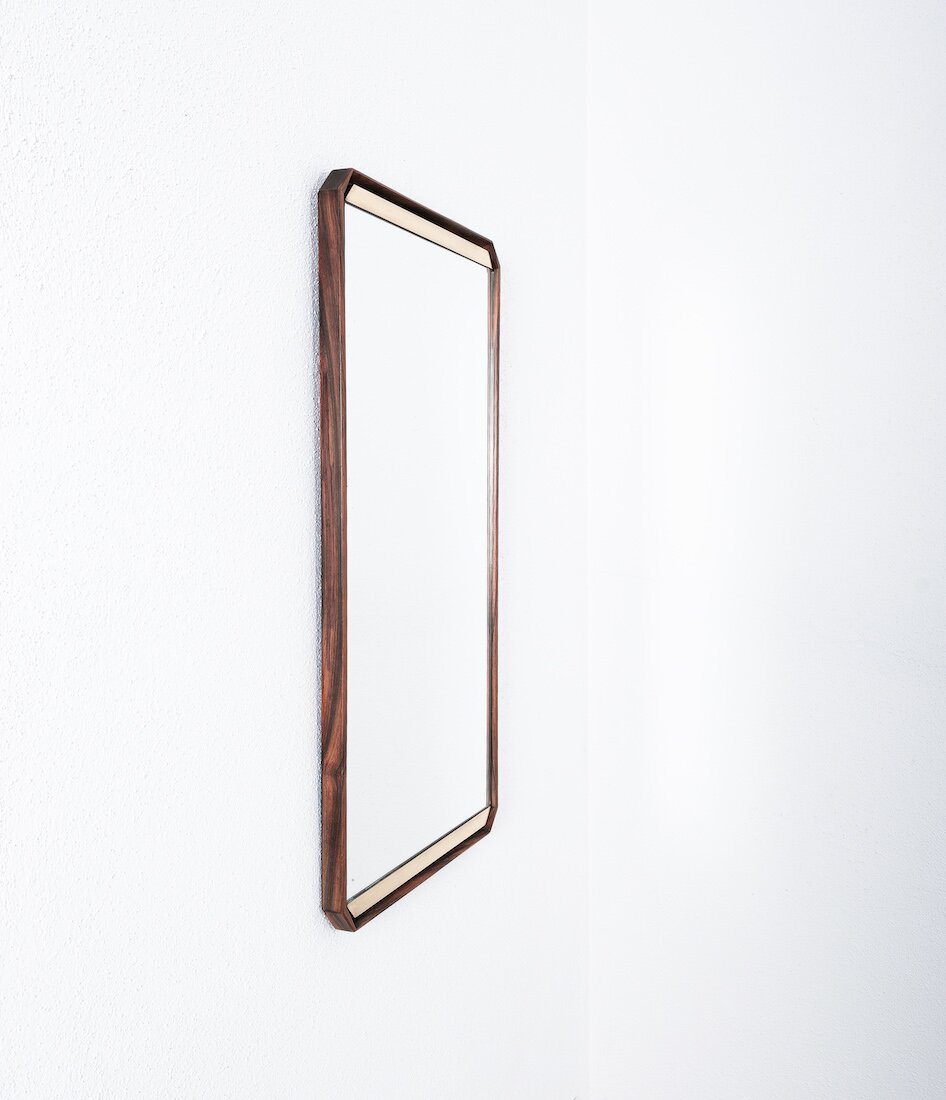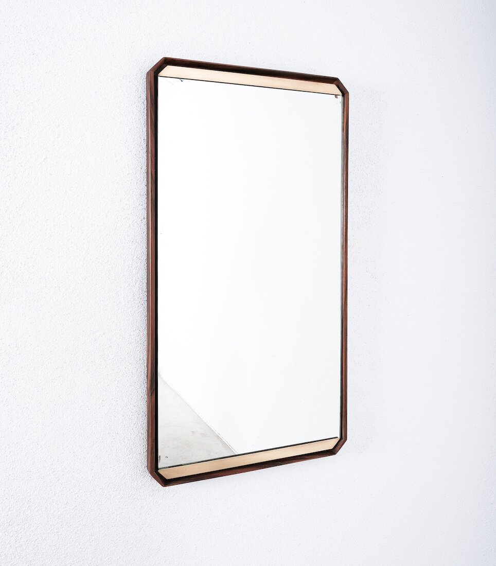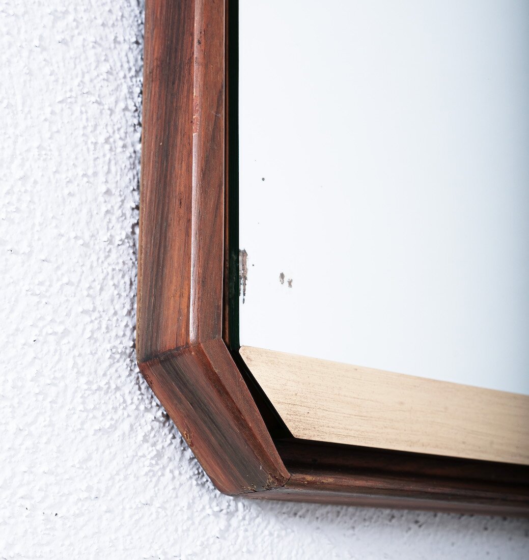 Dino Cavalli, vintage walnut-wood mirror, midcentury, Italy.