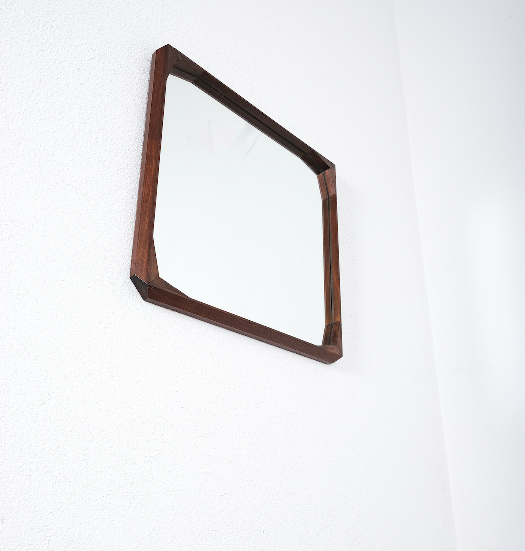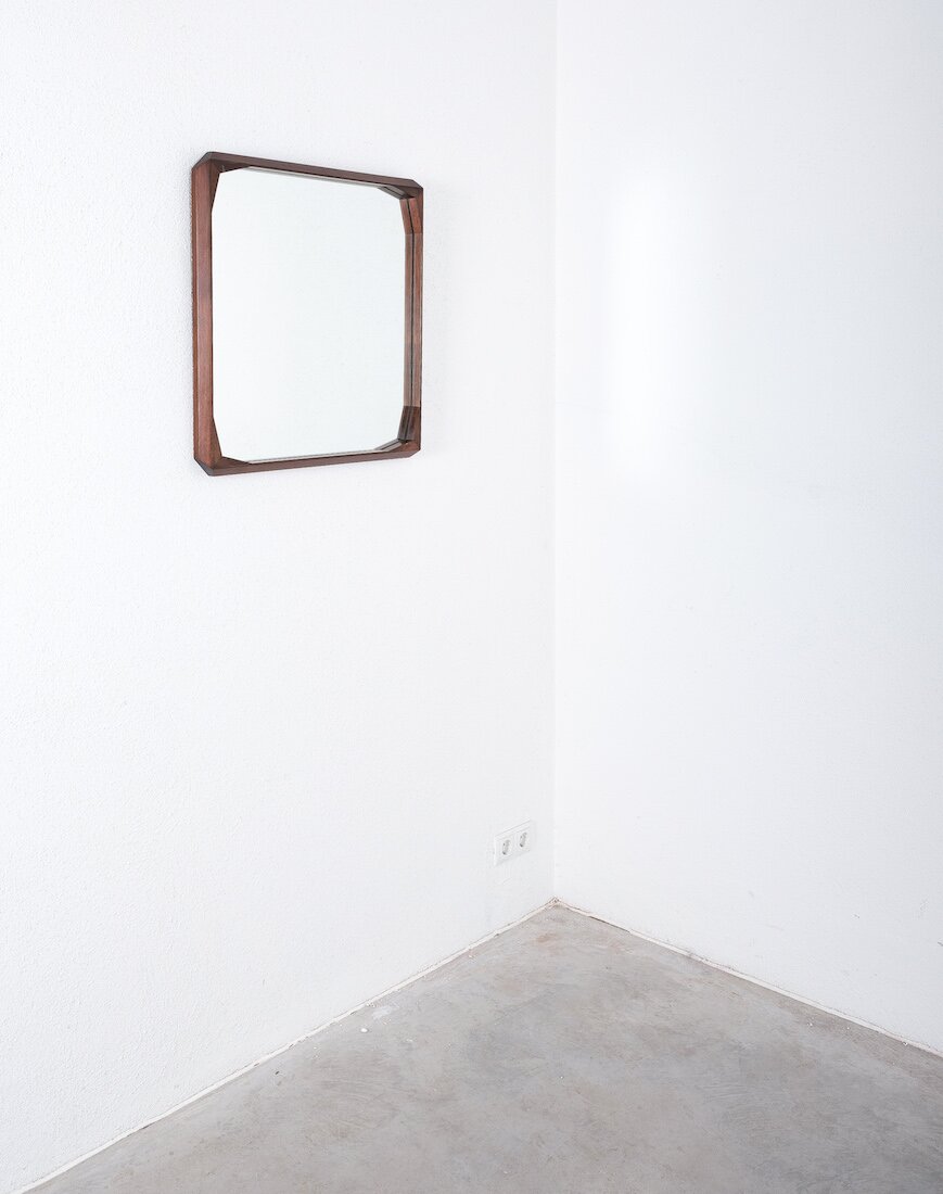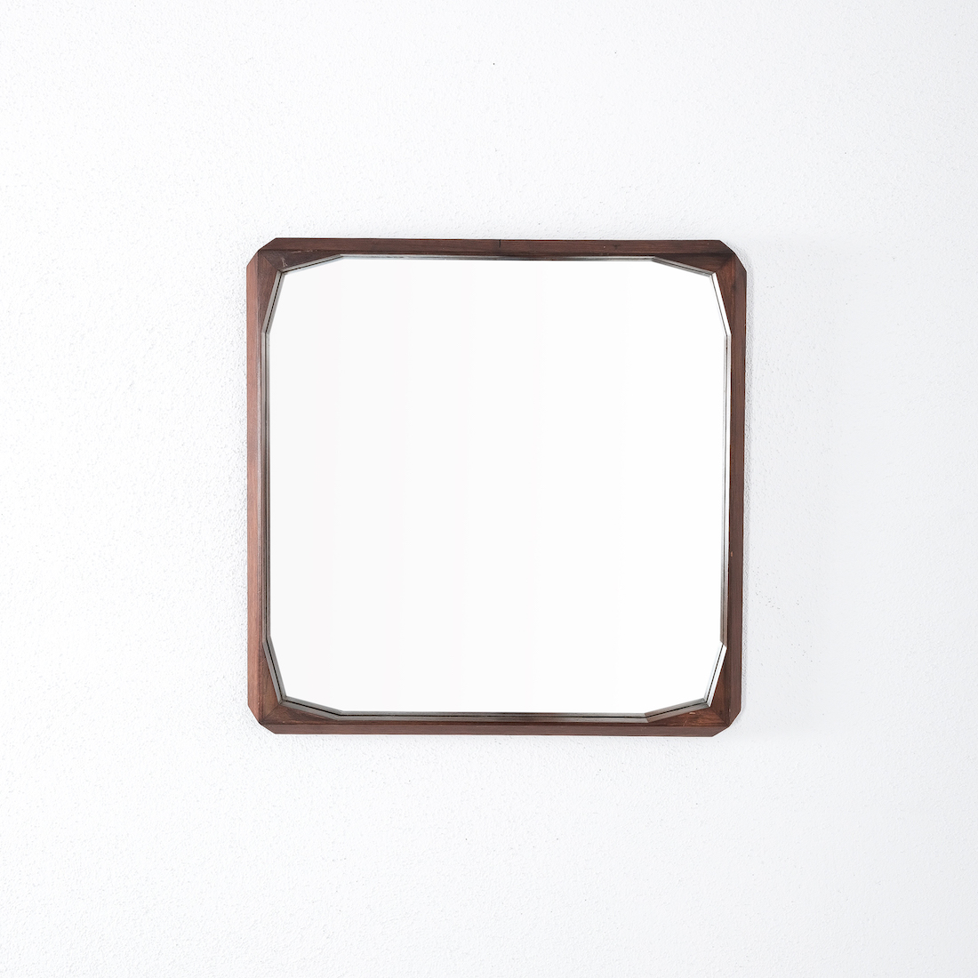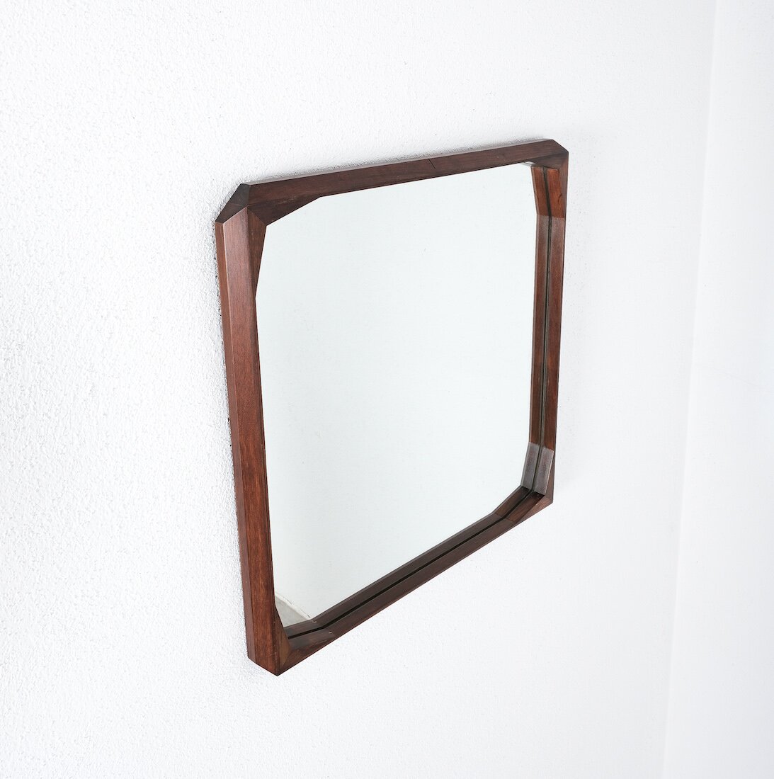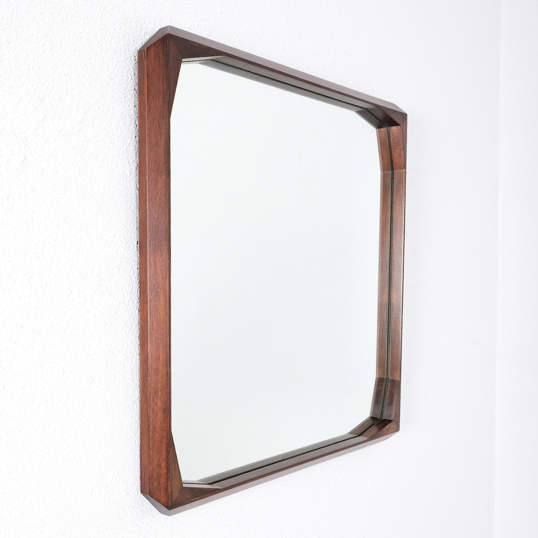 Dino Cavalli walnut mirror, midcentury, Italy. Dino Cavalli square walnut mirror, midcentury, Italy. Measuring 24.4" this mirror is in good vintage condition. We have similar round models available.