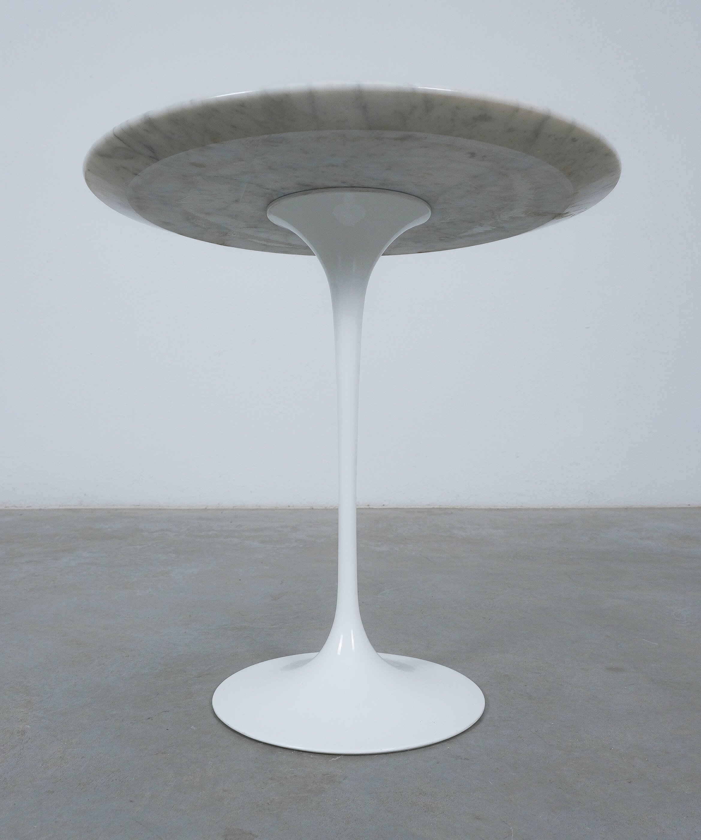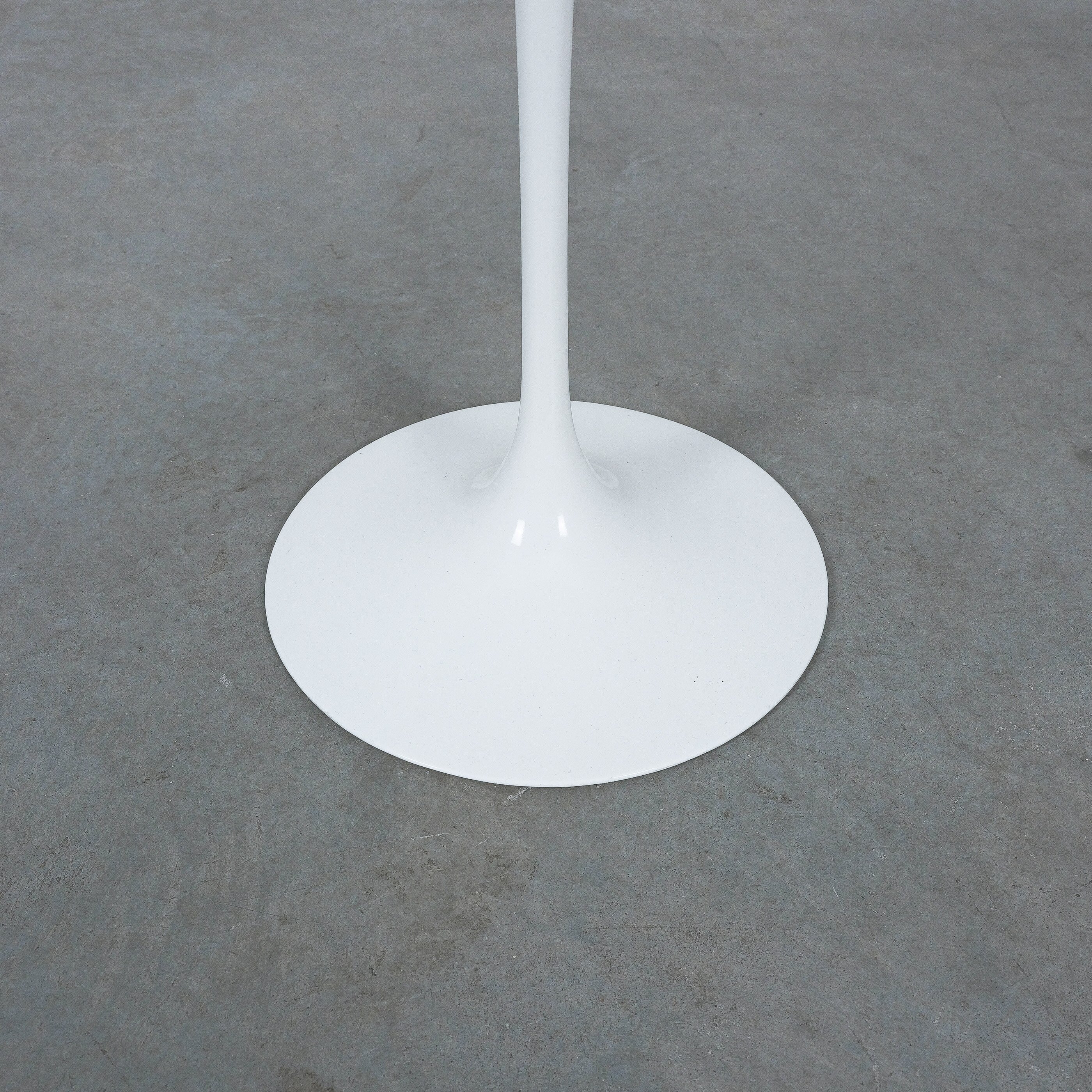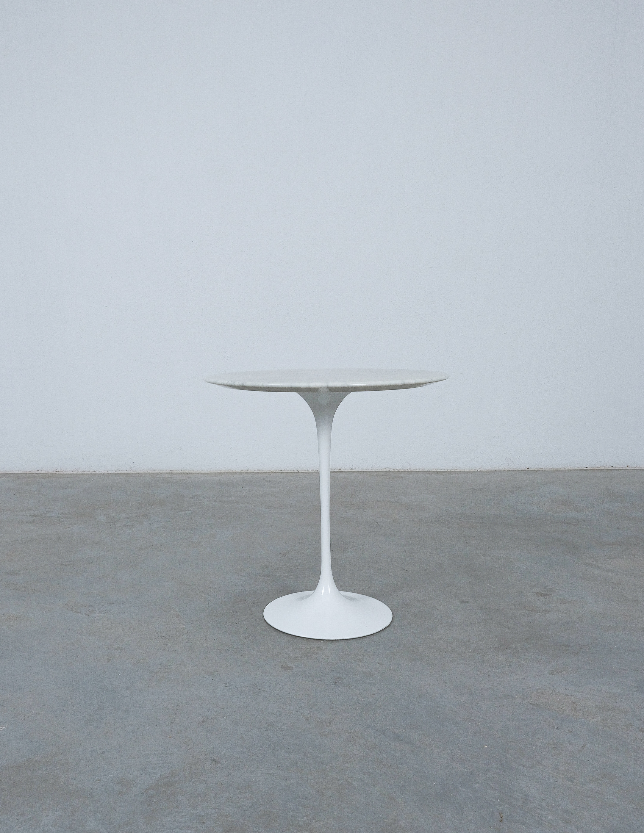Elegant side table designed by the architect Eero Saarinen in very good original vintage condition featuring a smooth white marble top and a very slender base.