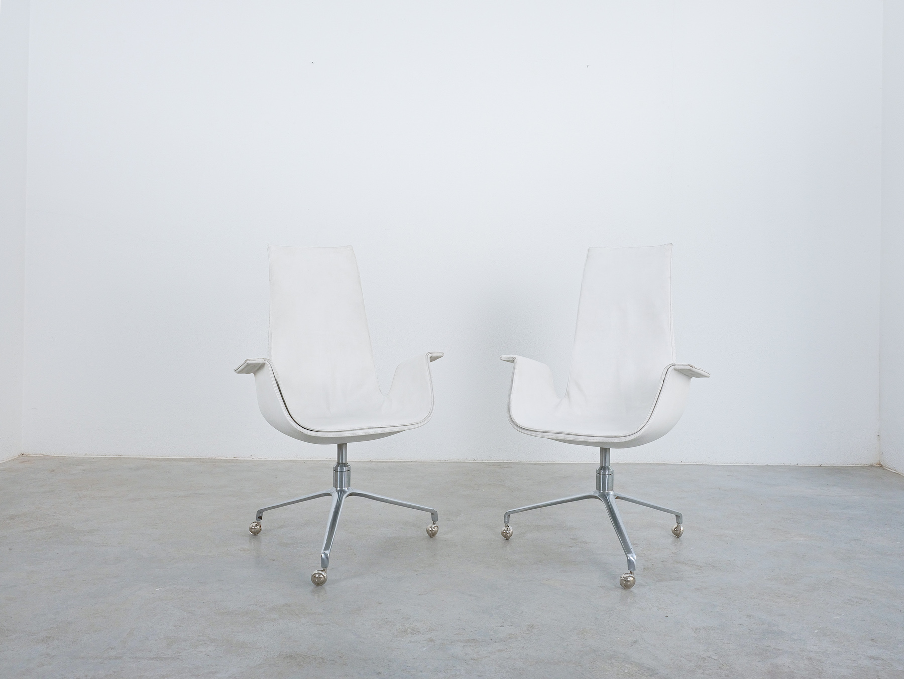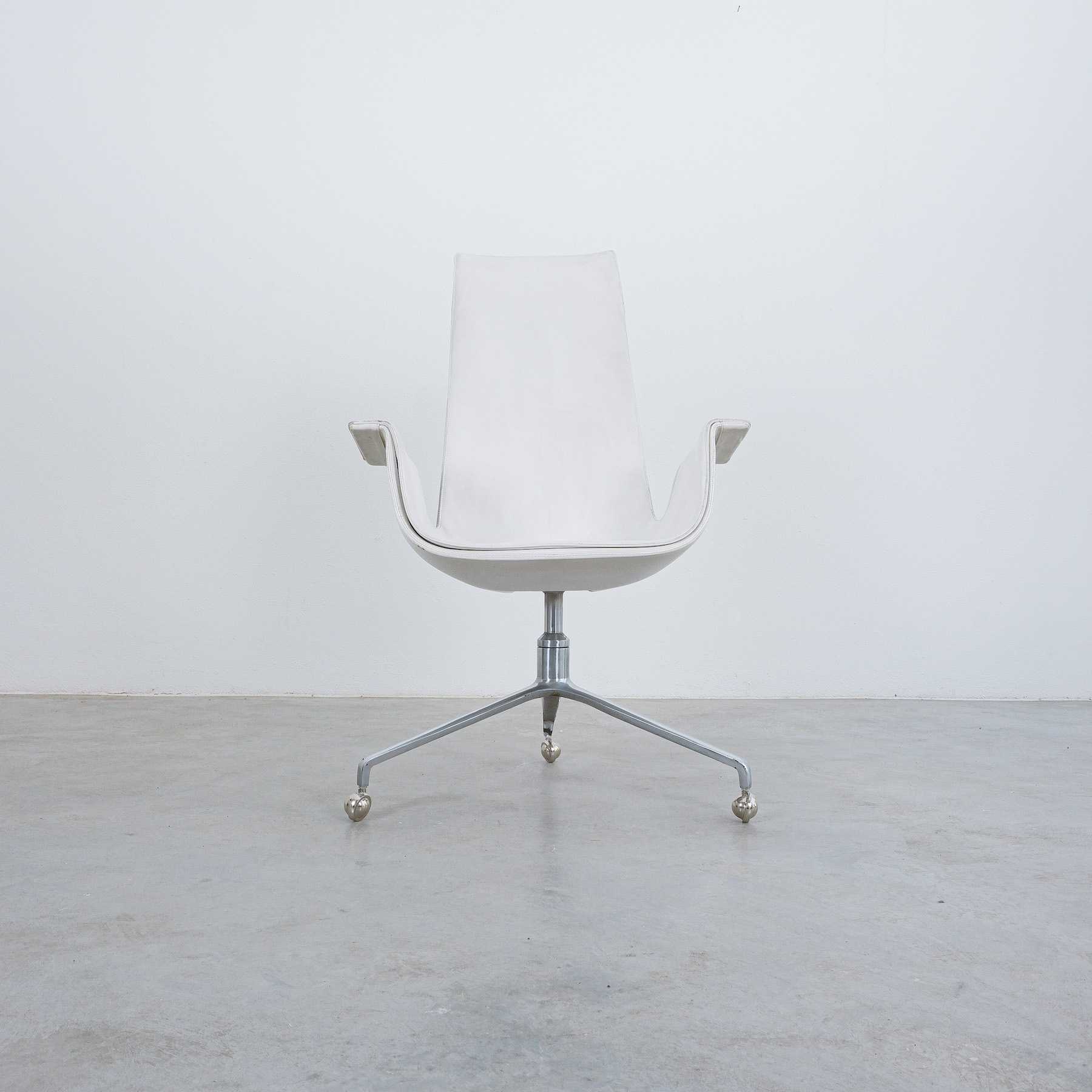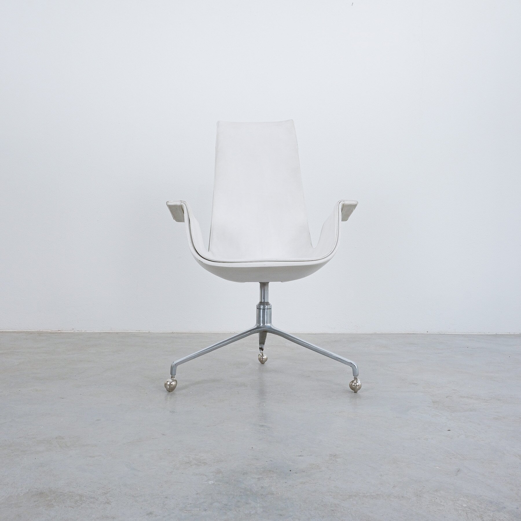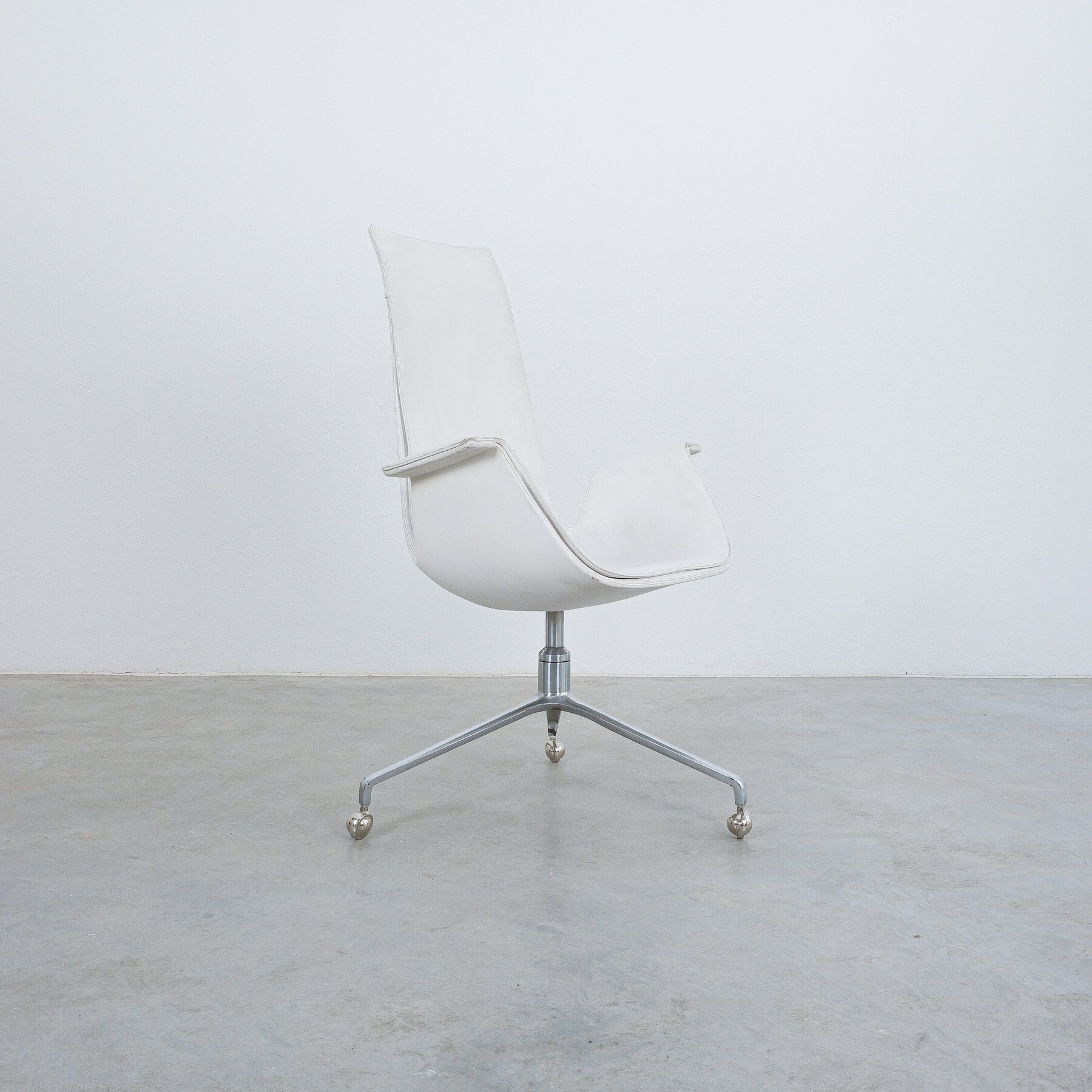 Fabricius and Kastholm 3x White High Back Bird Desk Chair Swivel Base FK 6725, 1964 (seat height 19") Three pieces available, priced per chair.