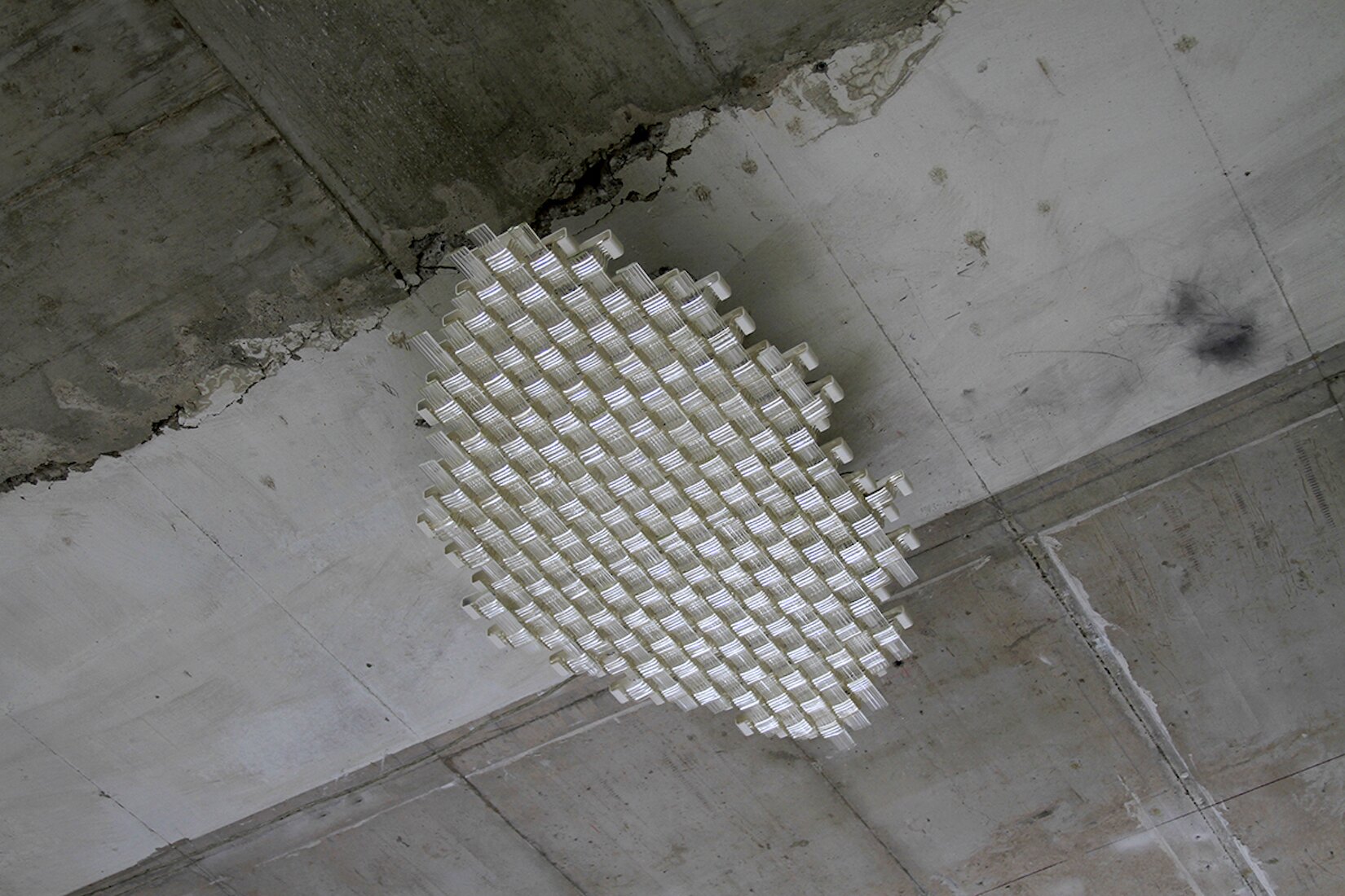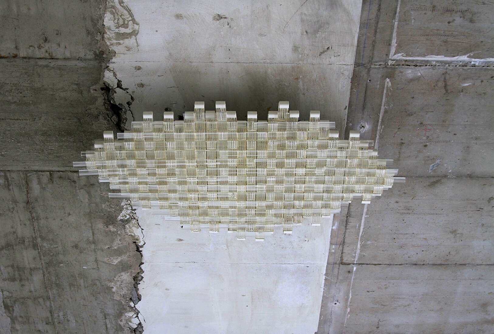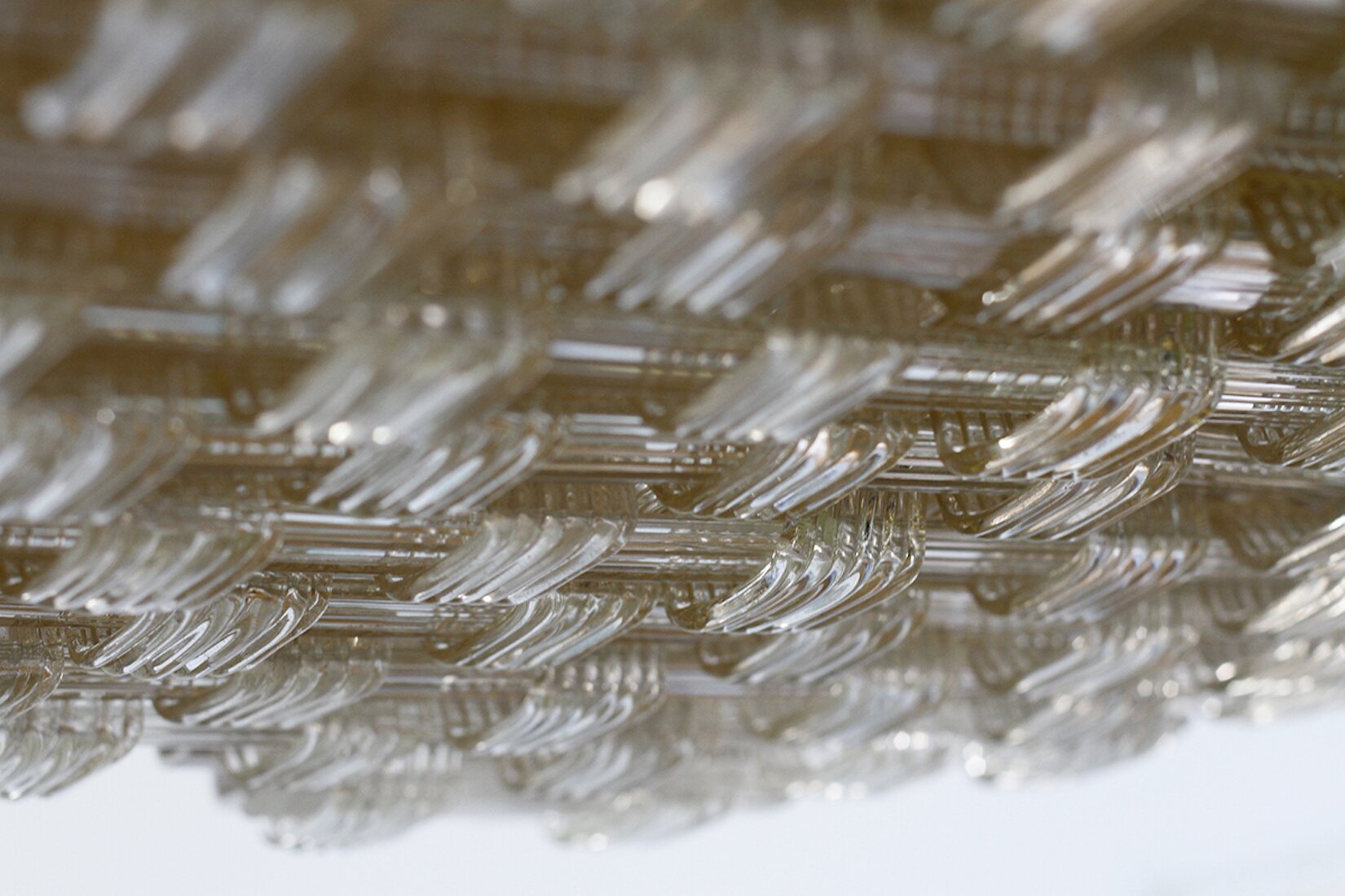 The original gilt melted glass laces were carefully interwoven once again and cast into a more contemporary shape.