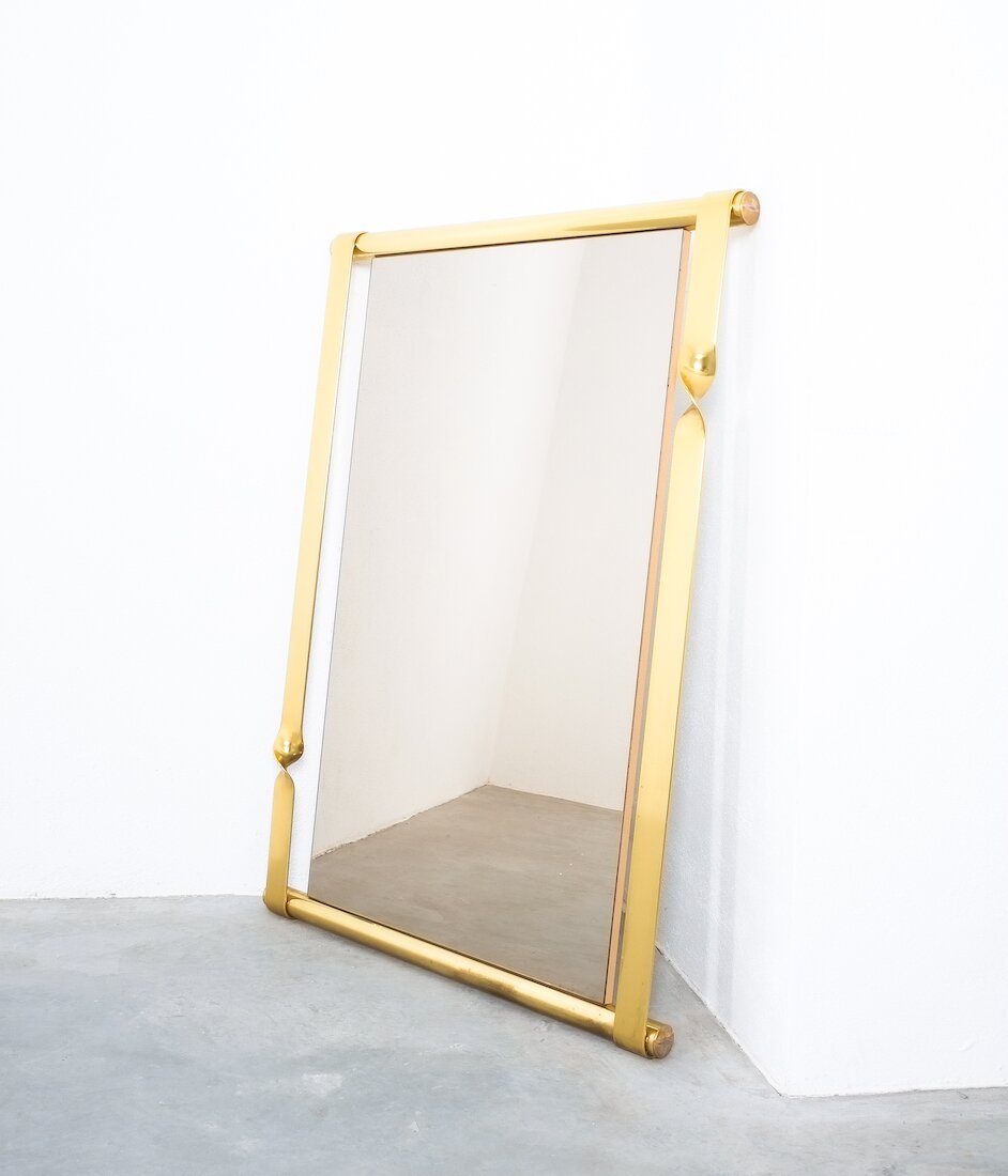 Frigerio Floating Brass Midcentury Mirror with Twisted Frame, Italy, circa 1970