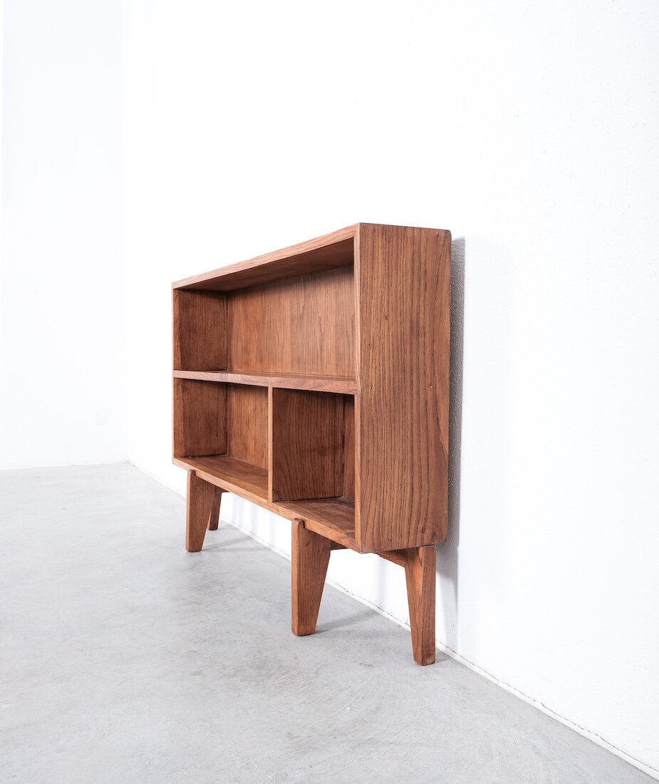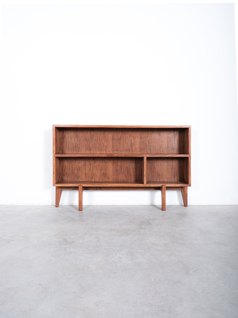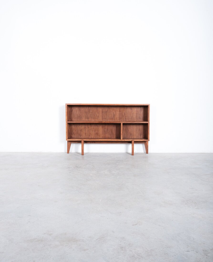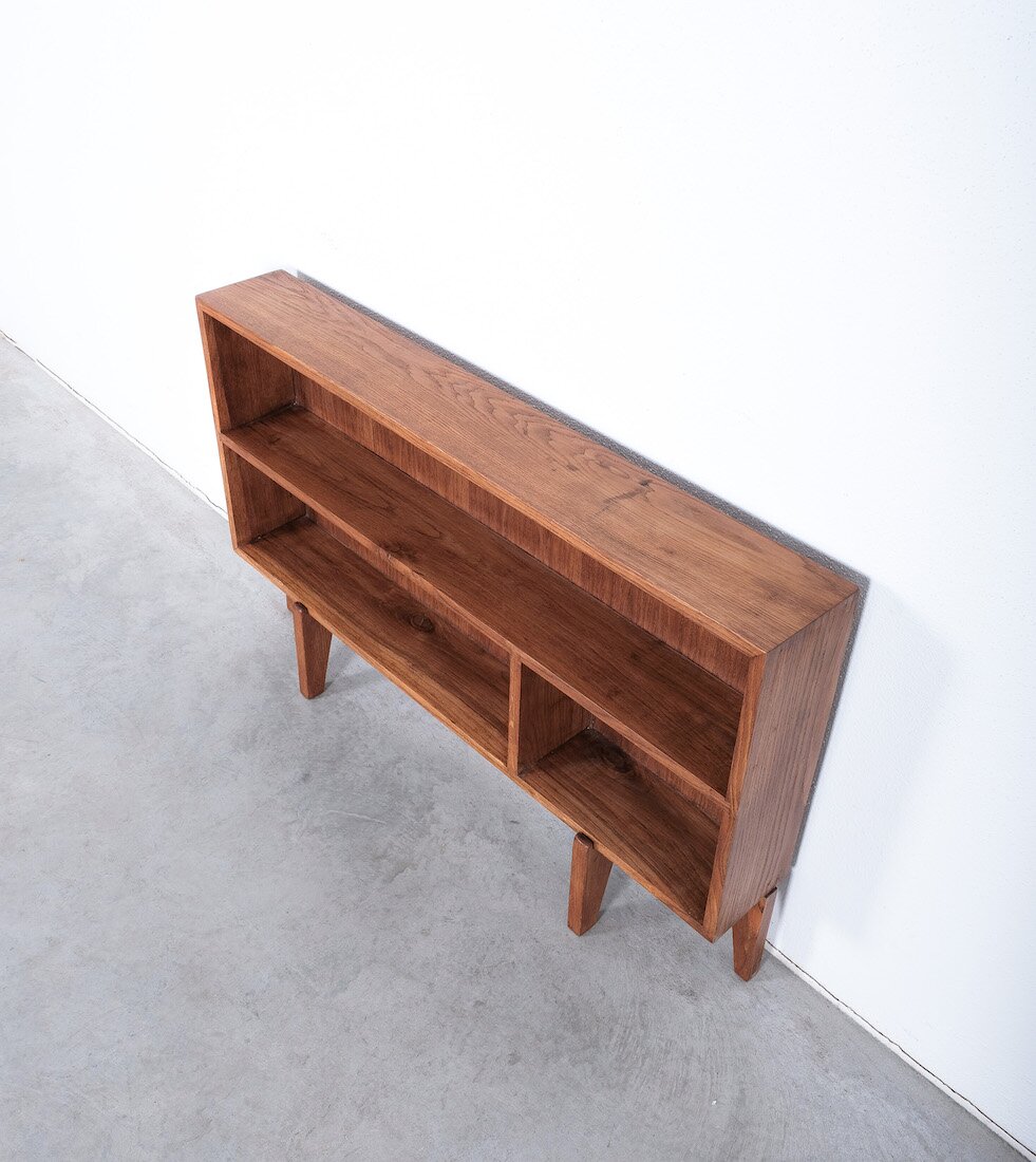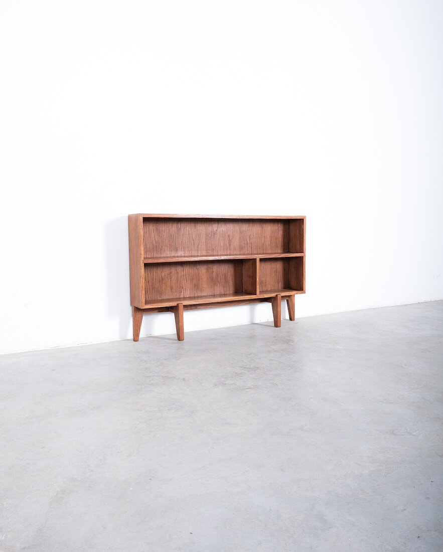 Measures: 45.8"(W) x 28.35" (H) x 7.1“ (D) Slender book-shelf from solid walnut wood, Mid-Century Modern.