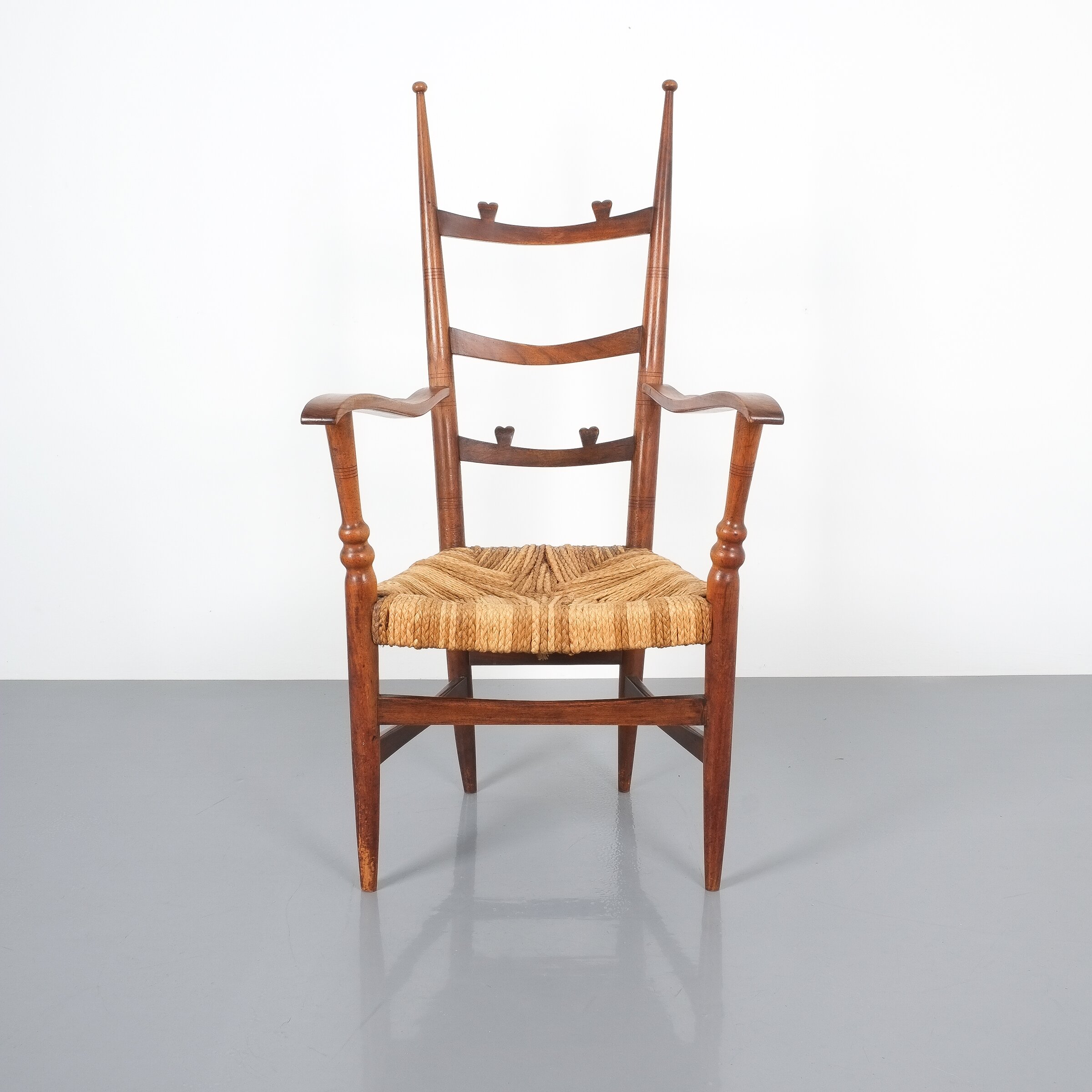 Ico Parisi Bergère Lounge Armchair Creme Bouclé Walnut, Italy, 1950.