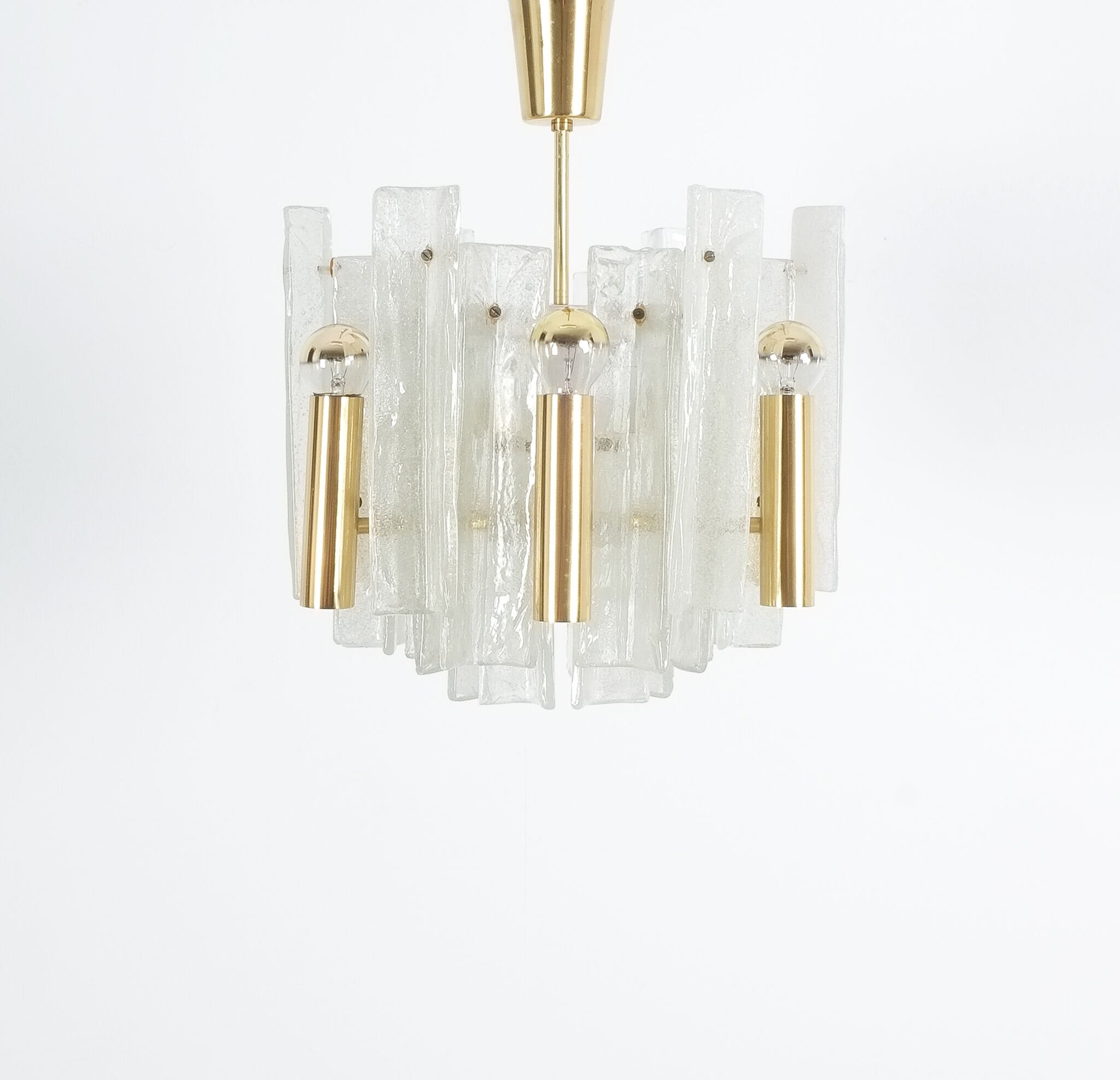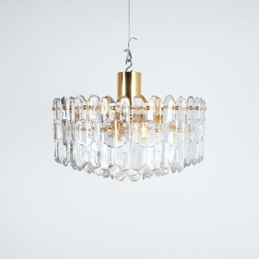 Kalmar Chandelier Semi Flush Mounts Pair Lipizza Glass Lamps, Austria
