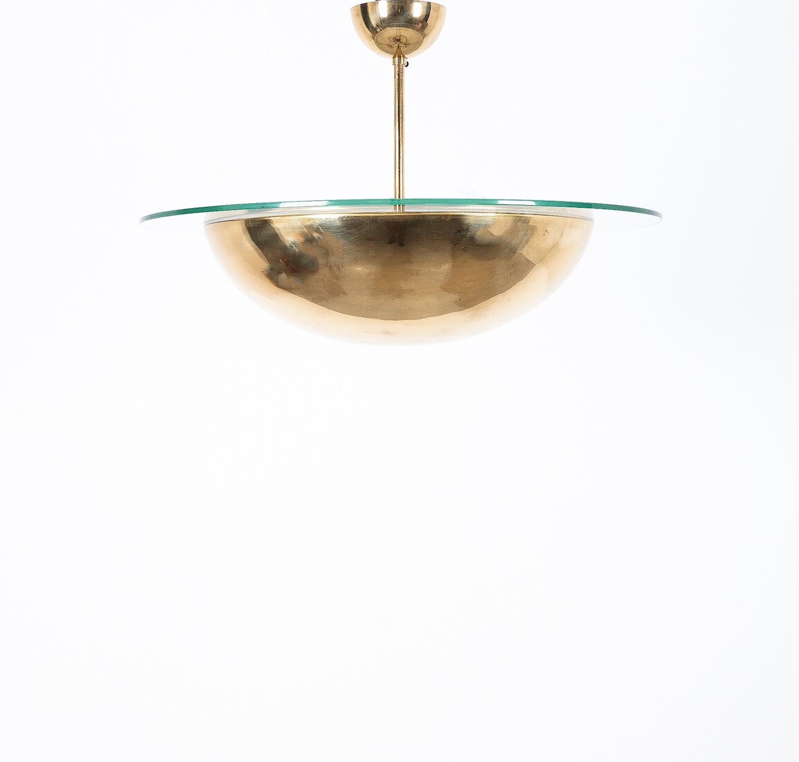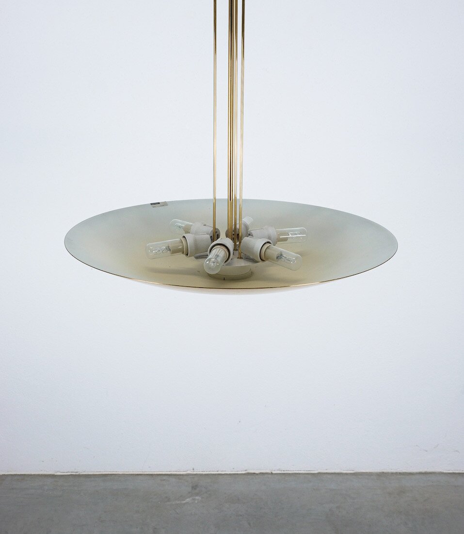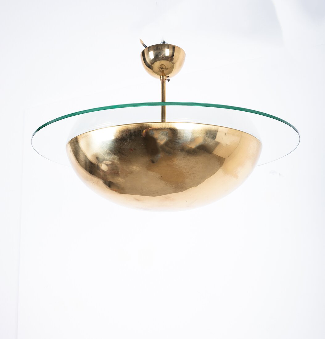 Kalmar J.T. Kalmar Mid Century Brass Glass Dome Ceiling Light, Austria