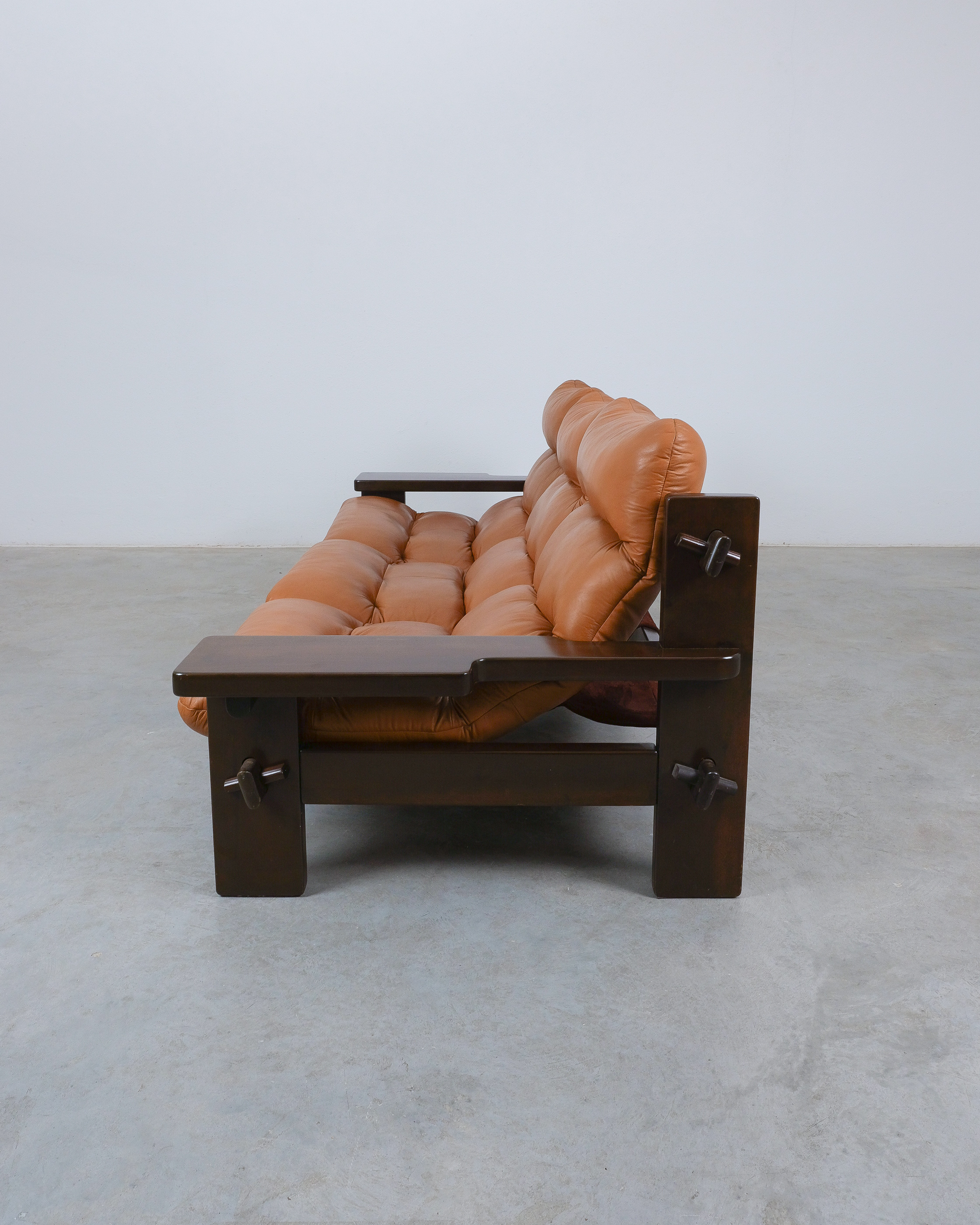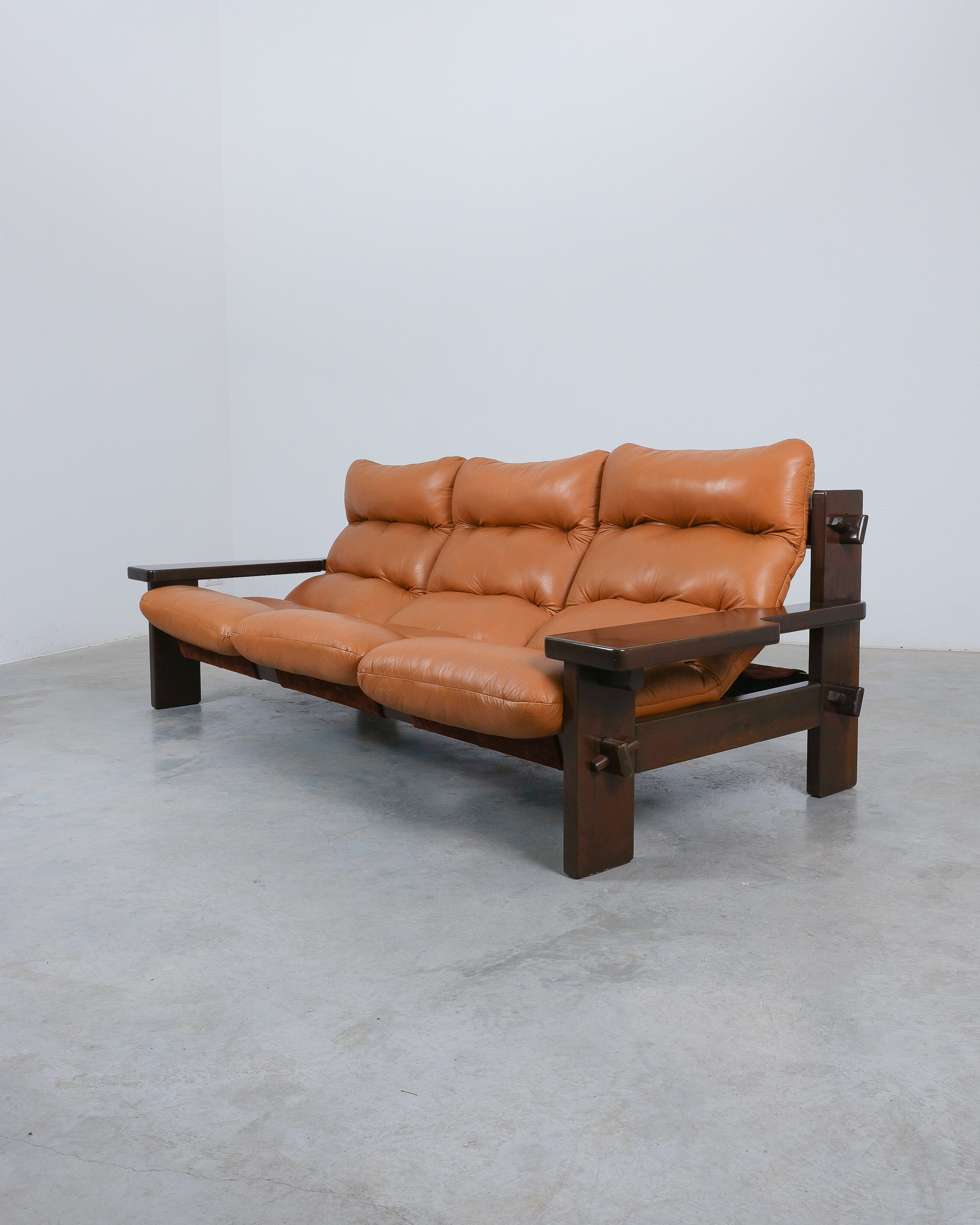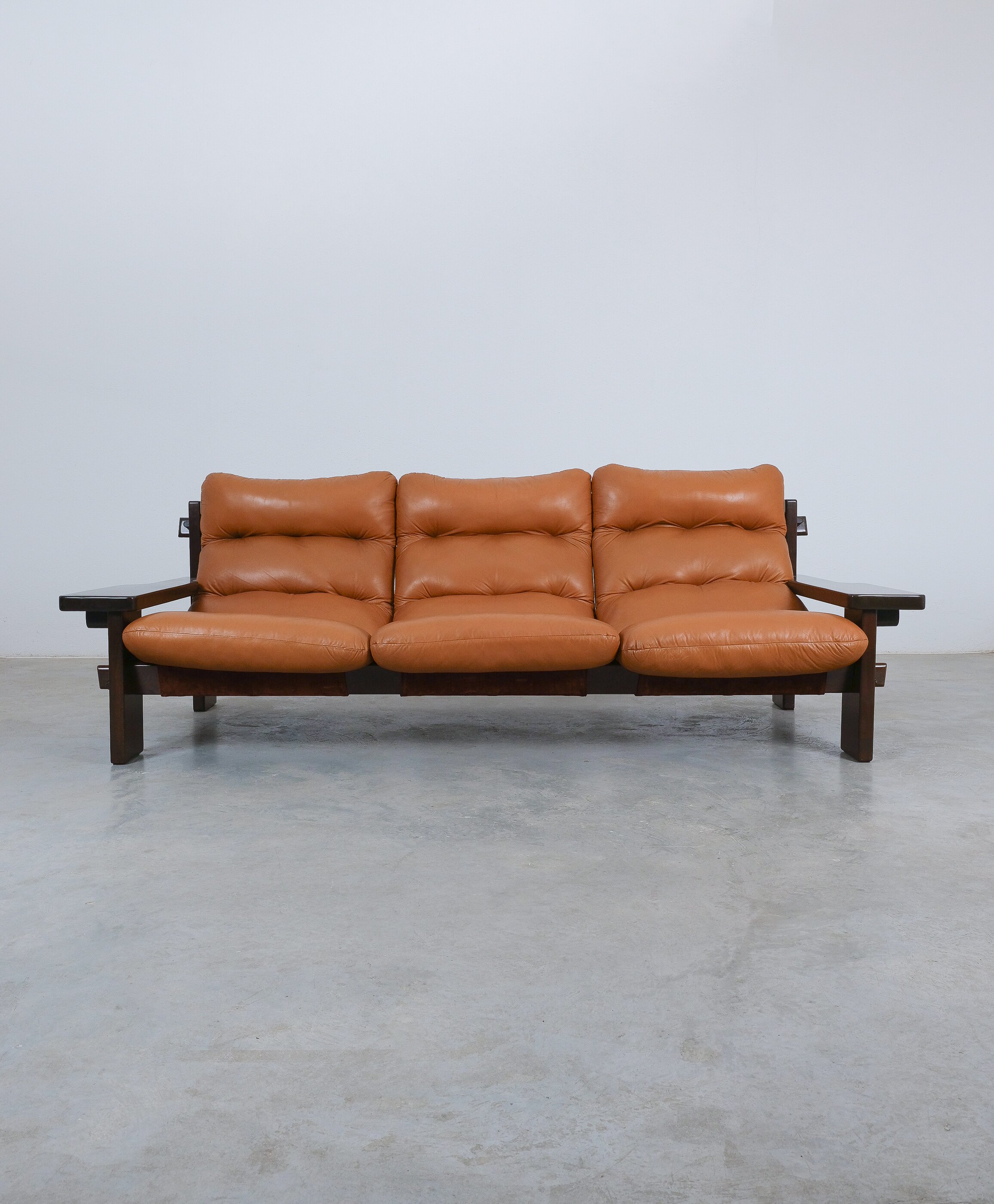 Paddel sofa by Jean Gillon for Probel, in leather and wood