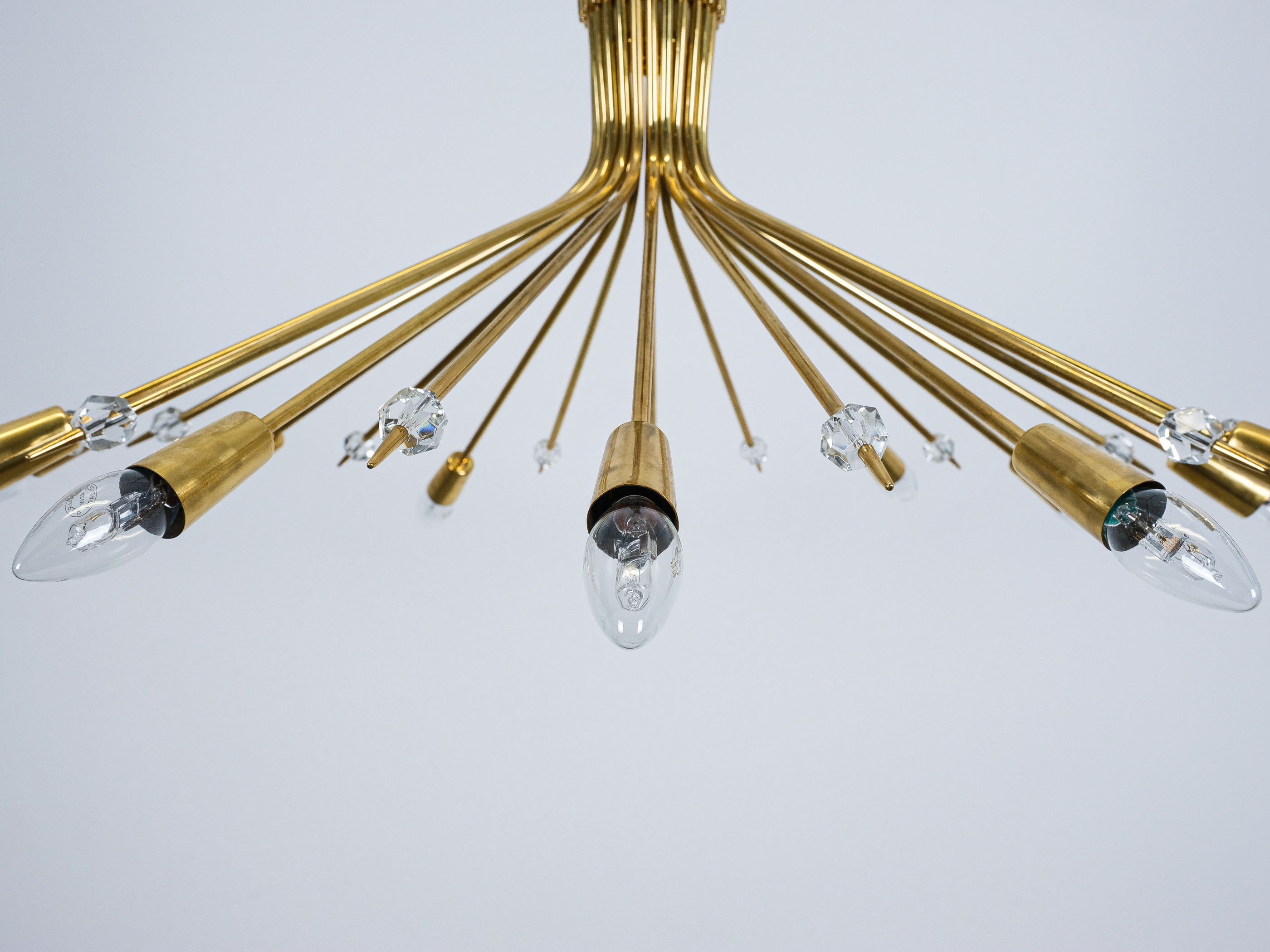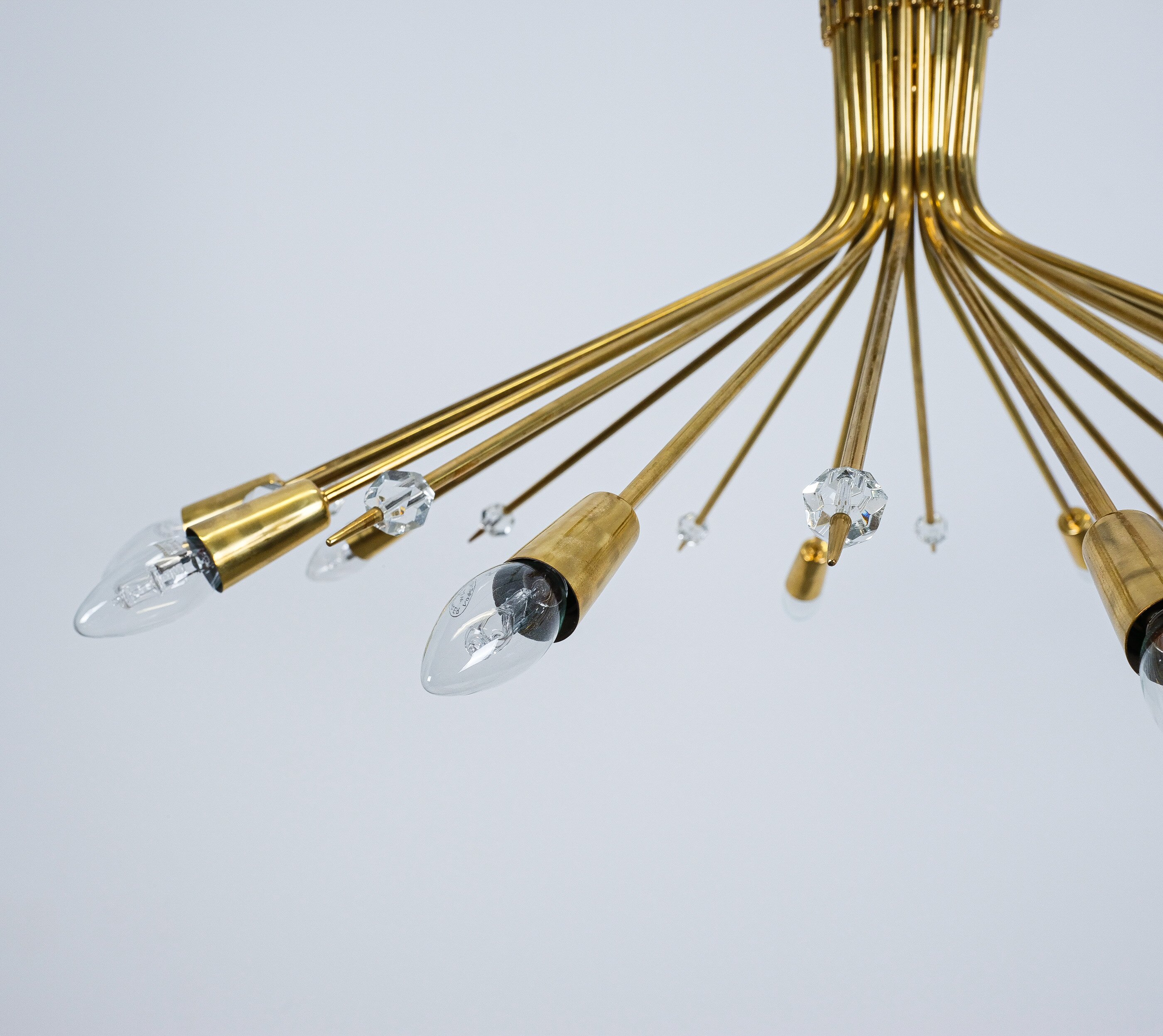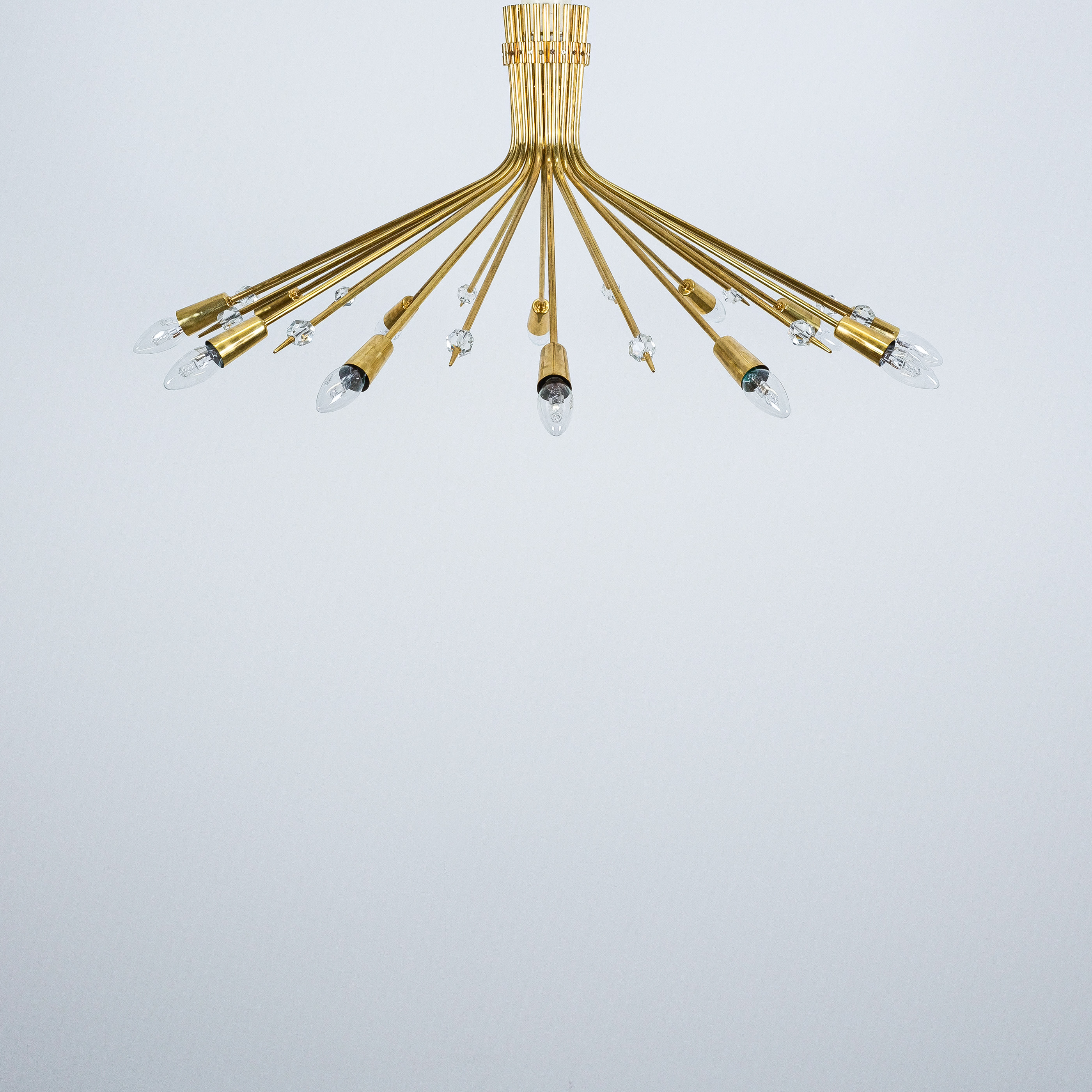Sputnik Refurbished Mid-Century Brass Multicolor Chandelier, Italy 1950