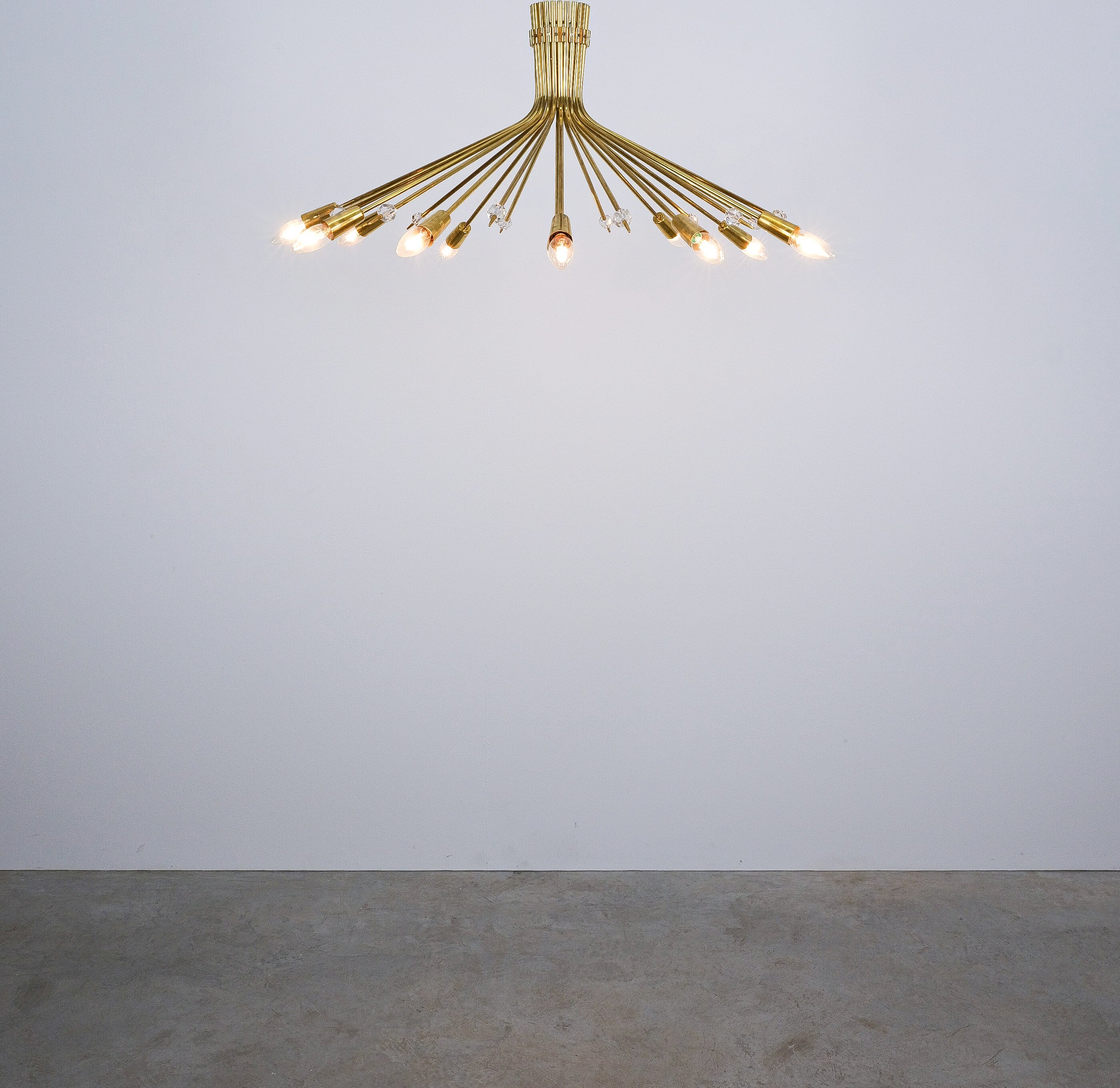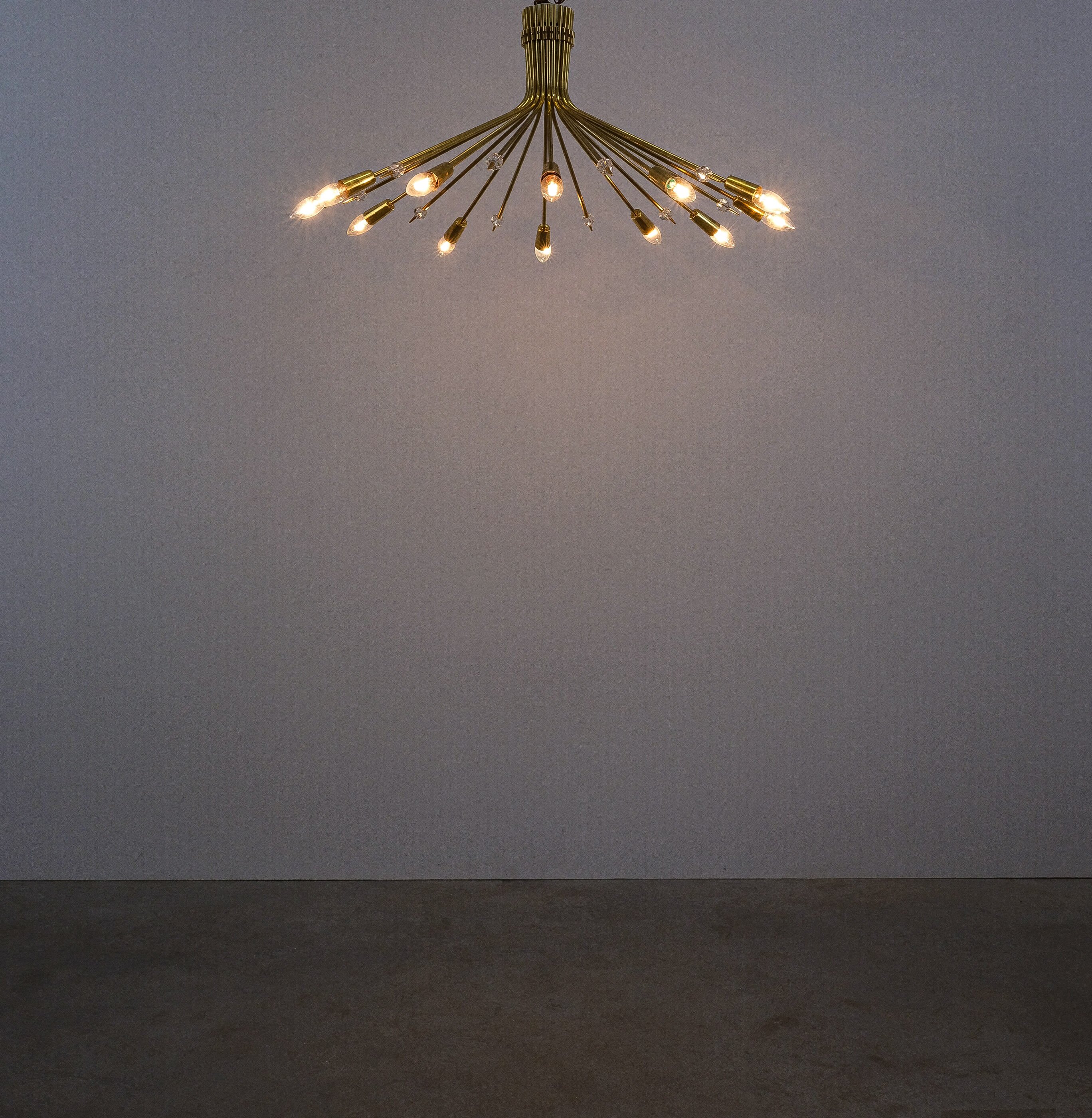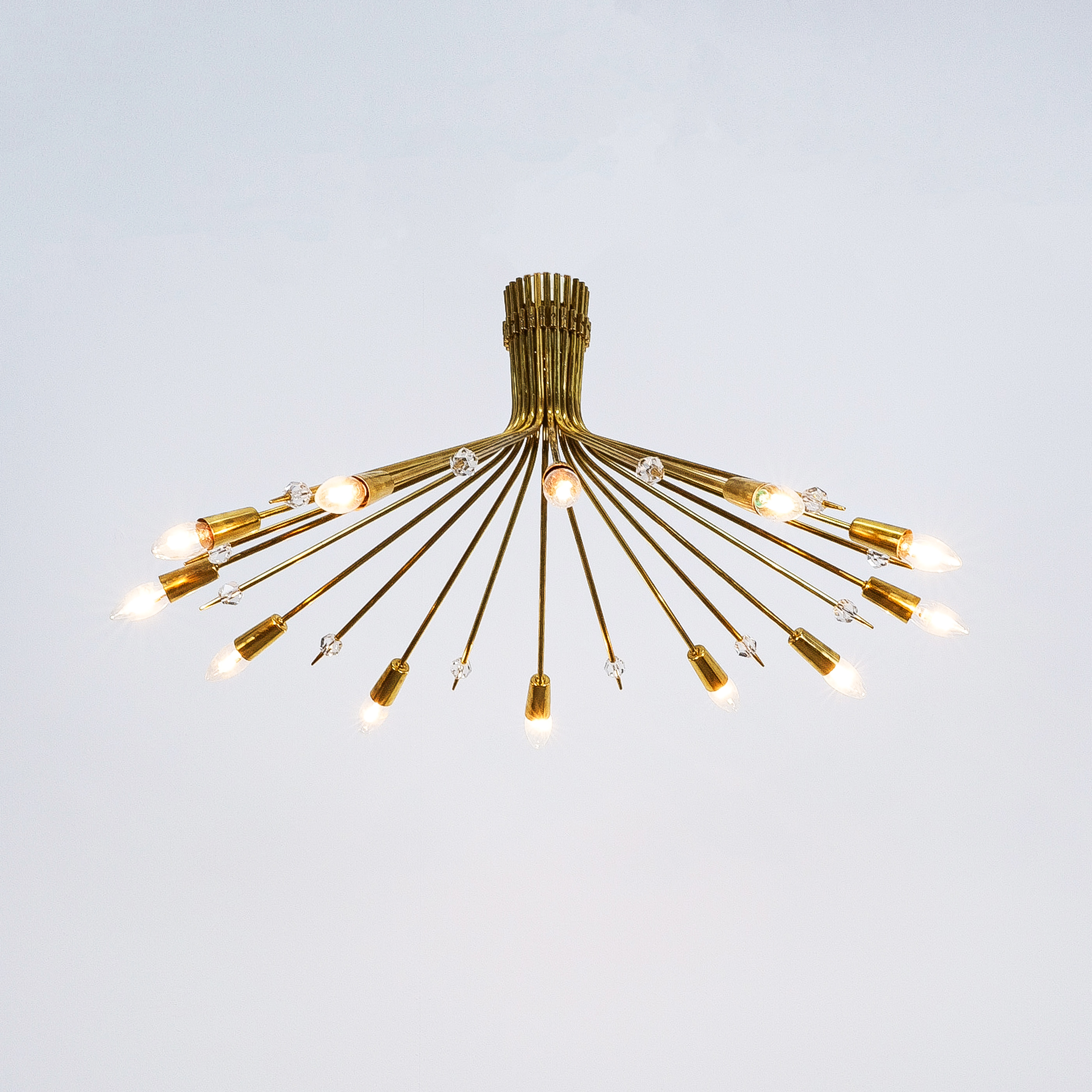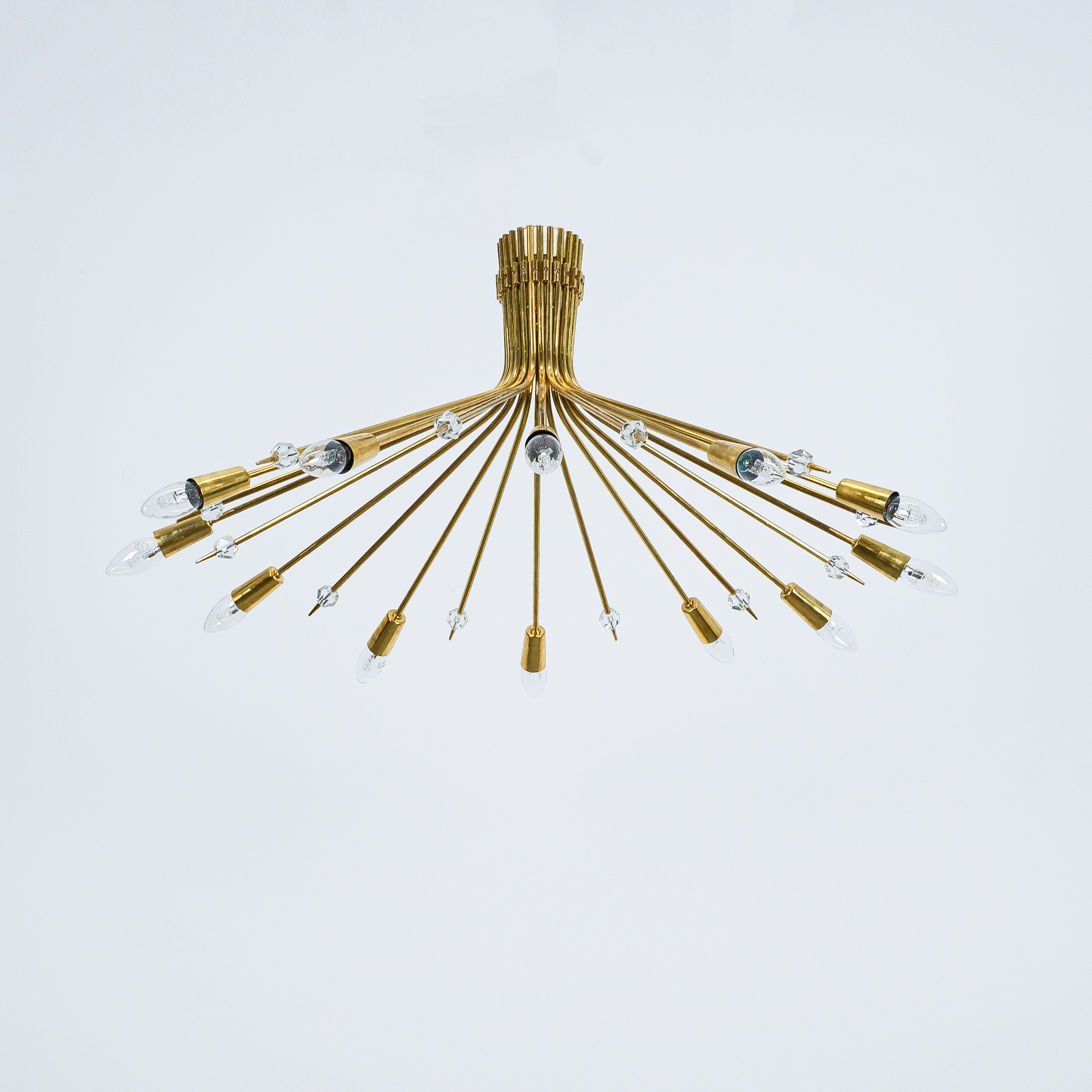 Sputnik Refurbished Mid-Century Brass Multicolor Chandelier, Italy 1950