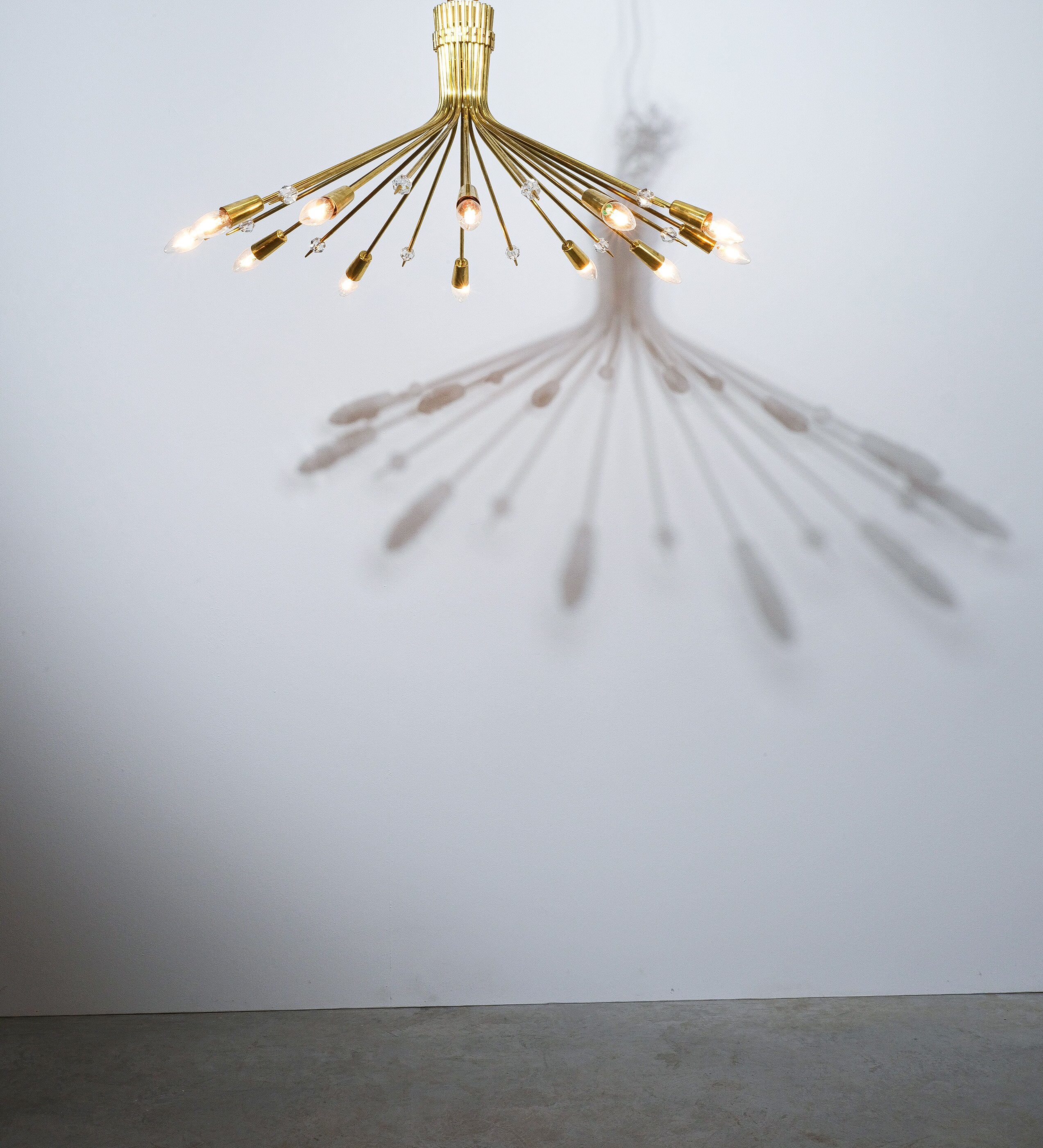 J.T. Kalmar Sputnik Glass and Brass Chandelier
