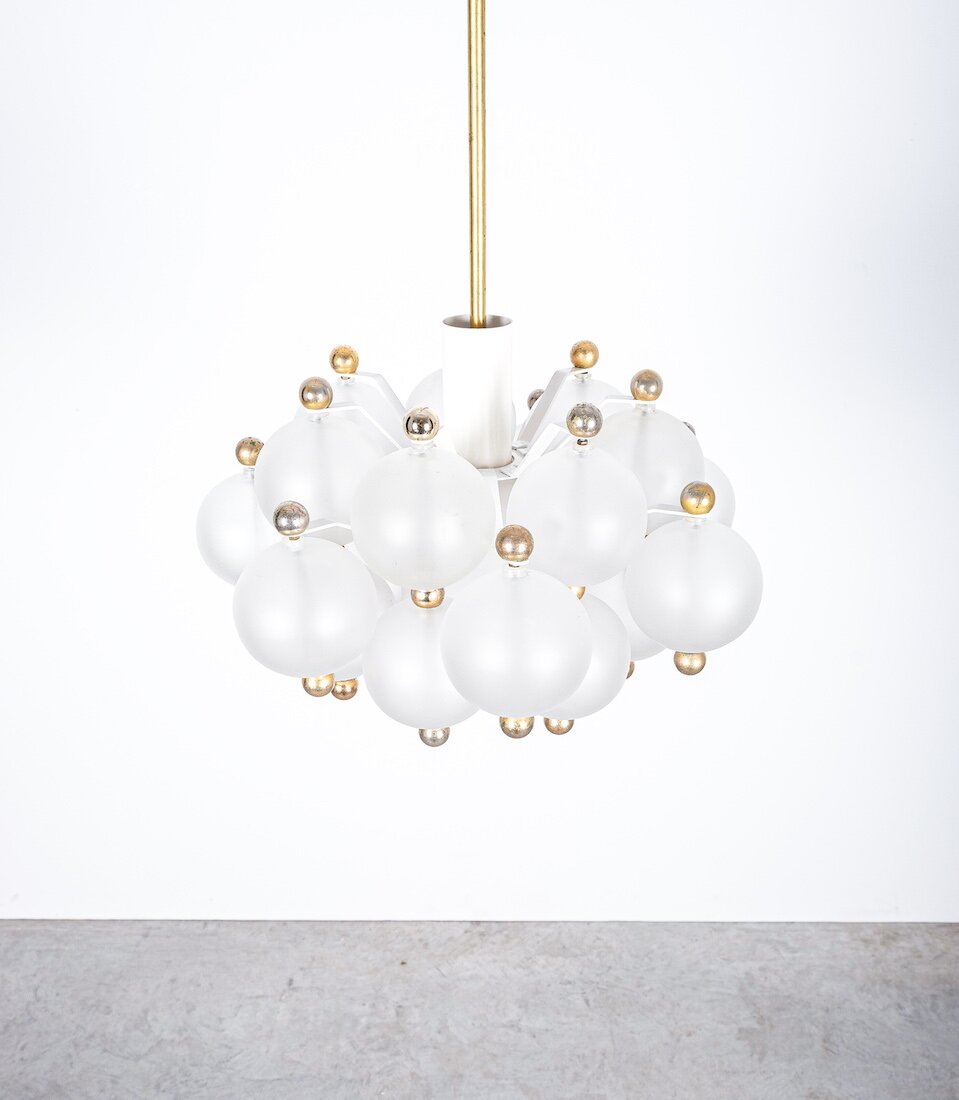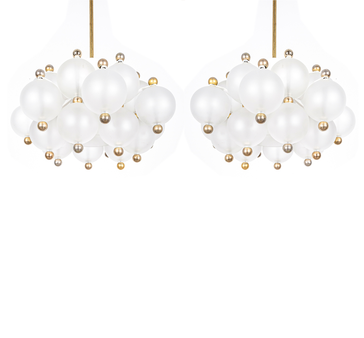 Pair of Kinkeldey satin ball chandeliers, Germany circa 1970-1980.