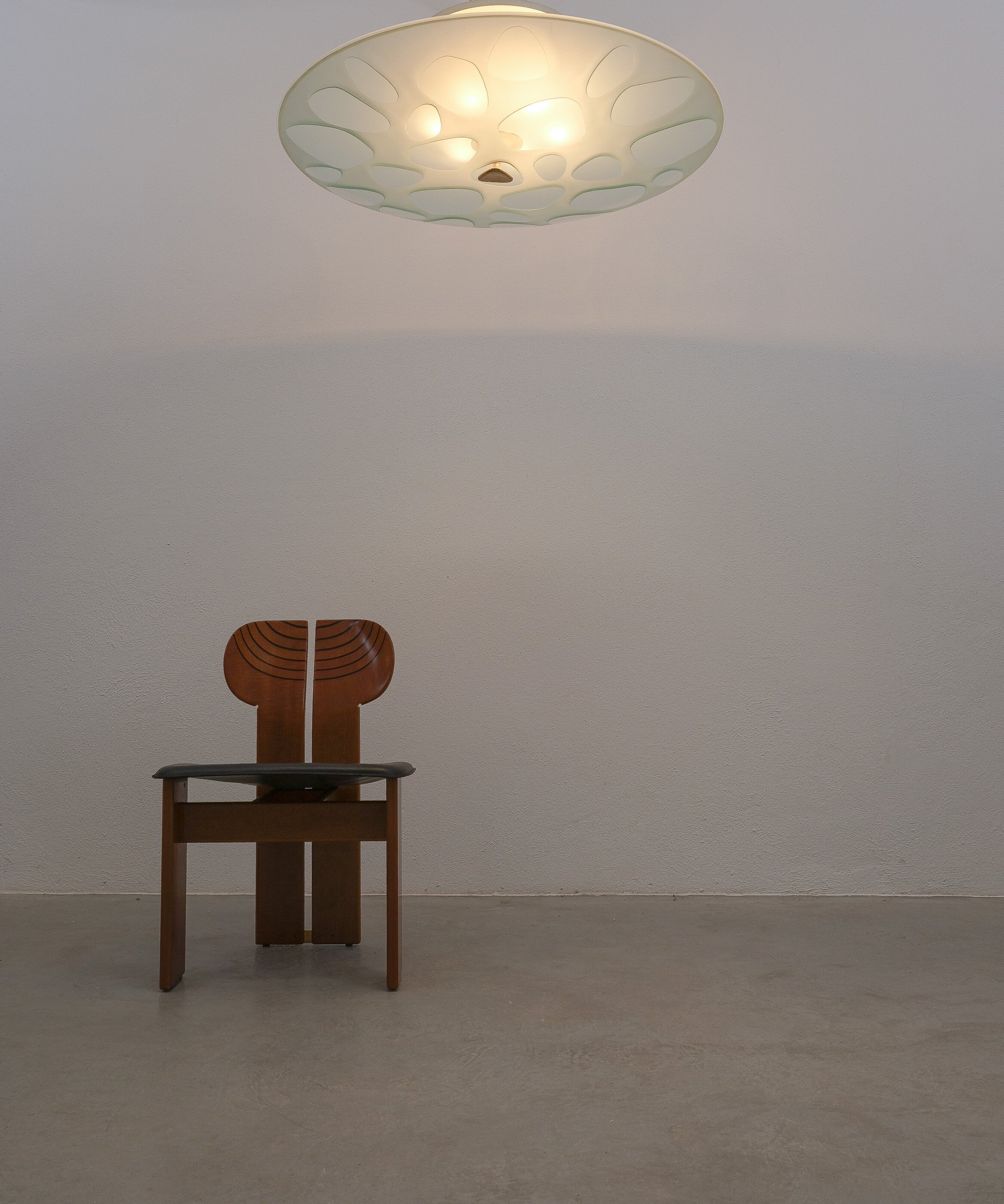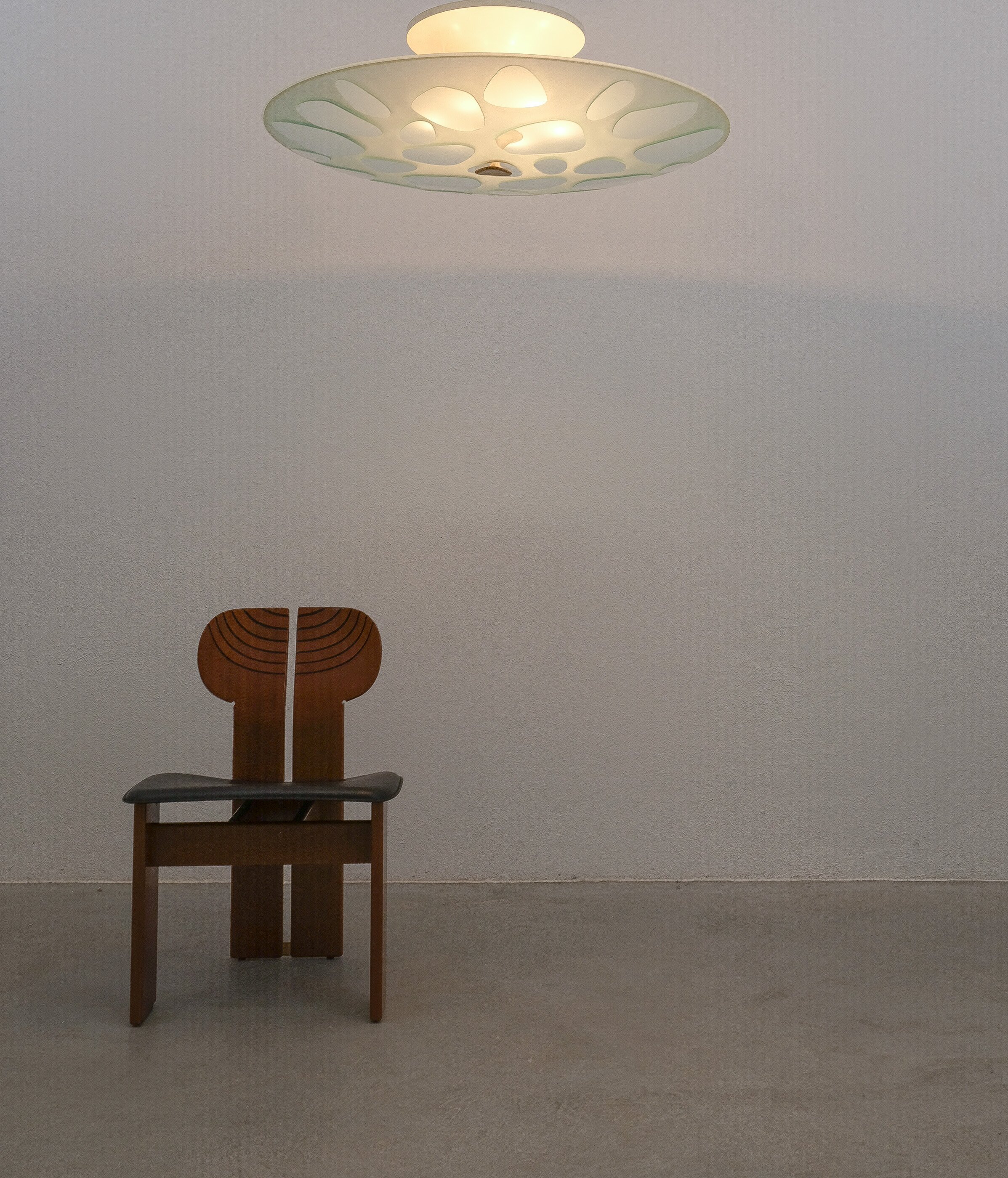 Very rare 36.6" semi glass flush-mount with deep incisions, original Max Ingrand for Fontana Arte, Milano circa 1955 -we now have an identical pair available, priced individually;