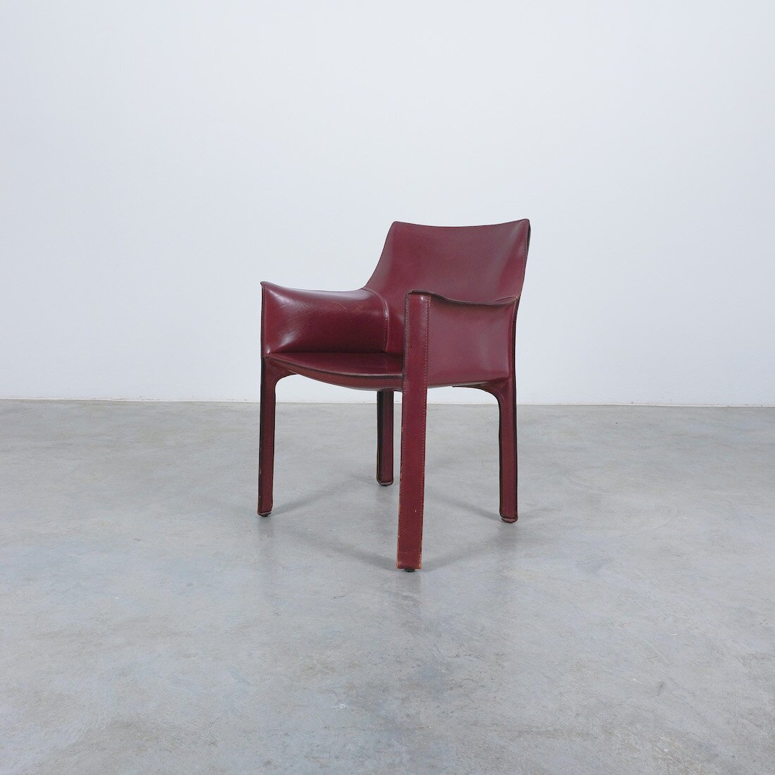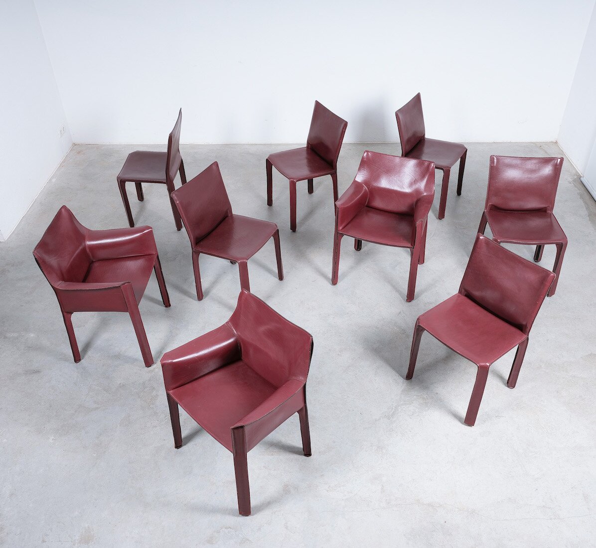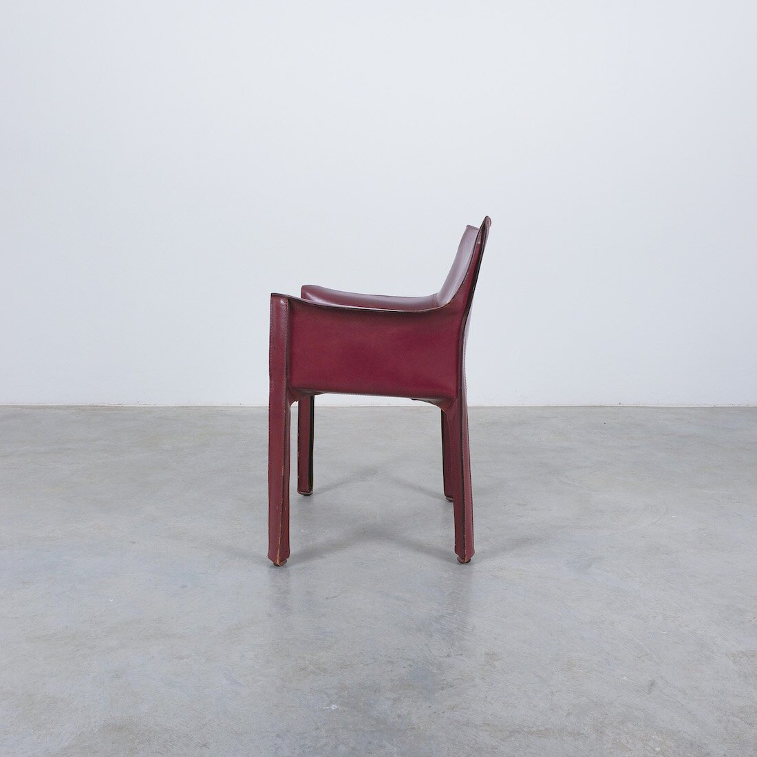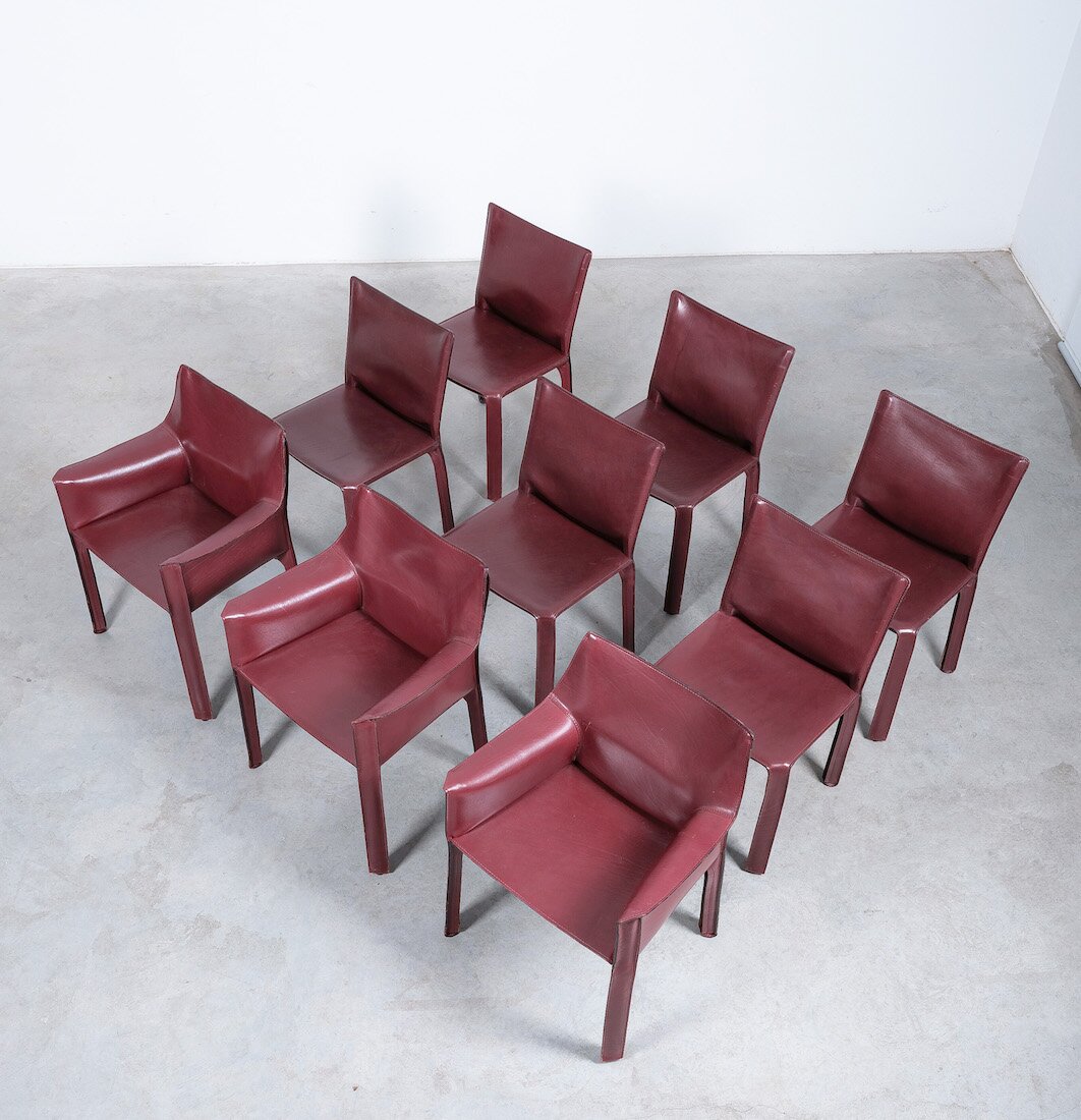 Mario Bellini Cassina Cab 413 Bordeaux Red Leather Dining Chairs, 1980 for Cassina-