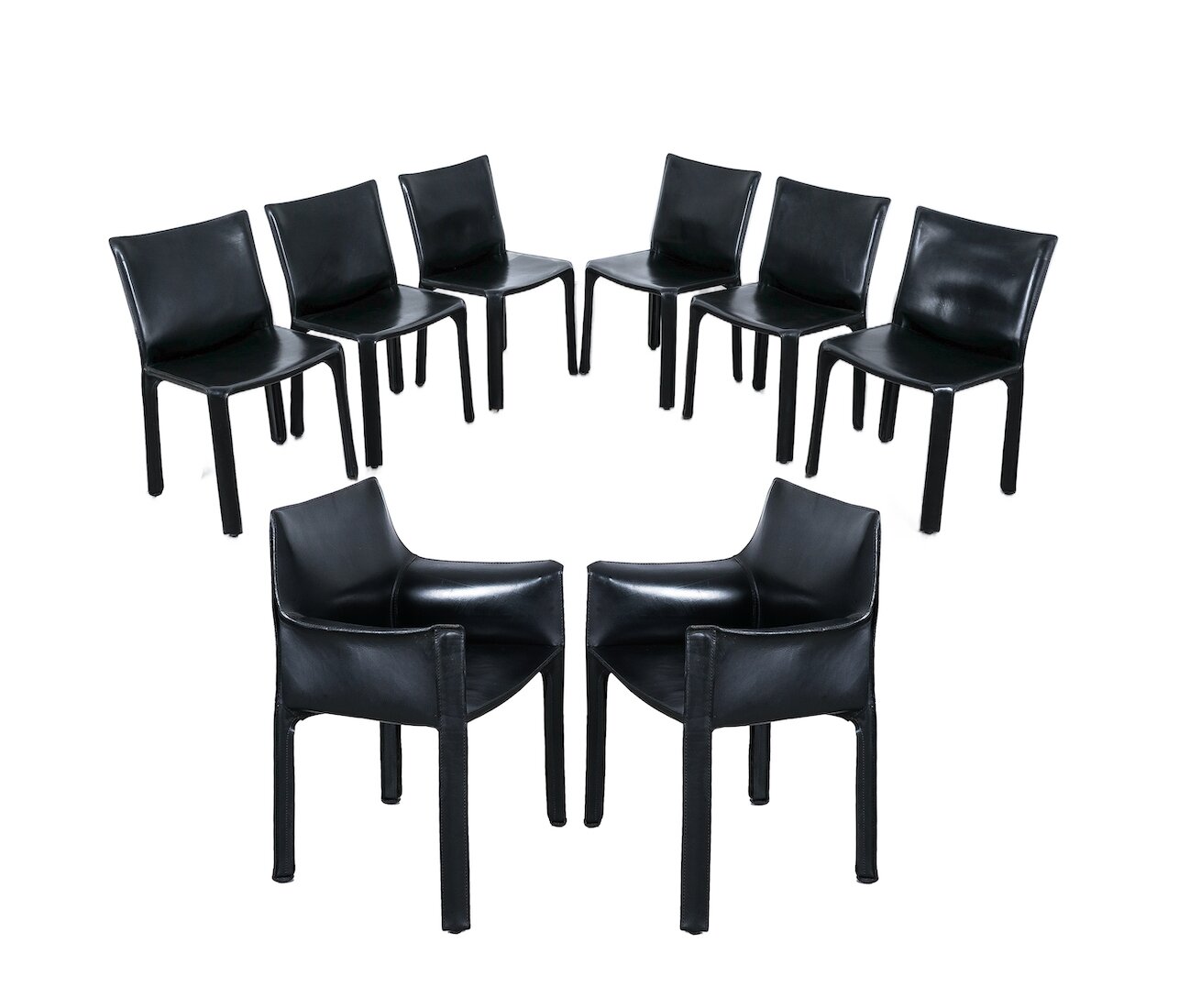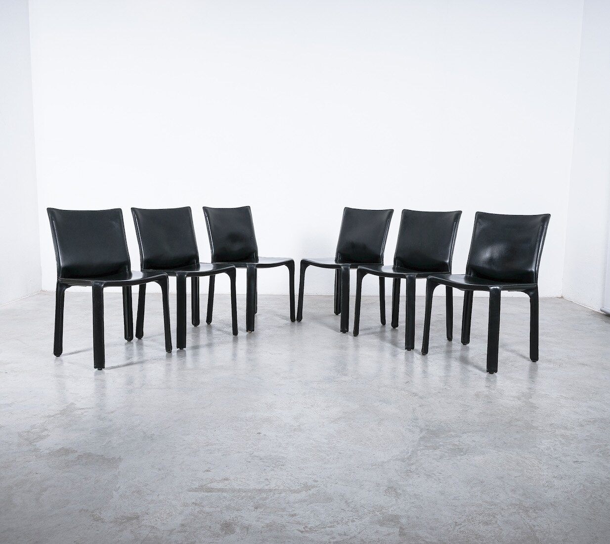 Mario Bellini Cassina Cab 412 + cab 413- 8 Black Leather Dining Chairs, 1980