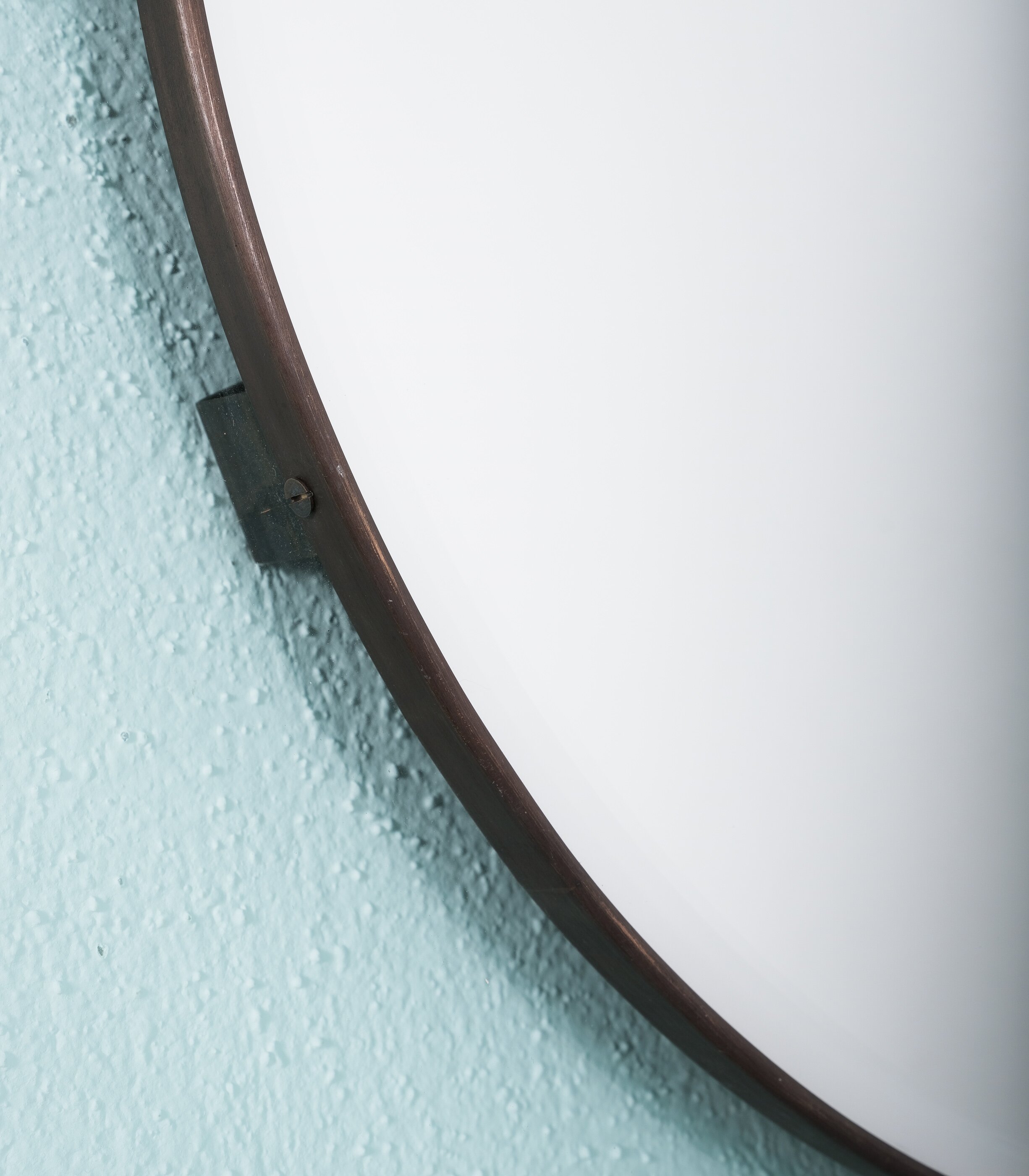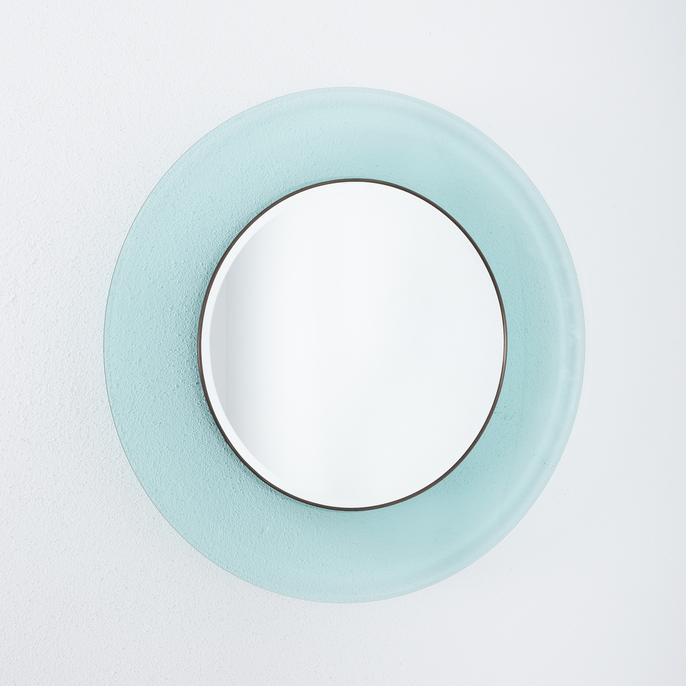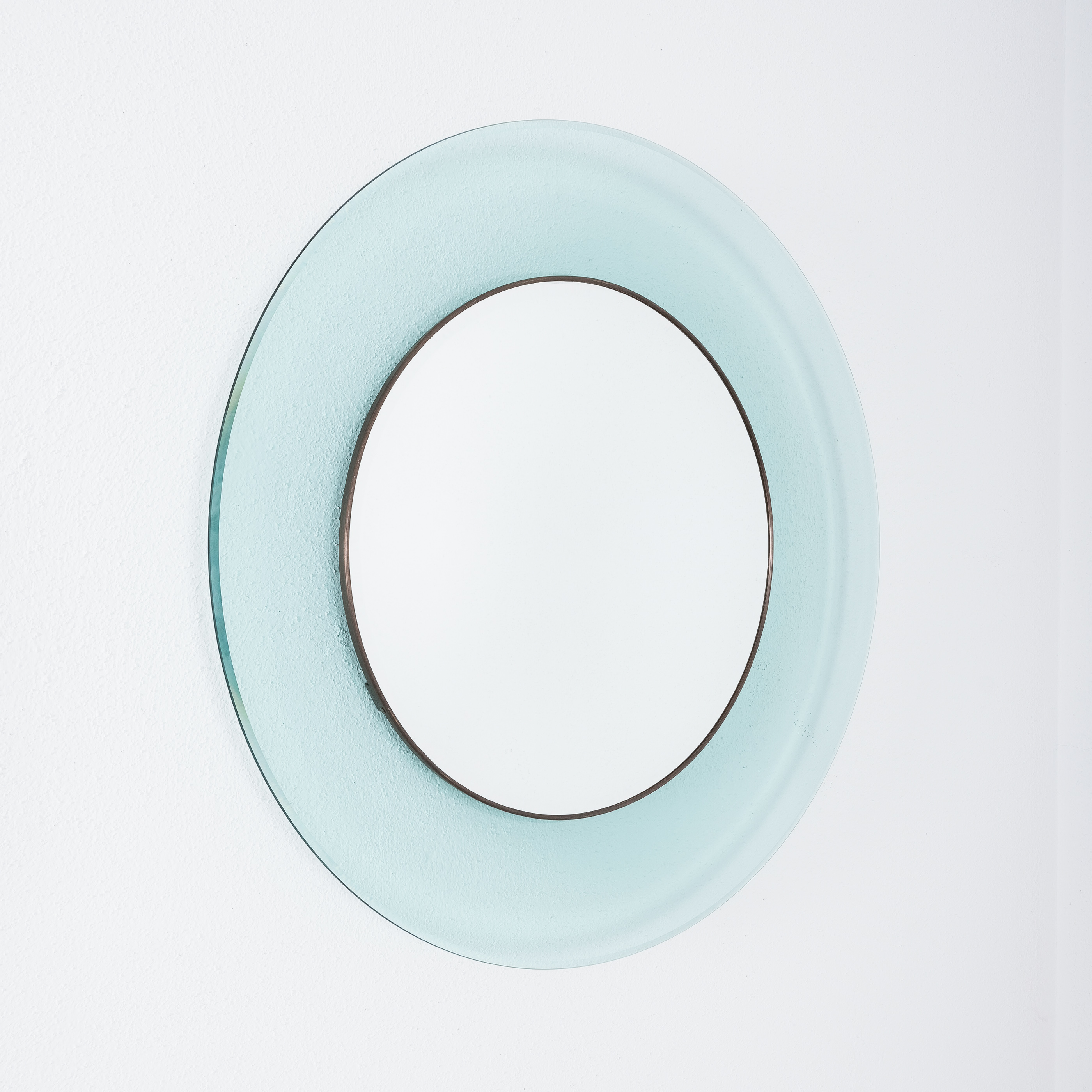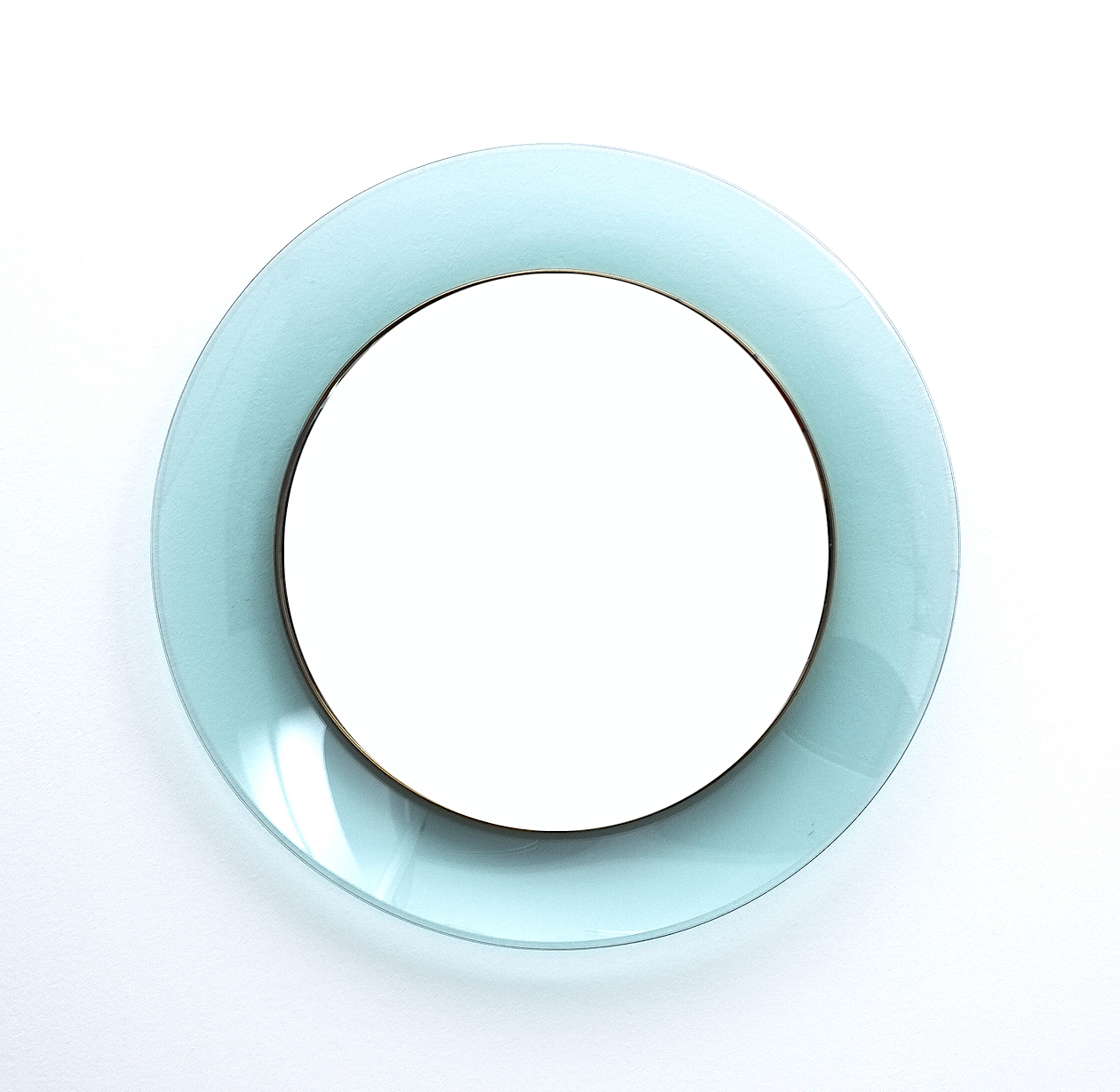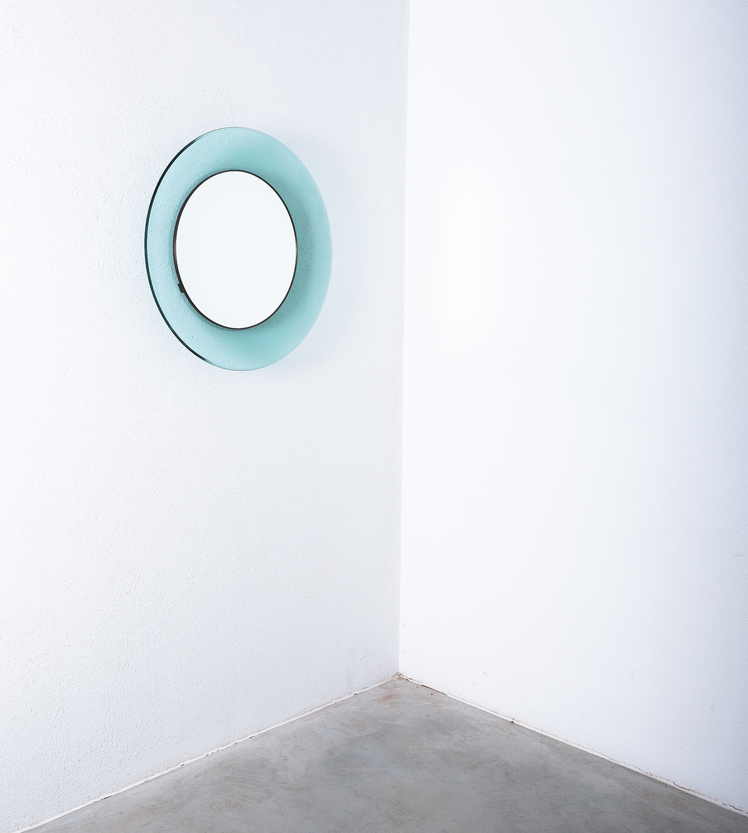 Round Blue Mirror Fontana Arte Model 1699, Mid Century Italy