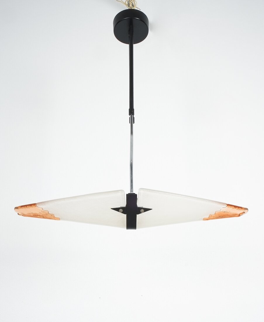 Memphis Style Postmodern Rhombus Glass Lamp Chandelier, Italy