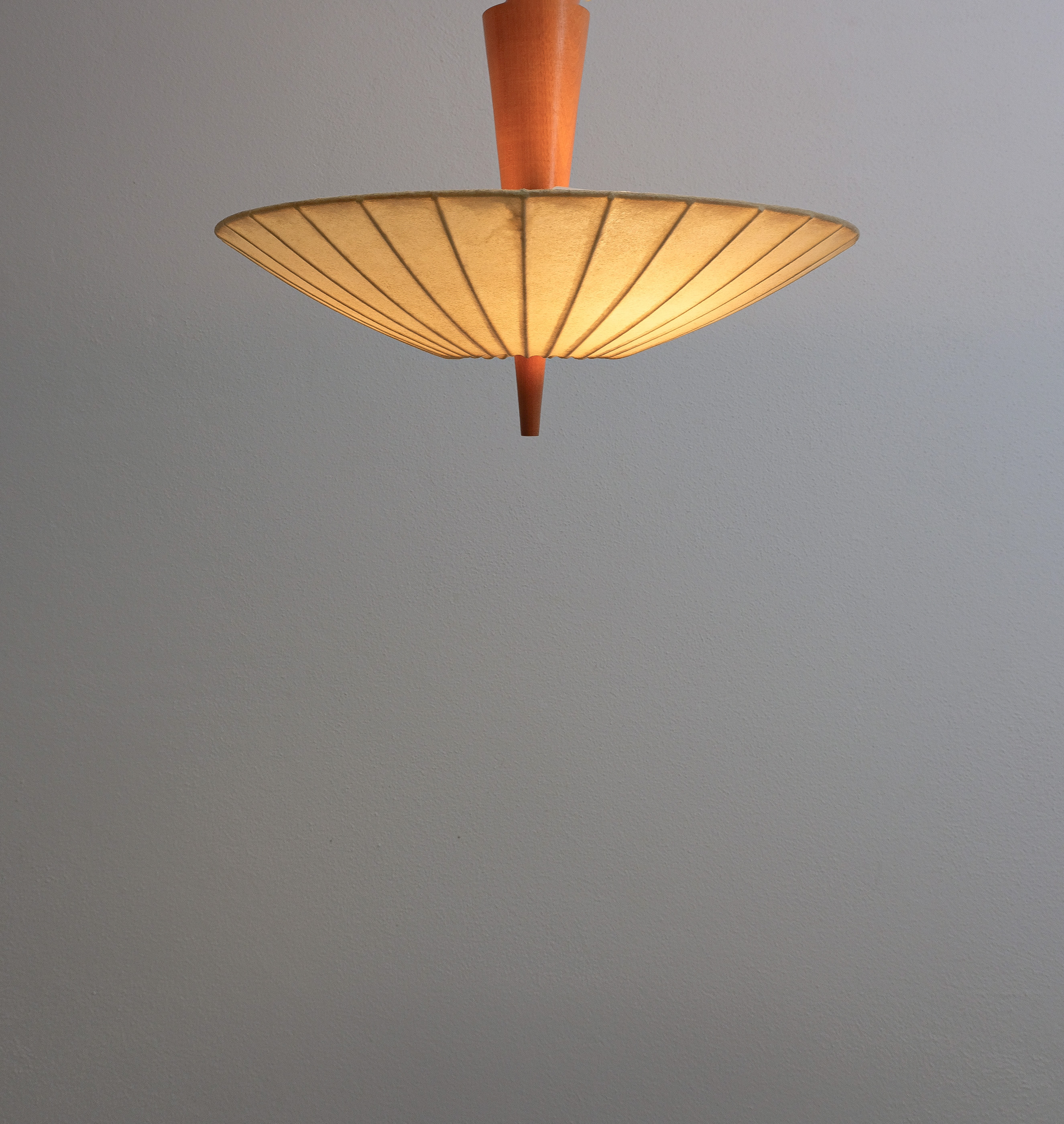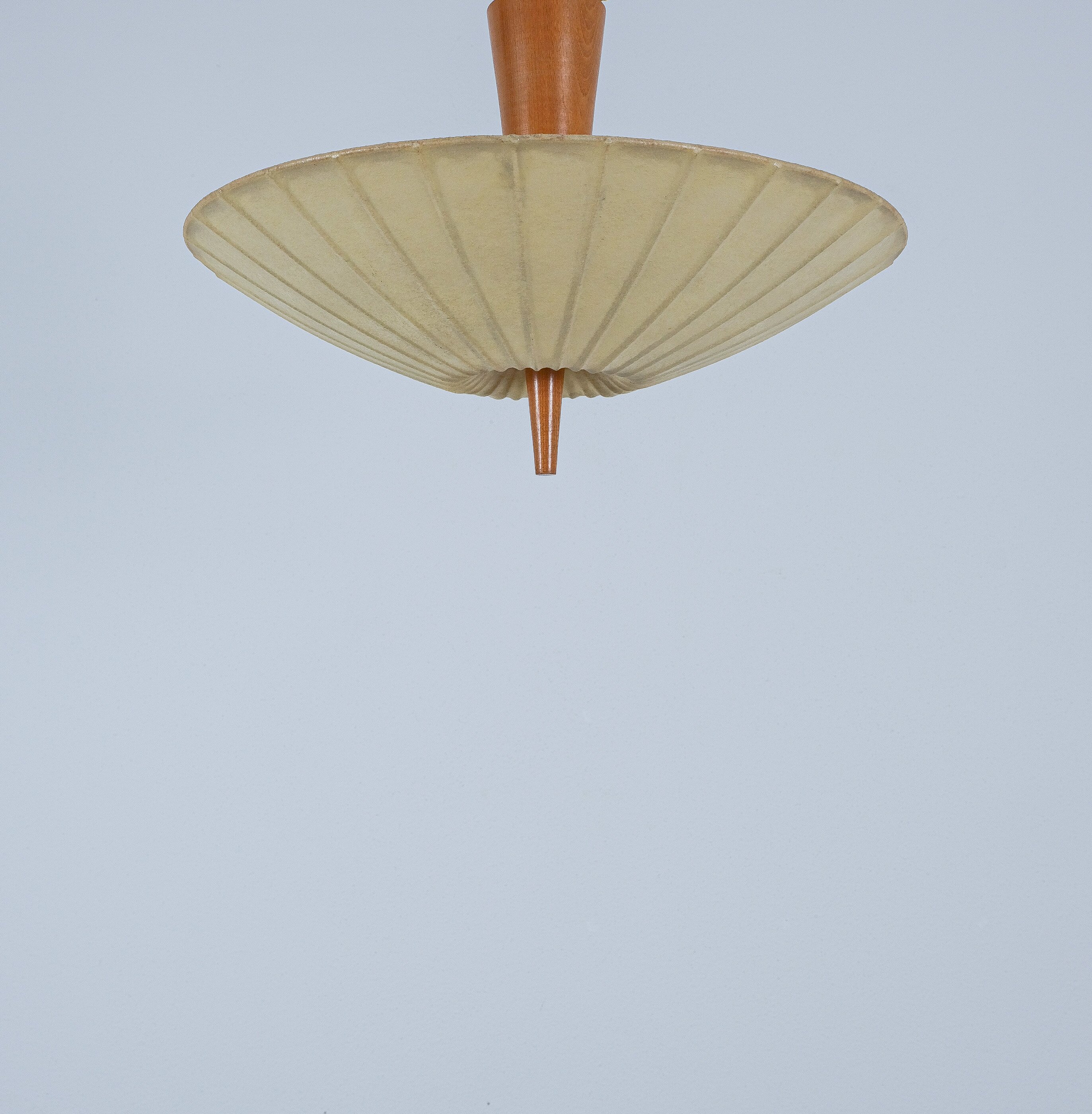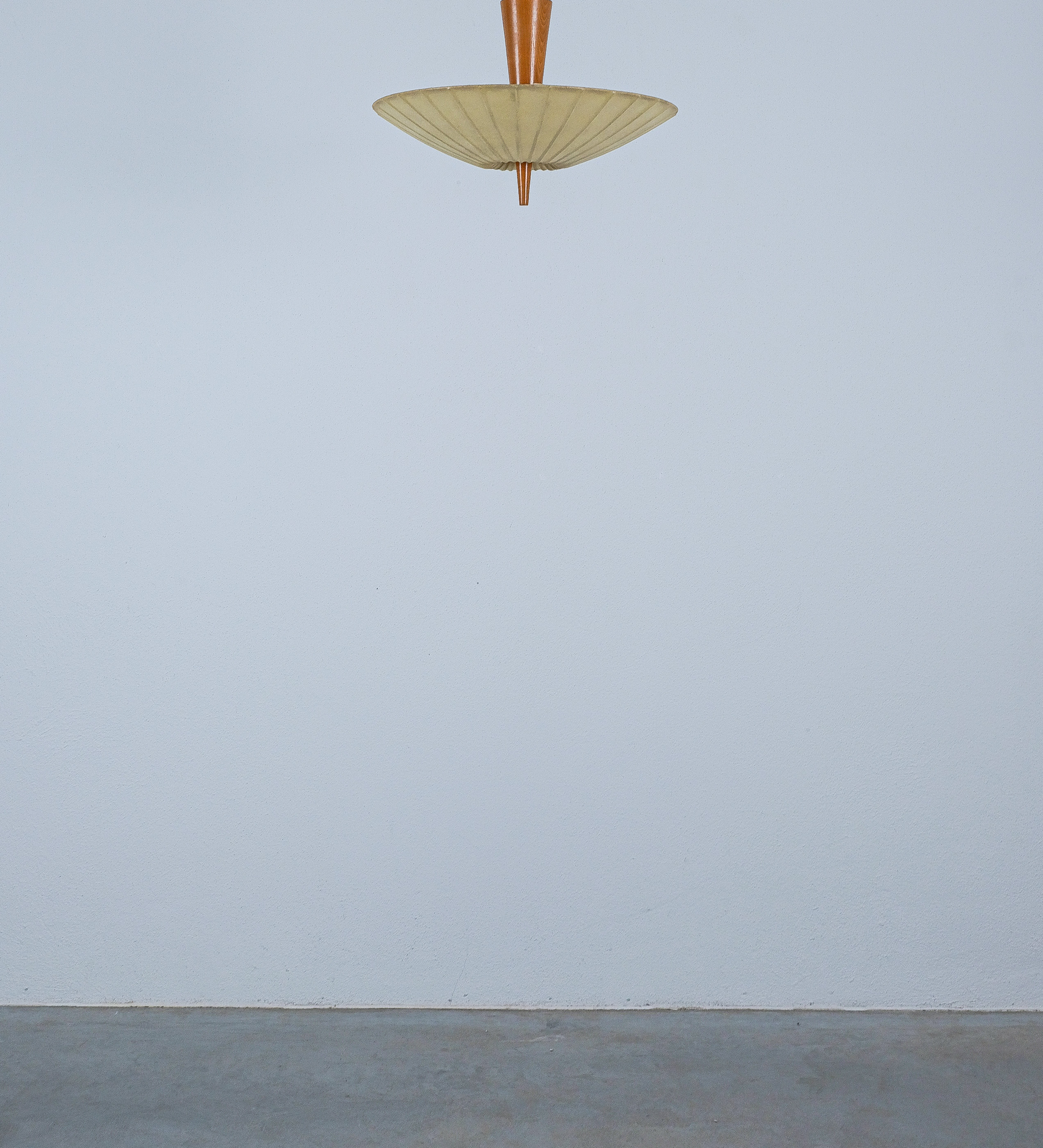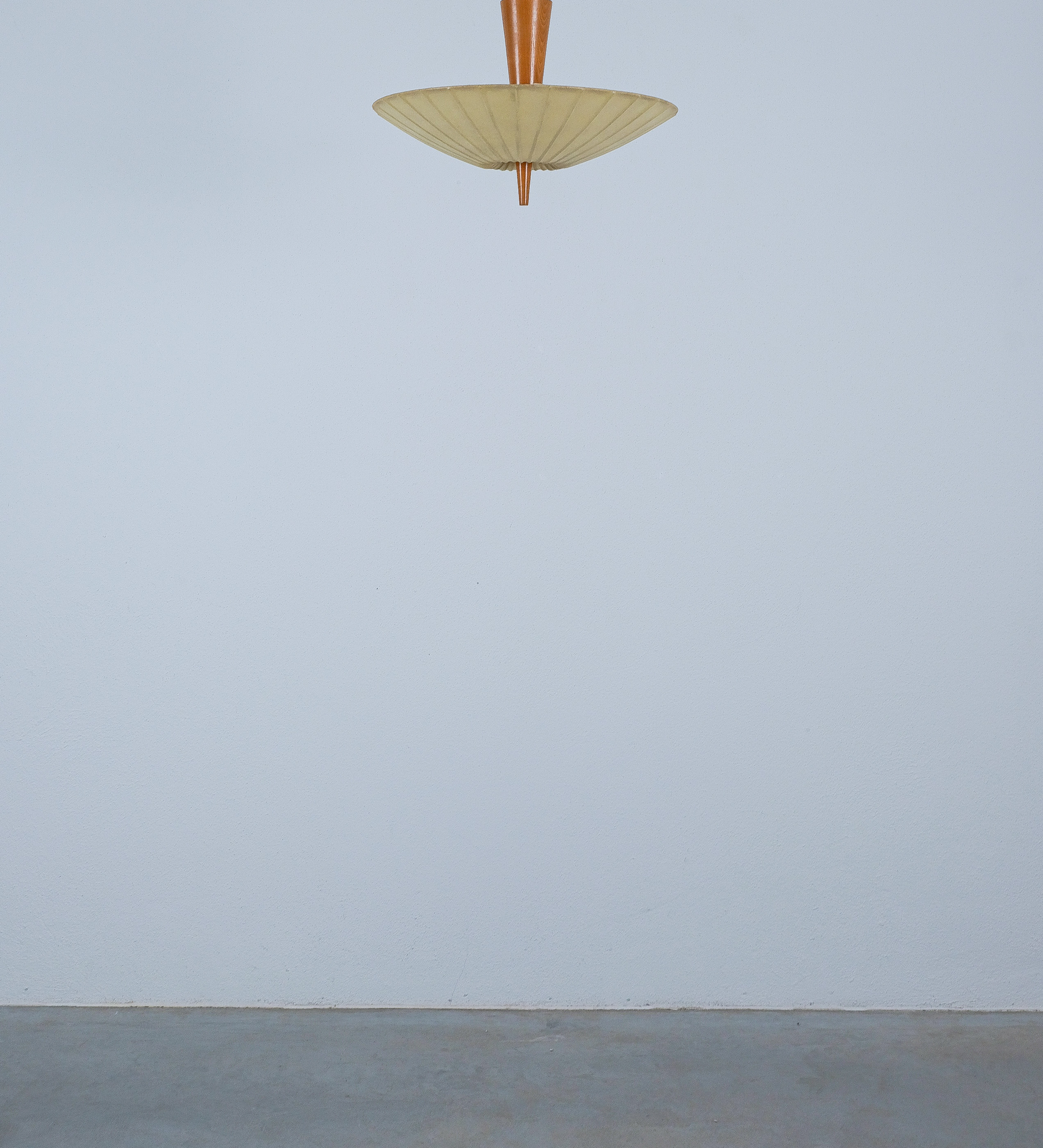 Midcentury Resin Cocoon Flush Mount, Beech Wood Stem, Italy 1960
