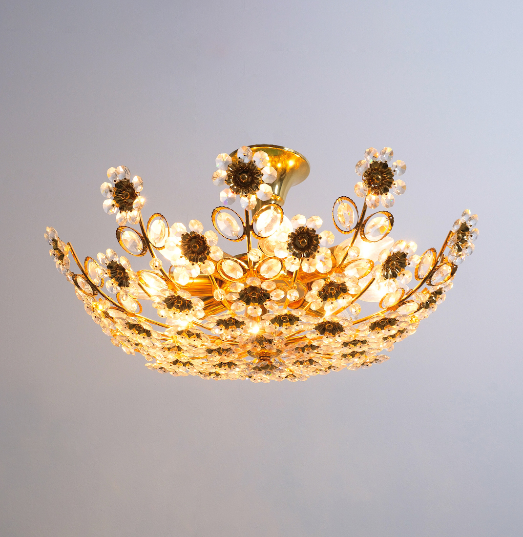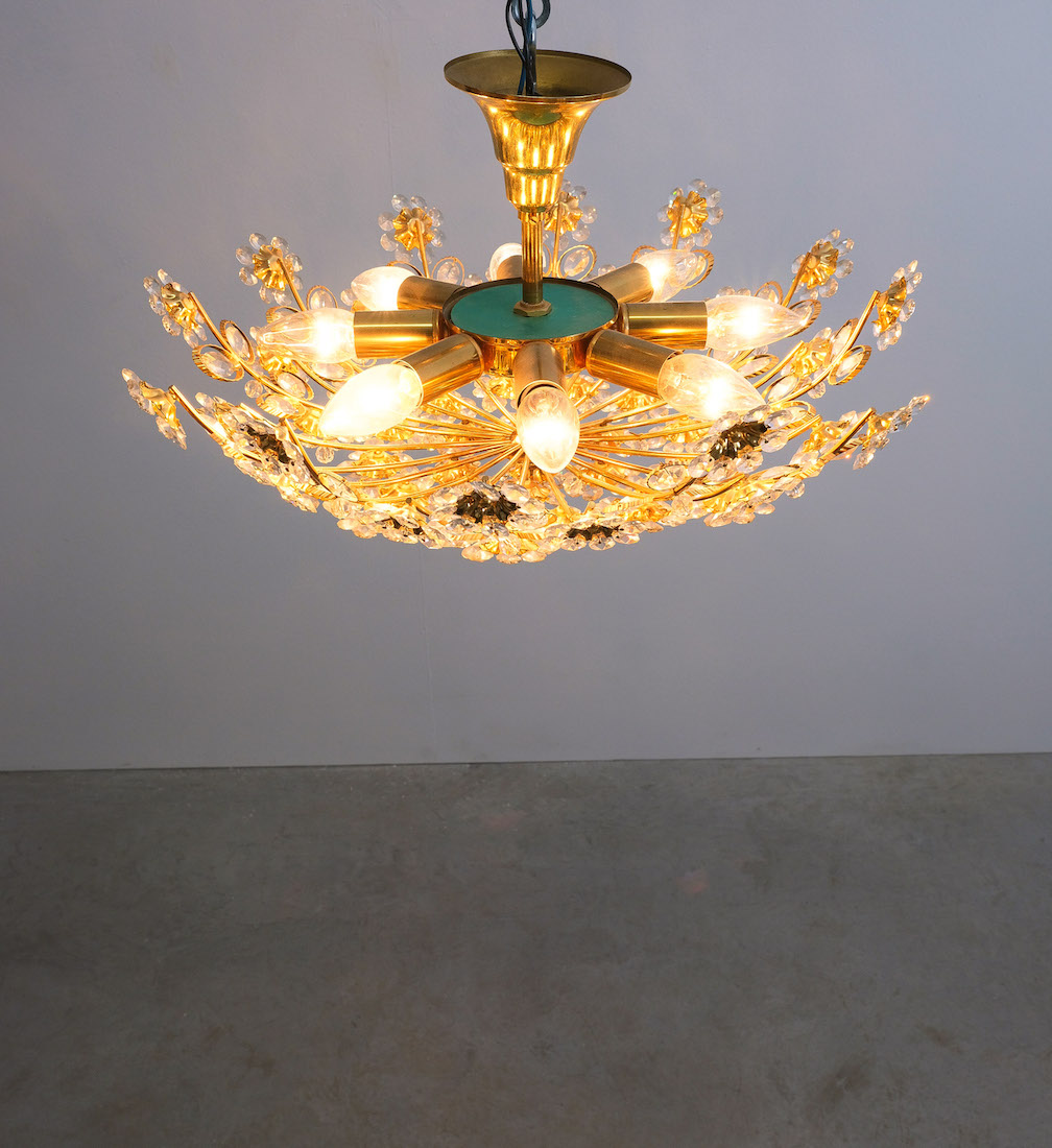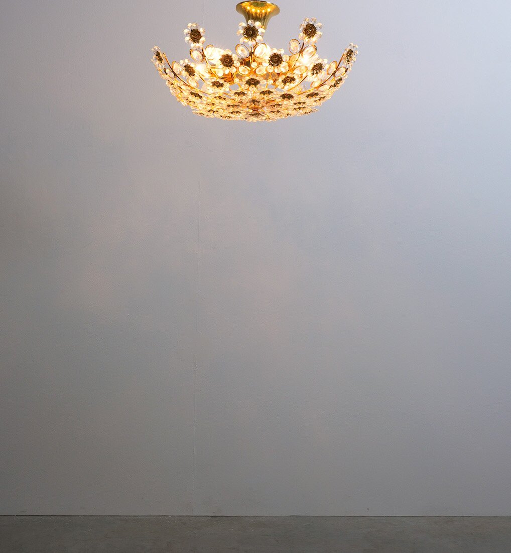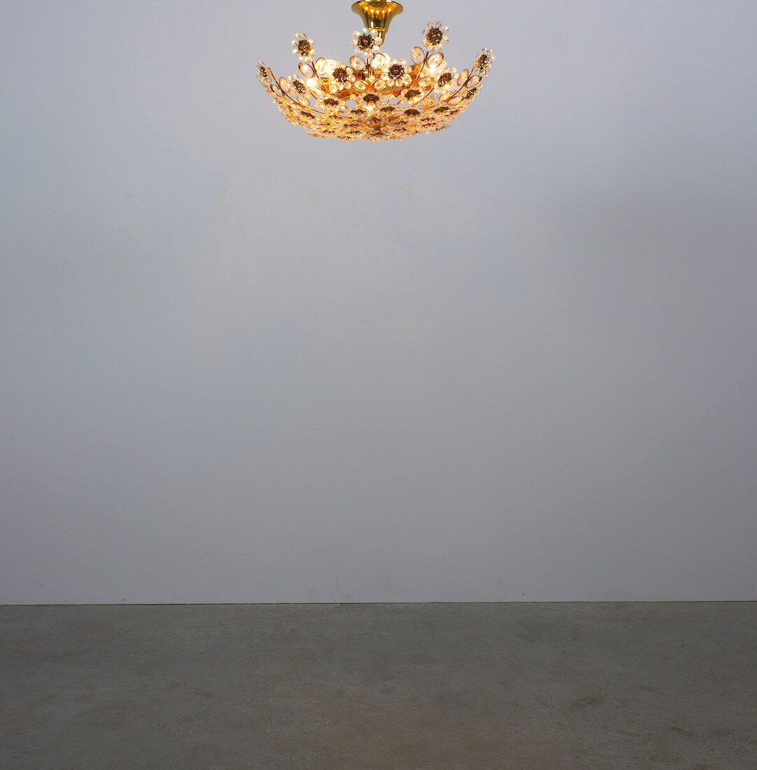 Palwa semi flush mount crystal flower flush mount by Palwa, 1970.