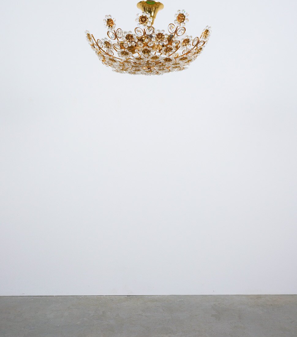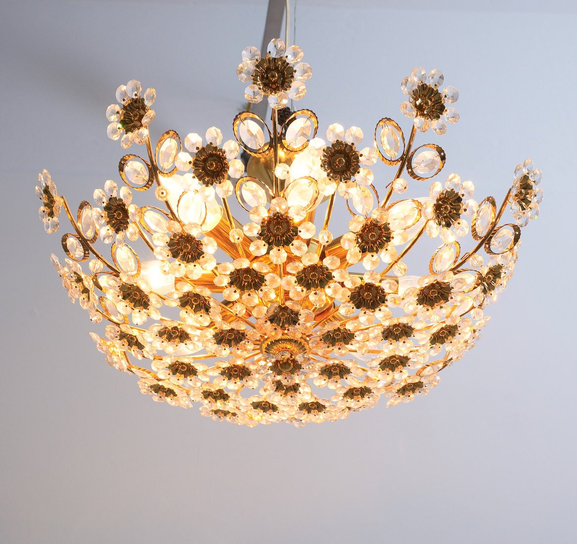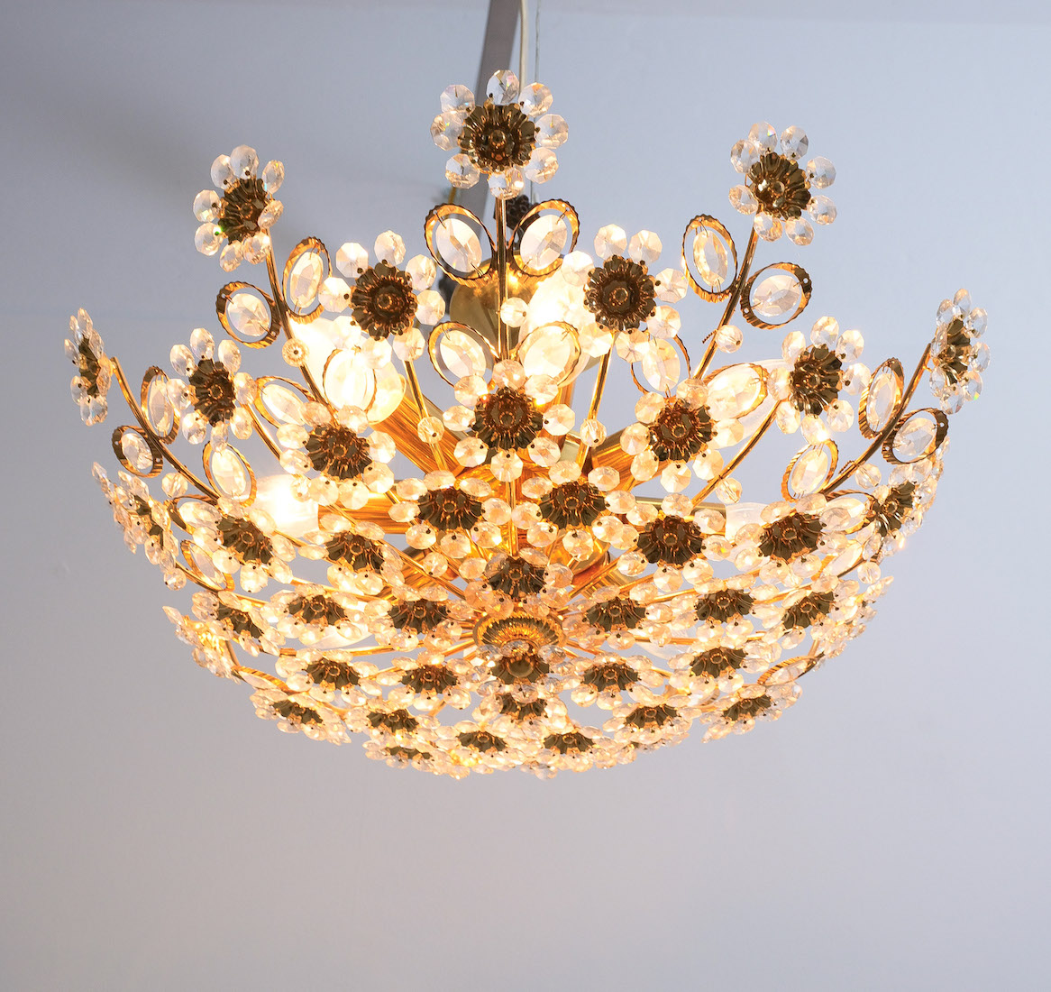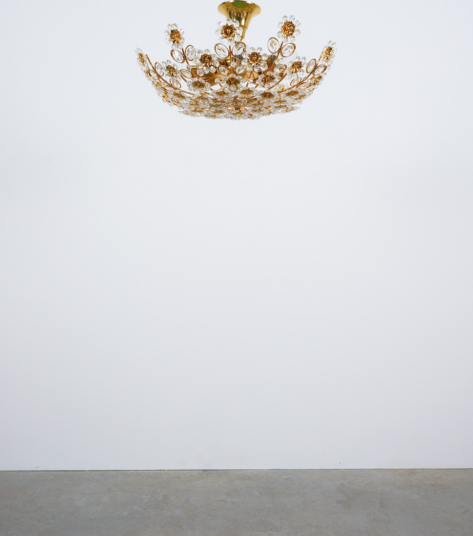 Palwa semi flush mount crystal flower flush mount by Palwa, 1970.
