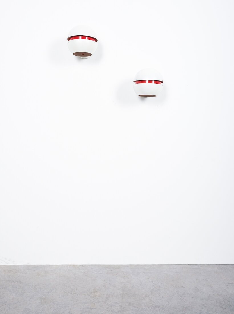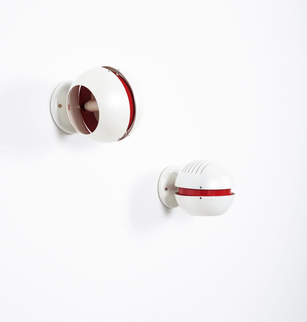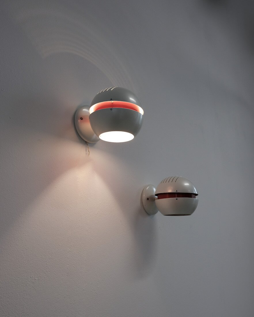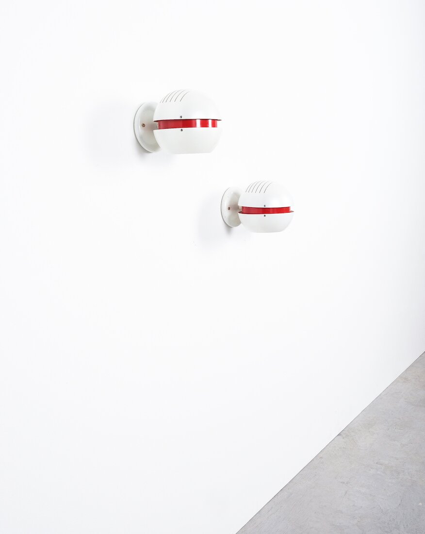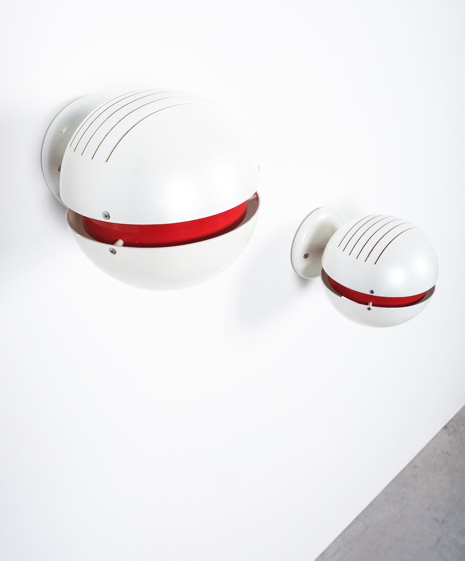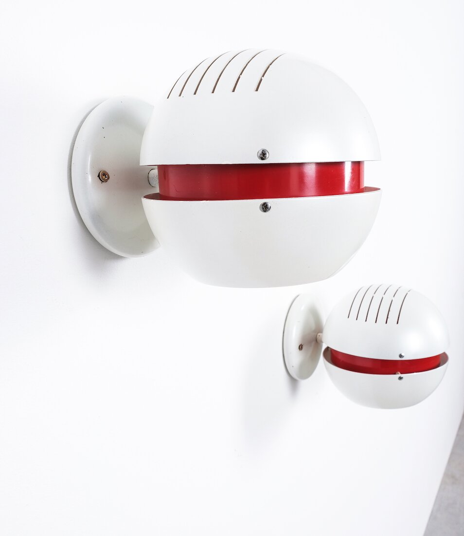 Stilnovo Pearl White Red Globe Sconces, Mid Century