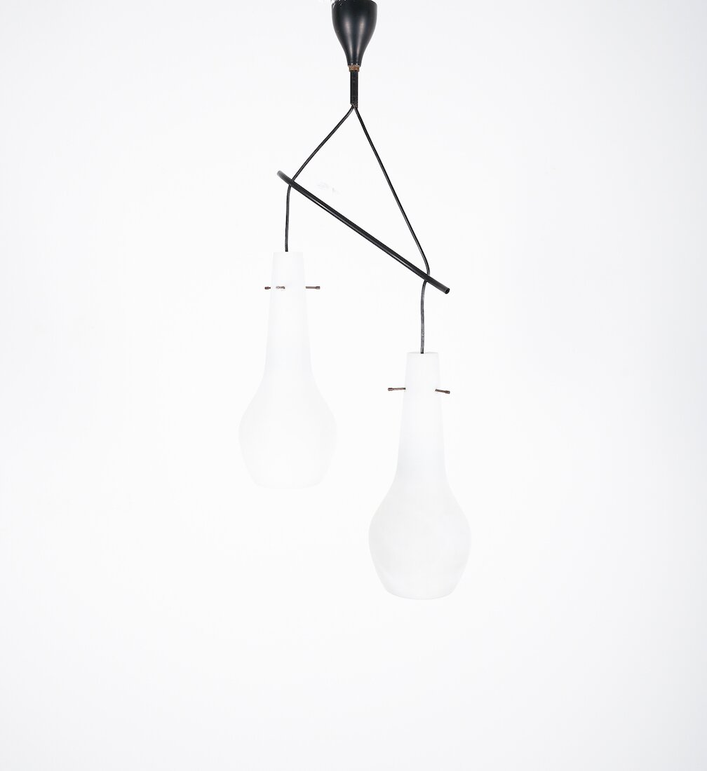 Stilnovo style pear-shaped ball suspension lamp with 2 shades Italy, circa 1950.