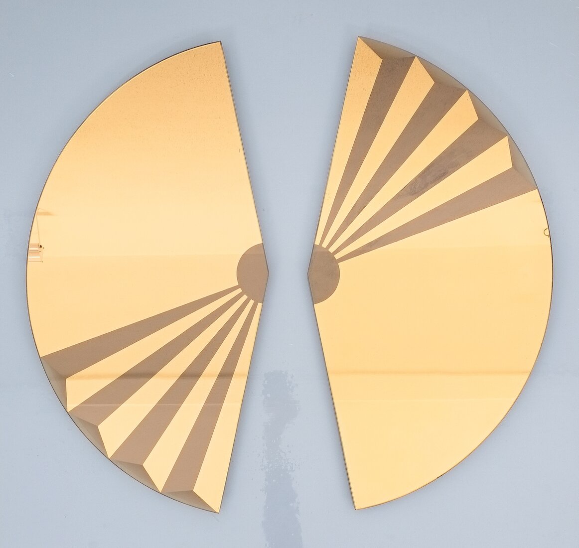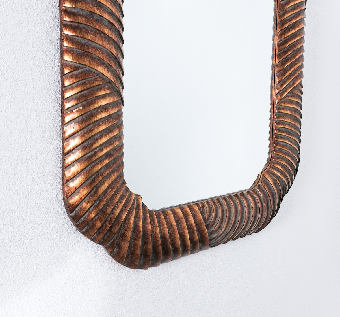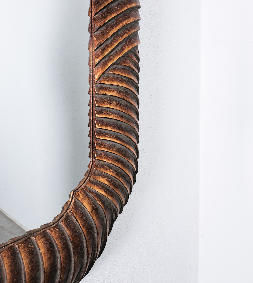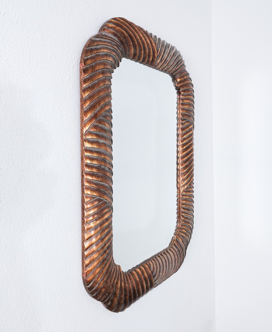 Hand-carved enormous wooden frame mirror with a trompe l‘oeil effect, 1970.