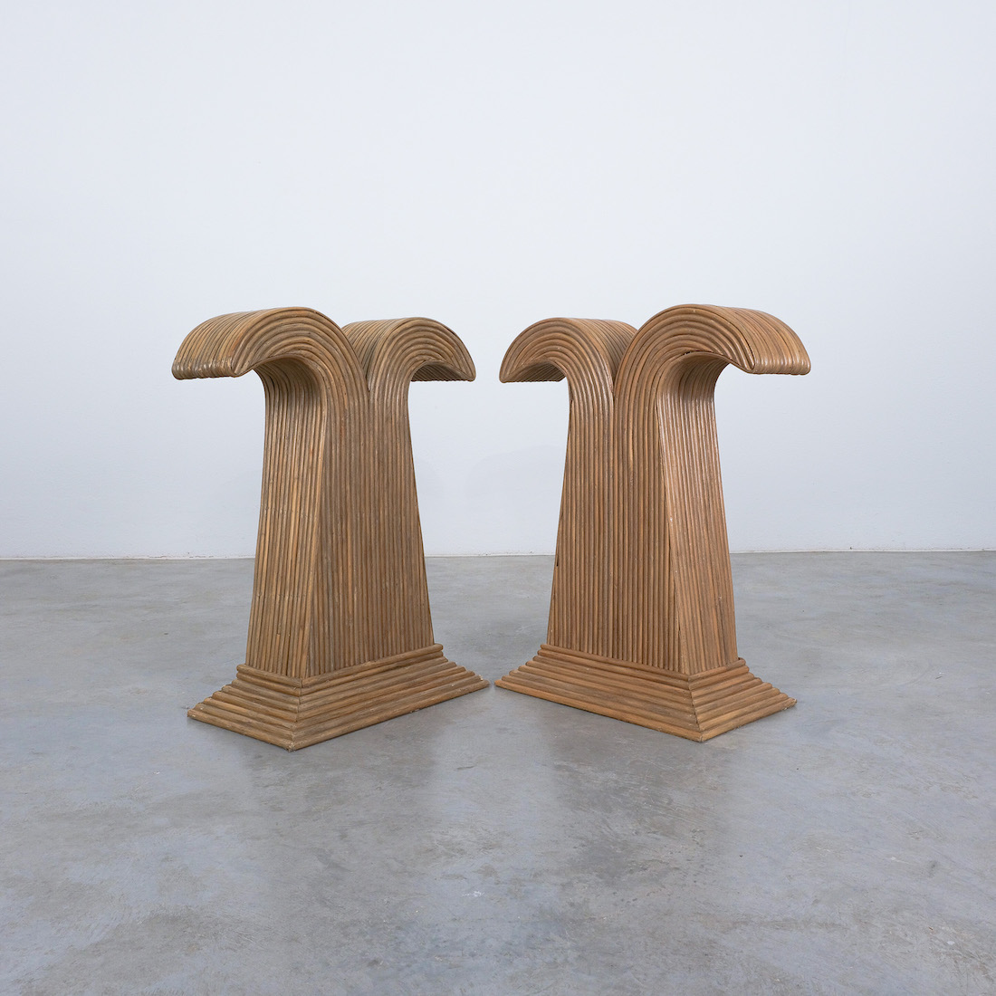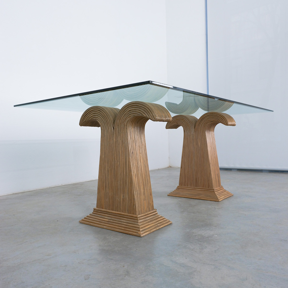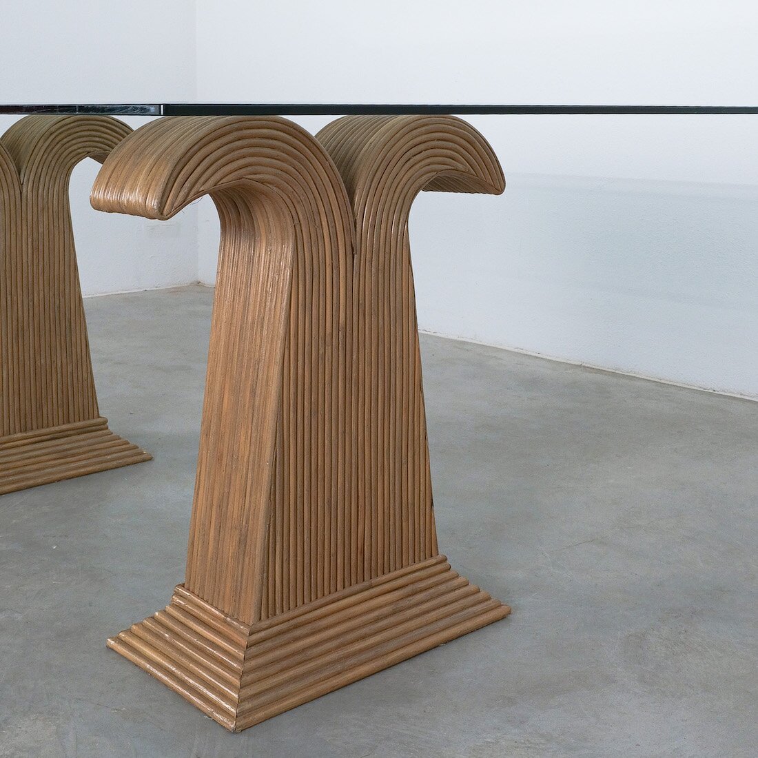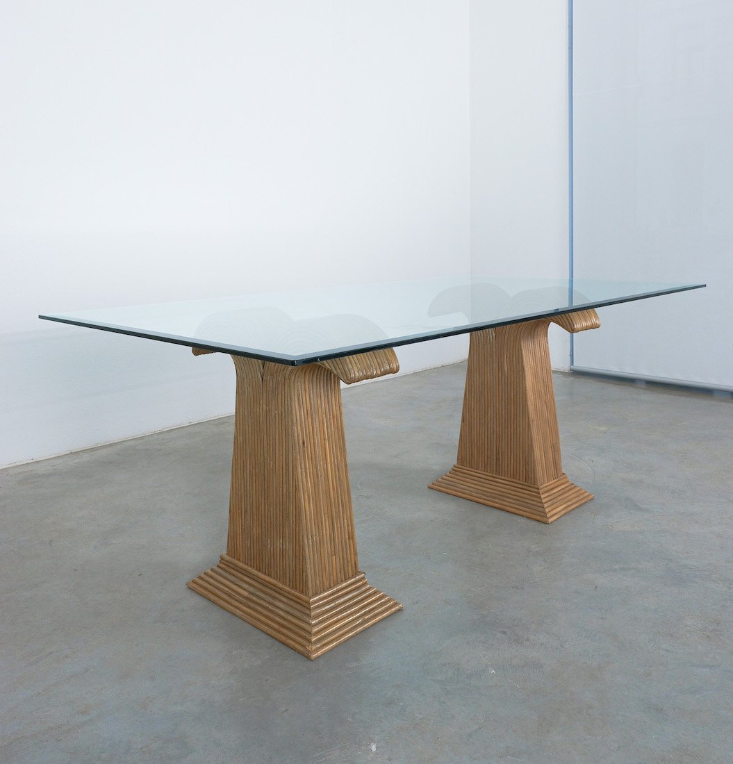 These extraordinary table bases are made from bamboo and resemble a palm tree, we can attribute them to Vivai del Sud, Italy.