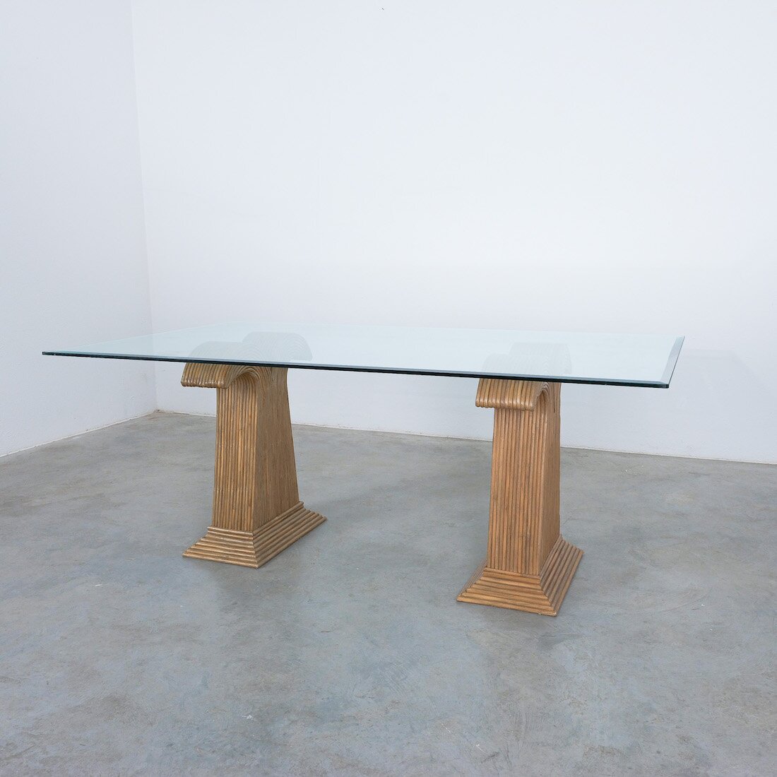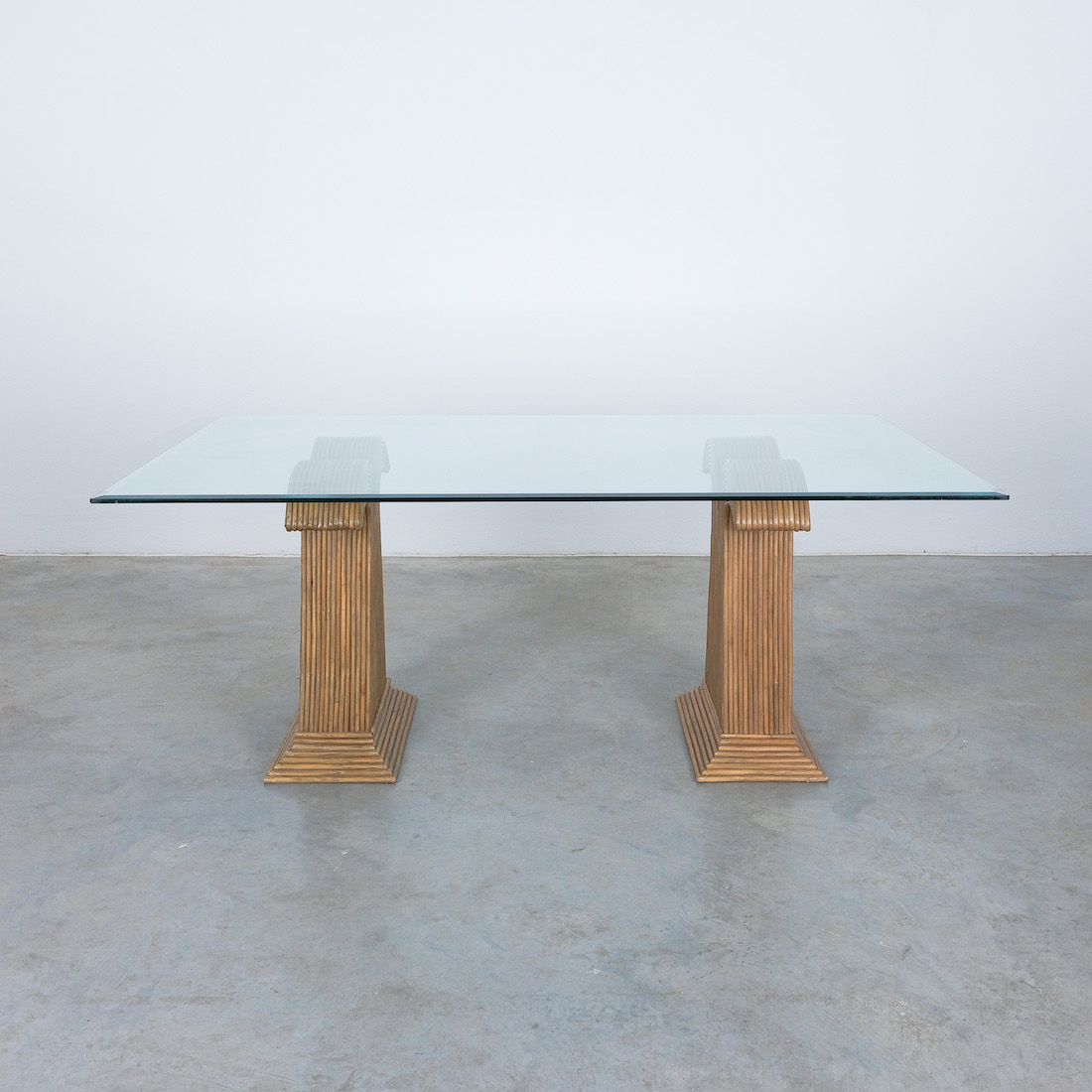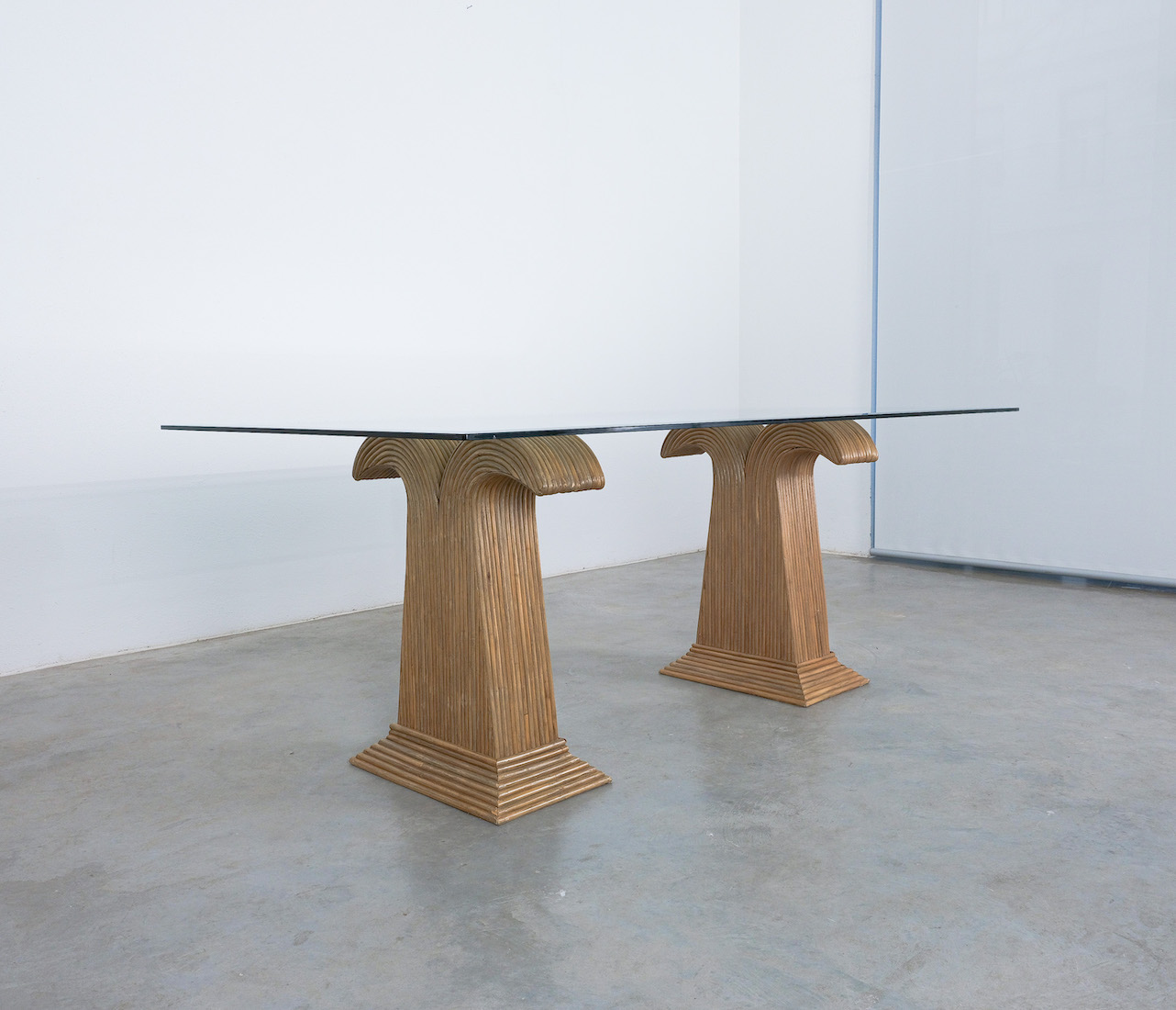 These extraordinary table bases are made from bamboo and resemble a palm tree, we can attribute them to Vivai del Sud, Italy.