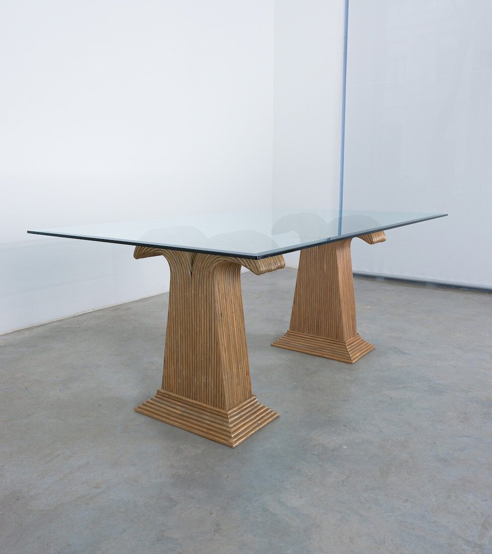Vivai del Sud Attr. Dining Table Rattan Bamboo Table Base, 1970