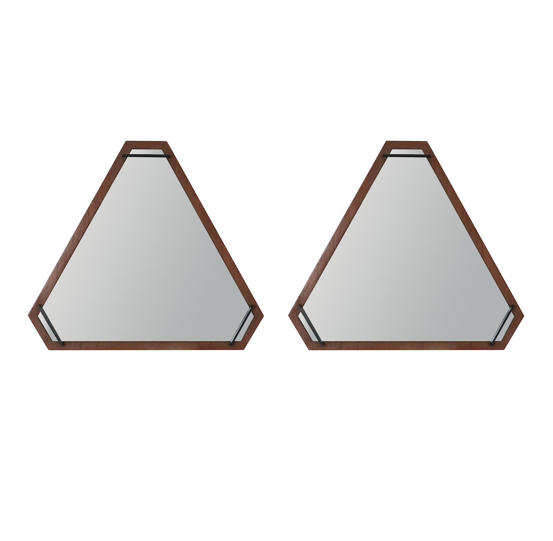 Dino Cavalli Walnut Brass Mirrors (2), Mid-Century Modern, Italy